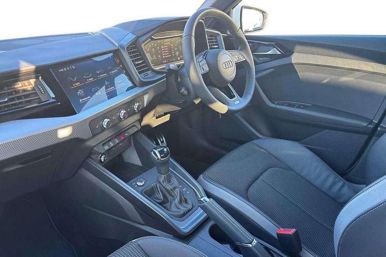 10.25" Digital instrument cluster display classis style instrument dials + speed, odometer, time, outside temperature, telephone menu + fuel level warning, Advanced driver attention and drowsiness monitor, Audi connect emergency call and service, Audi drive select, Audi remote connect and control, Bluetooth interface, Camera based traffic sign recognition, Cruise control, Driver's information system, Electromechanical power steering, Lane departure warning system, Rear parking sensor, Service interval indicator, Smartphone interface, Speed limiter, Start stop system with recuperation, Voice control system, Washer fluid level indicator, Sports suspension, 2 x USB type C connection points, 6 loudspeakers, DAB Digital radio, MMI radio plus with 10.1" colour MMI display screen and MMI touch, Auto dimming rear view mirror, Body coloured door mirrors, Door sill trims with aluminium inlays and S line logo in front, Electric front and rear windows, Electrically adjustable, heated, folding door mirrors with integrated LED side indicator, Front side air inlets in grained matt black and C frame in anthracite black, Headlight cleaning system, Heat insulating glass windscreen and side windows, Heated rear windscreen, High level LED brake light, LED daytime running lights, LED headlights with range control LED rear lights + dynamic rear indicators, Light and rain sensors, Privacy glass, Radiator grille and rear diffuser in matt anthracite black, Radiator protective grille frame in matt aluminium silver, Rear fog lights, Rear side wing doors, Rear wiper, Side front spoiler lips in grained matt black, 12V socket in centre console with two cup holders, 3 rear seats with headrests, 3 seat bench in 2nd row, 3 spoke leather multi-function plus steering wheel features S badging and grips in perforated leather with contrast stitching, 40:60 Split folding rear seat or fully collapsed, Black carpets, Black cloth headlining, Front and rear velour black floor mats with contrast stitching in fine silver, Front head restraints, Front passenger seat, Height and reach adjustable steering wheel, Interior lighting includes roof module, front and rear reading lights and right luggage compartment lighting, ISOFIX child seat mounting for front passenger and outer rear seats including top tether attachment point of outer rear seats, Leather gear knob with aluminium trim, Leather handbrake grip, Manual air conditioning, Manual height adjustable for driver and front passenger seat, Manually adjustable lumbar support in front seats, Stainless steel pedals, Ambient lighting package - A1, Luggage compartment pack - A1, S line exterior styling pack - A1 Sportback, 3x3 point rear seatbelts, Audi pre-sense front with pedestrain and cyclist recognition, Brake assist function, Driver and front passenger airbag with front side and head airbags, Electronic Stability Control including ABS, EBD, ASR and EDL, Front passenger airbag deactivation switch, Hill hold assist, Manual rear child locks, Seatbelt height adjustment for front seats, Seatbelt monitoring, Tyre pressure loss indicator, Warning triangle and first aid kit, Anti theft alarm, Anti theft wheel bolts, Immobiliser, Remote control key with safelock, Aluminium trim for control switches, air vents and digital instrument cluster, Black dashboard, Silver grey inlays polygon structure in diamond paint finish, Structured grey accent surfaces insert of air vents, interior door handle recesses and centre console in quartz paint finish,