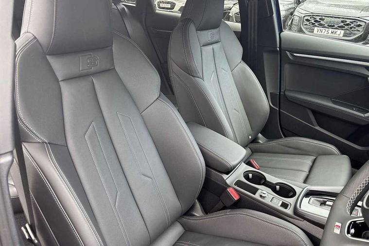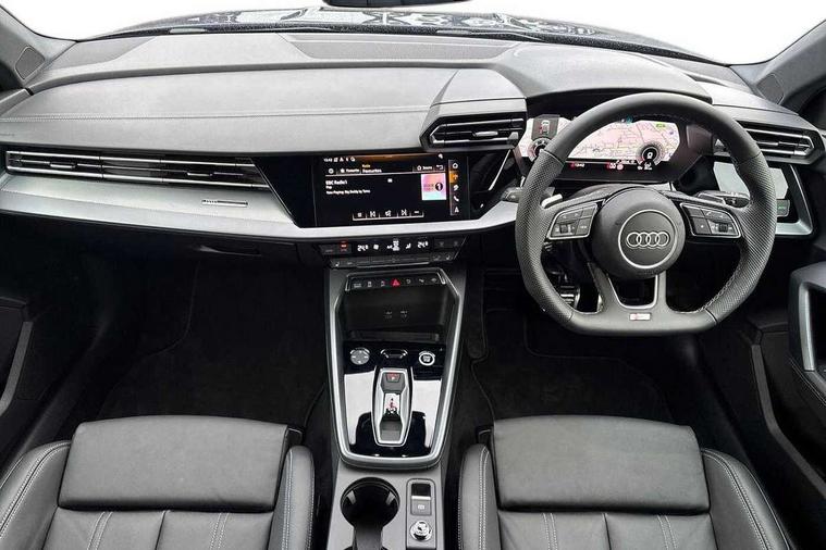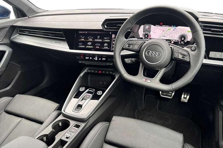 Adaptive cruise control (ACC), Adjustable speed limiter, Audi drive select (Auto, Comfort, Dynamic, Efficiency and Individual), Audi virtual cockpit plus - 12.3" full HD resolution dynamic digital instrument cluster, Automatic start/stop system with recuperation, Bluetooth interface, Camera based traffic sign recognition, Collision avoidance assistant, Driver attention and fatigue detection, e-Call (emergency call), Electromechanical power speed sensitive steering, Emergency assist, Intersection assist, Lane departure warning system, MMI Navigation Plus with high resolution 10.1" colour touch screen display, Park Assist with parking system Plus, Reversing camera, Service indicator, Smartphone interface with app store includes wireless Apple carplay, Android auto and Amazon alexa integration, Trip computer, Voice control system with natural language interaction, Diesel particulate filter, Sports suspension, Audi Phonebox light with wireless charging, Audi sound system - 10 loudspeakers including centre loudspeaker and subwoofer, DAB Digital radio, USB ports with charging function in the rear, Acoustic glass windscreen, All weather light, Aluminium window trim, Auto dimming frameless rear view mirror, Automatic dynamic range control, Body colour exterior mirrors, Dipped beam, main beam, position light and turning light, Electrically adjustable/heated/folding/auto dimming door mirrors with integrated LED indications + kerb view function for passenger side, Exterior model badging, Front and rear side air inlets in grained matt black with dark liquid chrome frame, Front electric windows, Front radiator grill in high gloss dark chrome, Heat insulating glass windscreen, Illuminated door sills with aluminium inserts at the front with S logo, Intersection light, Invisible tailpipe, LED 3rd brake light, LED brake lights, LED daytime running x3, LED headlights with LED rear lights and dynamic rear indicators, LED rear number plate lights, LED reverse light, LED tail lights, Light and rain sensors, Manoeuvring light, Motorway light, Privacy glass - dark tinted rear window, rear door and side windows, Rear diffuser and grill in grained matt black with inlay in dark liquid chrome, Rear electric windows, Rear side wing doors, Rear wiper, S line bumpers, S roof spoiler, Side S line emblems on front wings, Side sill trim in dark liquid chrome, Static cornering light, 12V socket and storage compartment in front centre console, 3 seat bench in 2nd row, 3 spoke flat bottomed leather multifunction sport steering wheel with gear shift paddles, 3-zone deluxe automatic air conditioning, 4 way electrically adjustable lumbar support for driver and front passenger, 40/20/40 split folding rear seat bench, Black cloth headlining, Black front and rear floor mats, Front and rear centre armrest in artificial leather with contrasting stitching on armrests and instrument panel, Front and rear headrests, Heated front seats, Height and reach adjustable steering wheel, i-Size child seat mounting on the front passenger side and outer rear seats, i-Size and top tether on the outer rear seats, Manual boot compartment lid, Manually adjustable front seats, Rear centre armrest with cupholder, S badging on the steering wheel, Seat side bolsters, Single front passenger seat, Stainless steel pedals and front footrest in black, Twin leather upholstery with front sports seats S embossed logo, Aluminium interior elements pack - A3, Multi-coloured LED interior lighting package with Multi-coloured contour lighting of instrument panel - A3, 3x3 point rear seat belts, Driver and front passenger airbag with passenger airbag deactivation, Electronic Stabilisation Control (ESC) including ABS, ASR and EDL, First aid kit with warning triangle and 2 safety vests, Front side airbags with head airbags and interaction airbag, Hill hold assist, Pre-sense front with pedestrian and cyclist detection, Seatbelt monitoring, Tyre pressure loss indicator, Anti theft alarm, Anti-theft wheel bolts, Electronically operated child locks, Immobiliser, Black dashboard, Inlay in dark aluminium spectrum,
