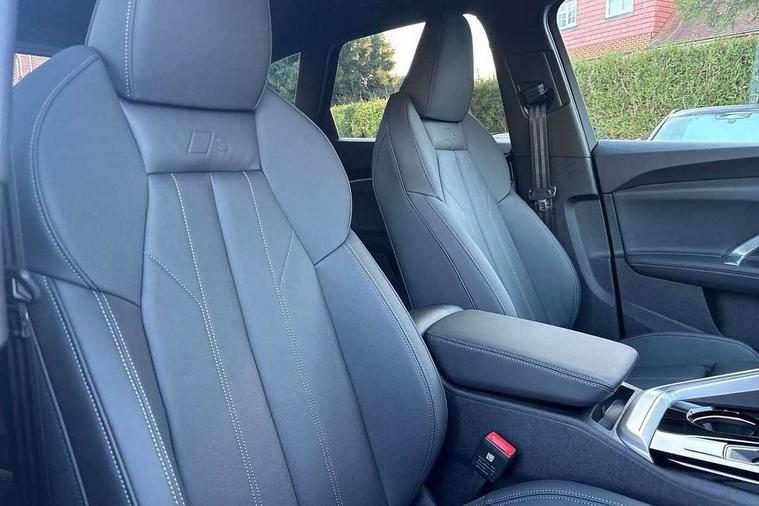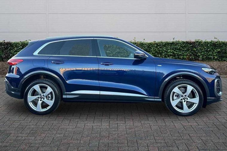 Adaptive cruise control, Attention and drowsiness detection with driver observation, Audi application store, Audi connect emergency call and service, Audi digital key, Audi drive select, Audi smartphone interface, Audi virtual cockpit plus with 11.9" OLED colour display, Camera based traffic sign recognition, Front cross traffic intersection assist, Lane change assistant with exit warning system, rear cross traffic alert and rear turn assist, Lane departure warning system, MMI navigation plus with high resolution 14.5" OLED touchscreen colour display, Park assist plus, PAS, Reversing camera, Swerve assist and front turn assist, Traffic sign based speed limiter, Audi sound system impressive sound with 8 loudspeakers including centre speaker and subwoofer, 6-channel amplifier with a total output of 180 watts, DAB Digital radio, Smartphone compartment with wireless charging, Aluminium roof rails, Auto dimming rear view mirror, Body coloured door mirrors, Electrically adjustable heated and folding + automatically dimming exterior mirrors, Front and rear electric windows, Front door sill trims with aluminium inlays, illuminated with 'S' logo, Grill frame, inlay and front air inlets in matt anthracite chrome, Headlight cleaning system, Heated rear window, High beam assist, High gloss window surrounds, LED headlights plus incl. digital DRL, dynamic coming and leaving home function with turning/all weather/motorway/manouevring and intersection lights, LED rear lights pro incl. dynamic rear indicators and illuminated light strip with animated coming and leaving home function, Logo projection light in exterior mirrors, Privacy glass, Projection third brake light for rear window in LED, Radiator grille in phantom black, Rear and side windows with heat insulating glass, Rear honeycombe grille in matt black with inlay in matt anthracite chrome, Rear side wing doors, Rear wash/wipe, S Line badge on the front wings, S line bumpers in contrasting Volcano grey metallic paint finish, Windscreen with acoustic glazing, 3 rear head restraints, 3 seat bench in 2nd row, 3 spoke leather steering wheel with multi-function buttons with touch control, flattened on top and bottom, with S badging and contrast stitching, 4 way electric lumbar support for driver and front passenger, Black carpets, Comfort centre armrest front, Deluxe 3 zone electronic climate control, Front and rear floor mats, Front sport seats with integrated head restraints, Headlining in black cloth, i-Size child seat mounting on the front passenger side and outer rear seats, i-Size and top tether on the outer rear seats, Increased charging capacity for USB ports 2X100 Watts in rear, 2X60 Watts in front, Interior trim in aluminium look, Luggage compartment lid, electrically opening and closing, Manual steering column adjustment, S embossed logo on front sport seats, Single front passenger seat, Softwrap in black, Stainless steel pedals and footrest, Steering wheel grips in perforated leather and shift paddles, Ambient lighting package plus - Q5, Rear seat bench plus pack - Q5, Storage and luggage compartment pack with luggage net - Q5, 3x3 point rear seatbelts, ABS, Acoustic vehicle alerting system, Convenience key with safelock, Driver and front passenger airbag with passenger airbag deactivation, Electric child safety locks, First aid kit with warning triangle and high visibility vests, Front emergency brake assist, Front side airbags with head airbag system and front interaction airbag, Hill hold assist, Rear seat occupant reminder, Tyre pressure loss indicator, Anti-theft wheel bolts, Thatcham approved category 1 anti theft alarm, Accent surfaces and control buttons in gloss black, Anthracite matt brushed aluminium inlays with linear embossing, Black dashboard with contrast stitching, Upper and lower interior elements in artificial leather, Tyre repair kit,