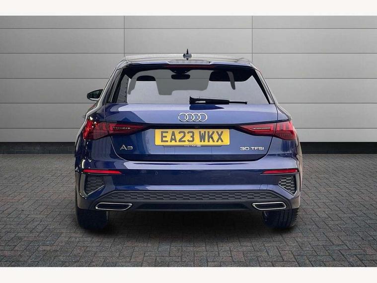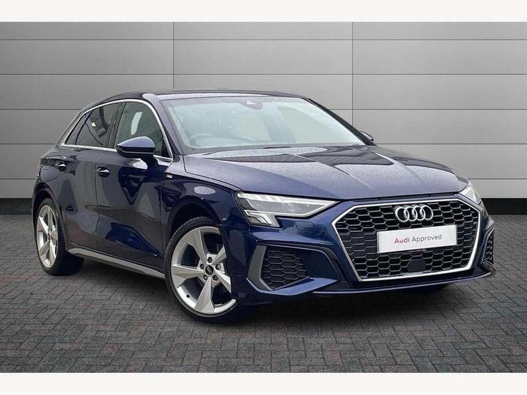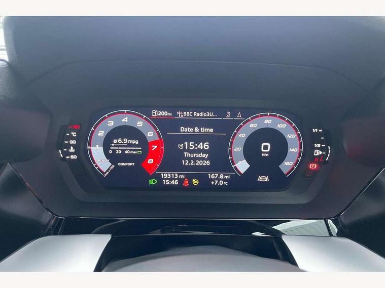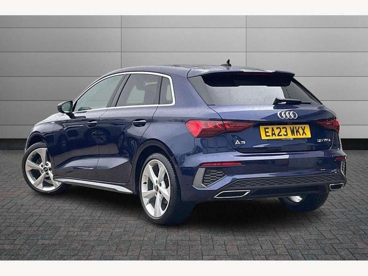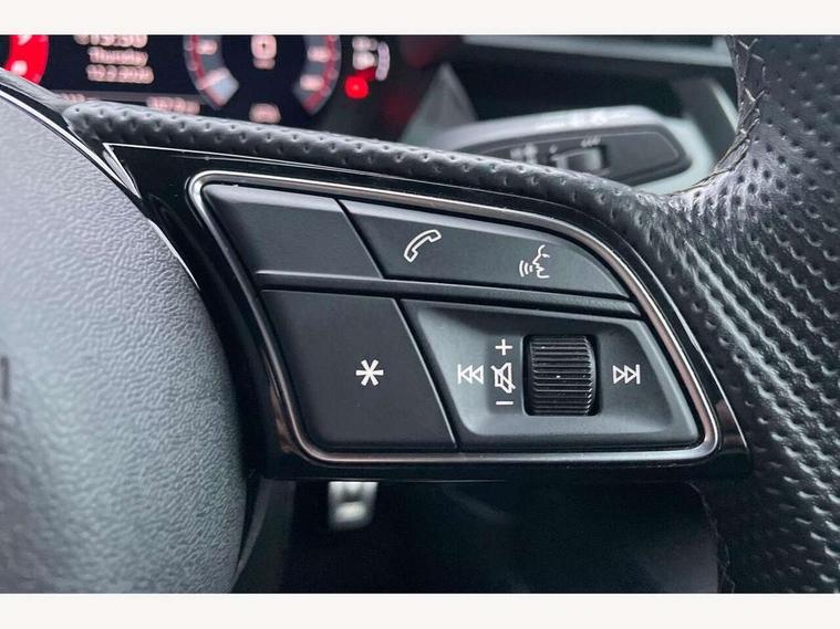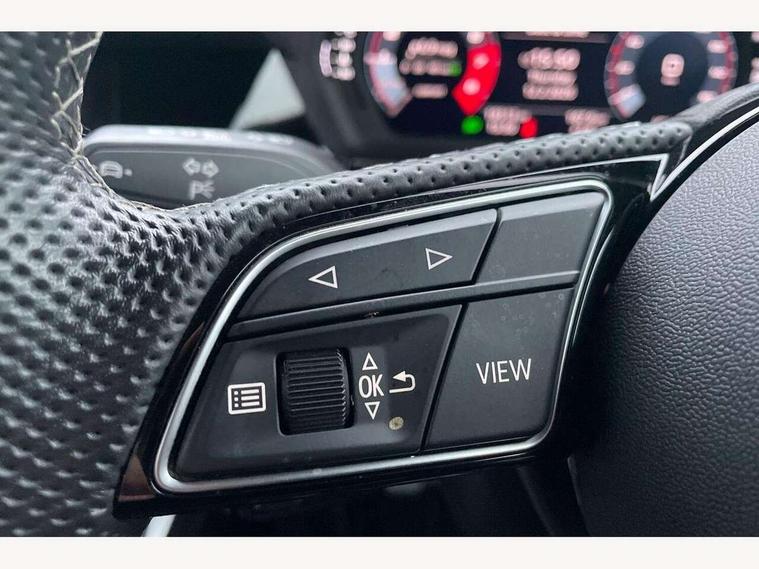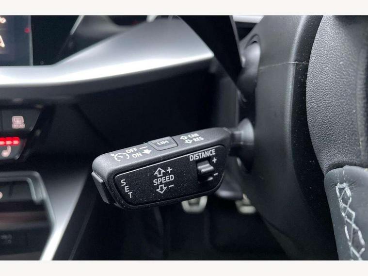 Audi drive select (Auto, Comfort, Dynamic and Individual), Audi smartphone interface, Audi Virtual Cockpit - 10.25" digital and colour instrument cluster, Automatic start/stop system with recuperation, Bluetooth interface, Camera based traffic sign recognition, Collision avoidance assistant, Cruise control, e-Call (emergency call), Electromechanical power speed sensitive steering, Lane departure warning system, MMI Navigation Plus with high resolution 10.1" colour touch screen display, Rear parking sensors, Service indicator, Trip computer, Voice control system with natural language interaction, Sports suspension, 2xUSB-C connection with data and charging functions, 6 passive loudspeakers, DAB Digital radio, 3rd brake light, Acoustic glass windscreen, Aluminium window trim, Auto dimming frameless rear view mirror, Body colour exterior mirrors, Electrically adjustable/heated/folding/auto dimming door mirrors with integrated LED indications + kerb view function for passenger side, Front electric windows, Illuminated aluminium inserts front door sills with S logo, LED daytime running lights, LED headlights with LED rear lights and dynamic rear indicators, Light and rain sensors, Privacy glass - dark tinted rear window, rear door and side windows, Rear electric windows, Rear side air outlets in grained matt black, Rear side wing doors, Rear wiper, S line bumpers, S roof spoiler, 12V socket and storage compartment in front centre console, 3 seat bench in 2nd row, 3 spoke leather multifunction steering wheel, 4 way electrically adjustable lumbar support for driver and front passenger, 60/40 split folding rear seat bench, Black cloth headlining, Dual zone electronic climate control, Front and rear centre armrest in leather, Front and rear headrests, Front/rear floor mats, Height and reach adjustable steering wheel, Interior lighting - glove compartment light and right hand side, Luggage compartment floor covering, Manual boot compartment lid, Manually adjustable front seats, Seat side bolsters, Single front passenger seat, Stainless steel pedals and front footrest in black, Twin leather upholstery with front sports seats S embossed logo, Aluminium interior elements pack - A3 Sportback, LED interior lighting pack - A3 Sportback, S line styling pack - A3 Sportback, 3x3 point rear seat belts, Driver and front passenger airbag with passenger airbag deactivation, Electronic Stabilisation Control (ESC) including ABS, ASR and EDL, First aid kit with warning triangle and 2 safety vests, Front side airbags with head airbags and interaction airbag, Pre-sense front with pedestrian and cyclist detection, Seatbelt monitoring, Tyre pressure loss indicator, Anti theft alarm, Anti-theft wheel bolts, Electronically operated child lock, Immobiliser, Remote control central locking, Dark spectrum aluminium inlays, accent surfaces in the dashboard and centre console in platinum grey silk effect paint finish,