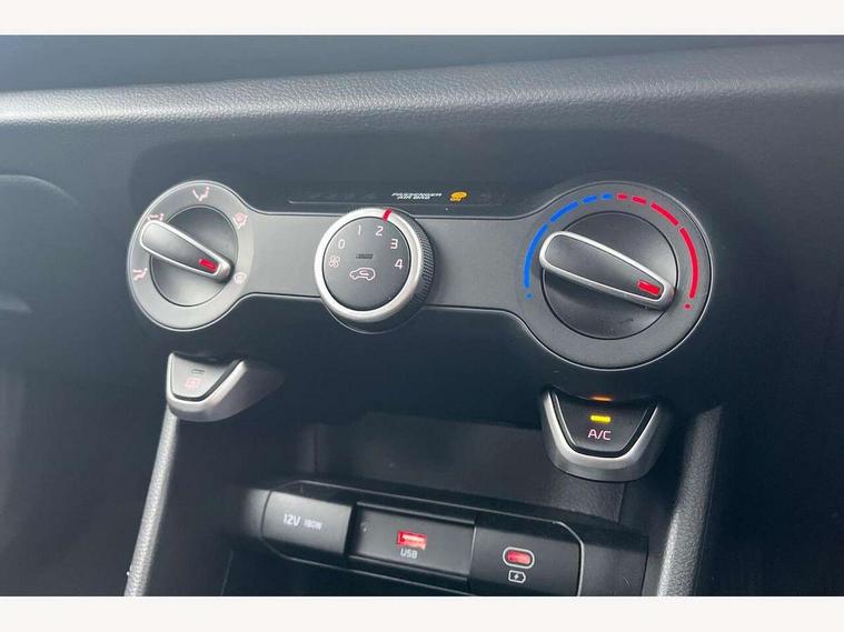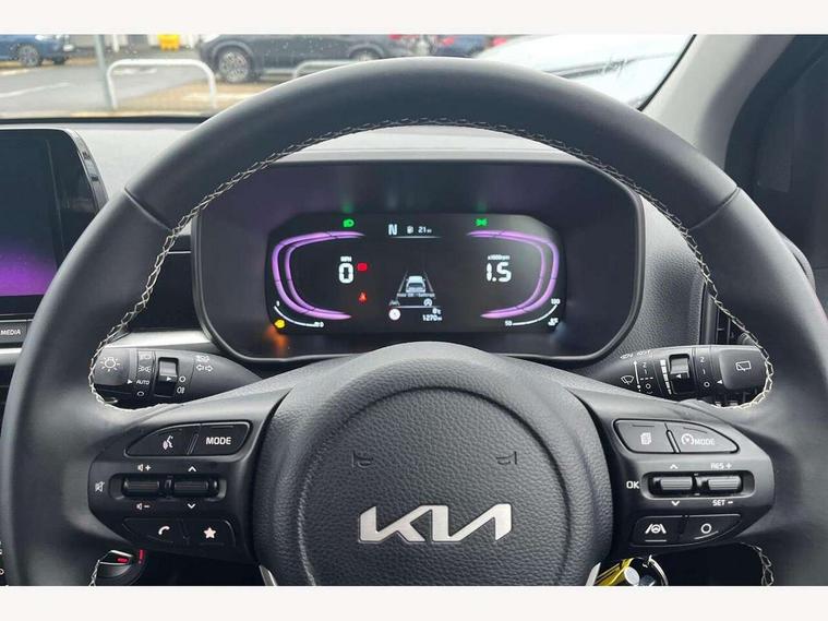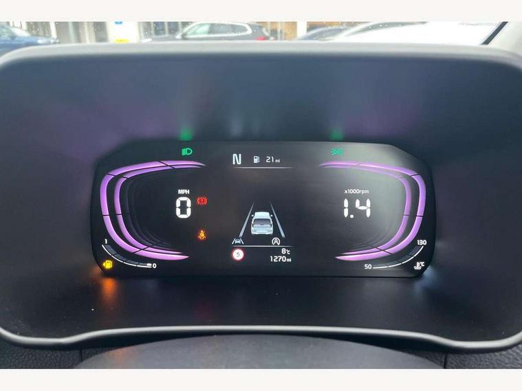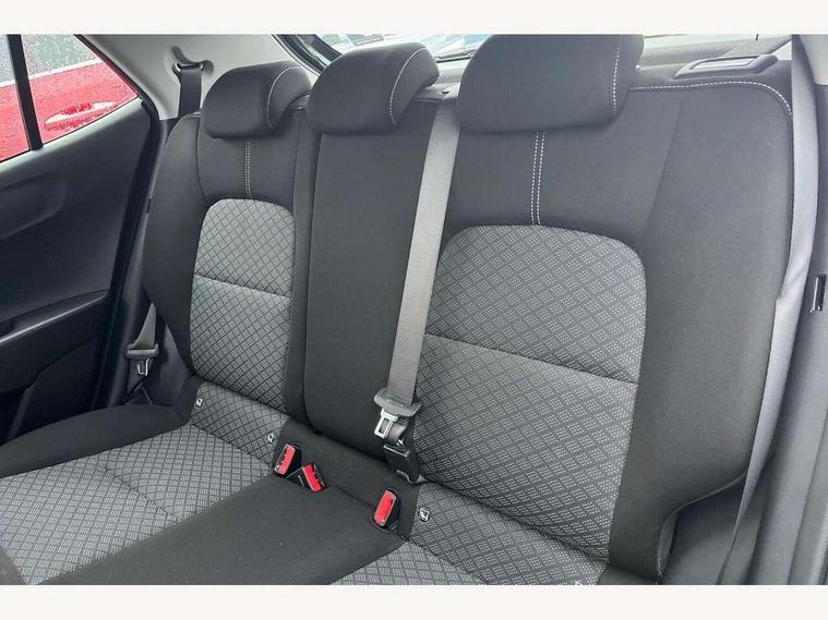 4.2" driver display screen, 8" touchscreen navigation, Apple car play/Android Auto with voice control, Cruise control + speed limiter, Emergency call service, Emergency stop signalling system, External temperature gauge, Forward Collision-Avoidance Assist (FCA) 1.0 - City/Pedestrian/Cyclist, Intelligent speed limit assist, Kia Connect (UVO), Lane Follow Assist 1.0, Lane keep assist, Motor driven power steering, Rear parking sensors, Reversing camera system, Tachometer, Trip computer, 4 speaker audio system, Bluetooth with music streaming, USB ports for connection of a media device, Automatic defog system, Automatic headlight control system, Body colour bumpers, Body colour side sill mouldings, Body coloured door mirrors, Body coloured wheel arches, Daytime running lights, Electric adjustable heated door mirrors, Electric front and rear windows, Halogen headlamps, Headlamp levelling, Heated rear window, High mount brake light, Rain sensor, Rear fog lights, Rear Lights Bulb, Rear side wing doors, Rear wiper, Silver window surround, Speed variable front wipers, Tinted windshield glass, Visible VIN plate, 12V power point front, 3 seat bench in 2nd row, 60:40 Split folding rear seats, All round height adjustable headrests, Artificial leather steering wheel, Centre console storage box, Cloth upholstery, Driver sunvisor with vanity mirror, Front and rear door storage, Front cabin lights, Front passenger USB-C charging port, Glovebox, Grey headlining, ISOFIX Child seat top tethers and anchor fixings, Luggage area light, Luggage area parcel shelf, Luggage net + hook, Manual adjust steering wheel, Manual adjustable driver and front passenger seat, Manual air conditioning, Rear cabin lights, Single front passenger seat, All round 3-point seatbelts, Anti-lock braking system (ABS), Electronic stability control, Front + rear side airbags, Front airbags, Front passenger airbag cut-off switch, Front seatbelt height adjusters, Hill hold control, Hill start assist control (HAC), Rear airbags, Seatbelt warning, Side impact protection, Torque vectoring brake based and straight line stability (SLS), Traction control, Tyre pressure monitoring system, Vehicle stability management, Anti theft alarm, Engine immobiliser, Folding key, Locking wheel nuts, Manual child locks, Rear occupant alert, Remote central door locking, Thatcham category 2 security alarm and immobiliser, 14" alloy wheels, Tyre mobility kit,