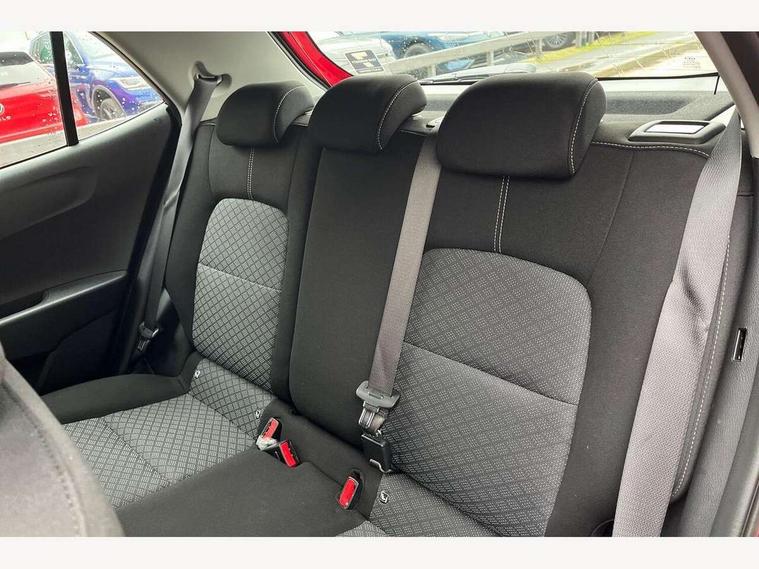 4.2" driver display screen, 8" touchscreen navigation, Apple car play/Android Auto with voice control, Cruise control + speed limiter, Emergency call service, Emergency stop signalling system, External temperature gauge, Forward Collision-Avoidance Assist (FCA) 1.0 - City/Pedestrian/Cyclist, Intelligent speed limit assist, Kia Connect (UVO), Lane Follow Assist 1.0, Lane keep assist, Motor driven power steering, Rear parking sensors, Reversing camera system, Tachometer, Trip computer, 4 speaker audio system, Bluetooth with music streaming, USB ports for connection of a media device, Automatic defog system, Automatic headlight control system, Body colour bumpers, Body colour side sill mouldings, Body coloured door mirrors, Body coloured wheel arches, Daytime running lights, Electric adjustable heated door mirrors, Electric front and rear windows, Halogen headlamps, Headlamp levelling, Heated rear window, High mount brake light, Rain sensor, Rear fog lights, Rear Lights Bulb, Rear side wing doors, Rear wiper, Silver window surround, Speed variable front wipers, Tinted windshield glass, Visible VIN plate, 12V power point front, 3 seat bench in 2nd row, 60:40 Split folding rear seats, All round height adjustable headrests, Artificial leather steering wheel, Centre console storage box, Cloth upholstery, Driver sunvisor with vanity mirror, Front and rear door storage, Front cabin lights, Front passenger USB-C charging port, Glovebox, Grey headlining, ISOFIX Child seat top tethers and anchor fixings, Luggage area light, Luggage area parcel shelf, Luggage net + hook, Manual adjust steering wheel, Manual adjustable driver and front passenger seat, Manual air conditioning, Rear cabin lights, Single front passenger seat, All round 3-point seatbelts, Anti-lock braking system (ABS), Electronic stability control, Front + rear side airbags, Front airbags, Front passenger airbag cut-off switch, Front seatbelt height adjusters, Hill hold control, Hill start assist control (HAC), Rear airbags, Seatbelt warning, Side impact protection, Torque vectoring brake based and straight line stability (SLS), Traction control, Tyre pressure monitoring system, Vehicle stability management, Anti theft alarm, Engine immobiliser, Folding key, Locking wheel nuts, Manual child locks, Rear occupant alert, Remote central door locking, Thatcham category 2 security alarm and immobiliser, 14" alloy wheels, Tyre mobility kit,