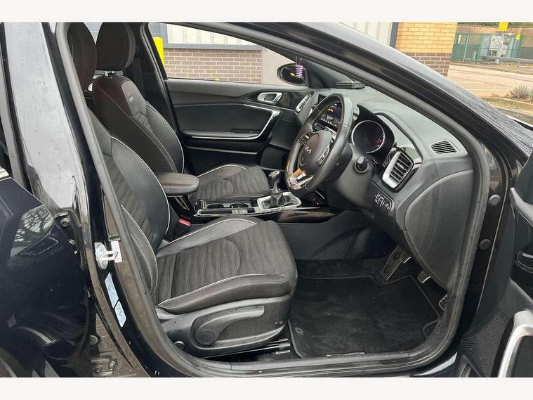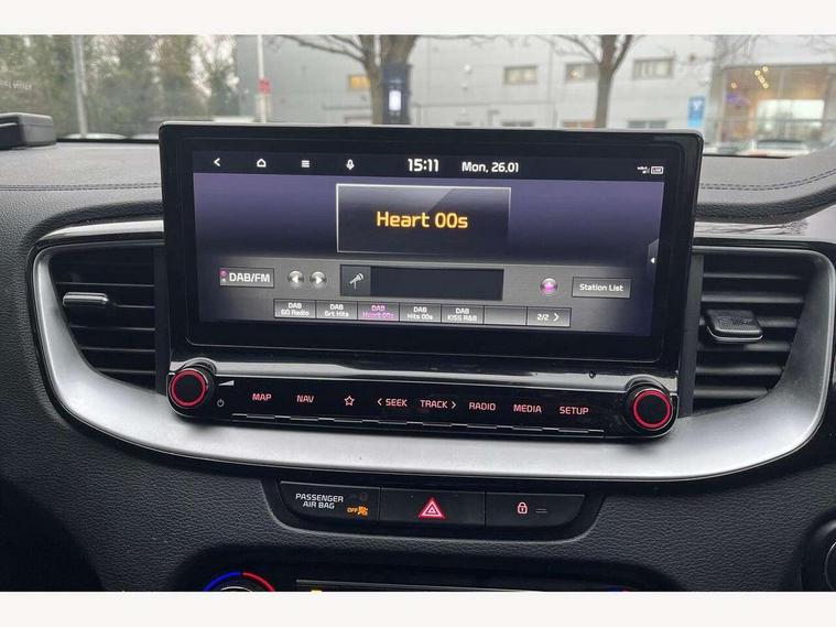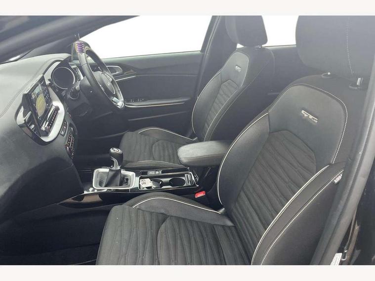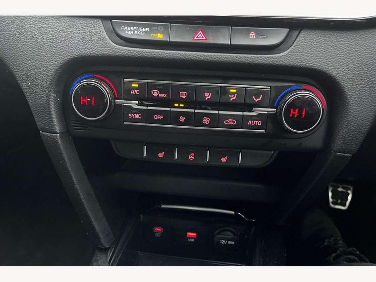 10.25" touchscreen satellite navigation including telematics, 4.2" supervision colour cluster display, Apple car play/Android Auto, Bluetooth with Voice Recognition & Music Streaming, Cruise control + speed limiter, Driver attention warning, Emergency call service, Emergency stop signalling system, Forward Collision-Avoidance Assist (FCA) - City/Pedestrian/Cyclist, Kia connected services featuring TomTom live, Lane keep assist, Motor driven power steering, Rear parking sensor, Reversing camera with dynamic guide lines, Trip computer, Intelligent Stop and Go, 6 speaker audio system, DAB Radio with MP3, Illuminated USB & aux ports, Steering wheel mounted controls, USB & AUX Ports for Connection of a Media Device, USB Fast Charger in Front Centre Console, 3rd brake light, Air intake with black accent lower lip, All-round Electric Windows with Front Auto Up & Down Function, Auto dimming rear view mirror, Automatic defog system, Automatic headlights, Body colour bumpers, Body colour exterior door handles, Body coloured rear roof spoiler with high gloss black trim, Chrome window surround, Electric adjustable/heated/folding door mirrors with LED Indicators, Exterior front door handle illumination, Front fog lights, Front wiper de-icer, Headlamp levelling, Heated rear window with timer, High beam assistant, High Gloss Black and Satin Chrome Radiator Grille, High gloss black door mirrors, High gloss black side sill mouldings, LED daytime running lights, LED full width tail lights, LED rear fog light, LED rear lights, Privacy glass in rear windows and tailgate, Projection headlights, Puddle lights, Rain sensing front wipers, Rear side wing doors, Rear wash/wipe, Wide view drivers door mirror, Windscreen Washer Level Warning, 2 x 12V Power sockets (Front centre console), 3 seat bench in 2nd row, 3 x passenger assist grips, 60/40 split folding rear seat, All-round height adjustable headrests, Aluminium pedals, Black headlining, Centre console storage and sliding armrest, Cloth/faux leather upholstery, Cupholders in rear armrest, Dash illumination dimmer switch, Driver & Front Passenger Sunvisors with Vanity Mirror Illumination & Ticket Holder, Driver + front passenger electric lumbar support, Driver's seat height adjuster, Dual zone automatic air conditioning, Front and rear door storage, Front map light with sunglasses case, Front Passenger Seat Height Adjuster, Front seat and rear pockets, Gear shift indicator, Heated front seats, Heated steering wheel, Illuminated ignition key hole, Interior door lock/unlock function, ISOFIX Child seat top tethers and anchor fixings, Leather D-Cut steering wheel with grey stitching, Leather gearshift, Load area cover, Luggage area light, Luggage area parcel shelf, Luggage hooks, Premium centre console with sliding cupholder cover, Rear Air Ventilation, Rear centre armrest, Rear coat hooks, Satin chrome interior door handles, Single front passenger seat, Tilt/telescopic adjustable steering wheel, ABS with Electronic Brakeforce Distribution (EBD) and Brake Assist System (BAS), All round 3-point seatbelts, Dual front side airbags, Dual horn, Electric parking brake, Electronic stability control (ESC) and vehicle stability management (VSM), Front passenger airbag deactivation, Height adjustable front seatbelts, Hill start assist control (HAC), Impact sensing auto door unlocking, Rear door child safety locks, Seatbelt reminder warning, Traction control, Twin curtain airbags, Twin front airbags, Tyre pressure monitoring system, Alarm system, Engine Immobiliser & Deadlocks, Engine Start/Stop Button with Smart Entry System, Locking wheel nuts, Speed sensitive auto door locking, Black high gloss front console tray garnish & door trim, Satin Chrome Fascia Trim, 17" GT-Line alloy wheels, Tyre mobility system,