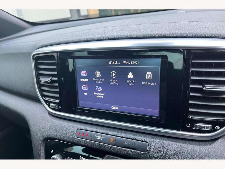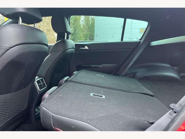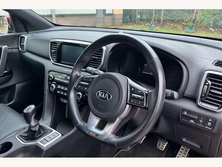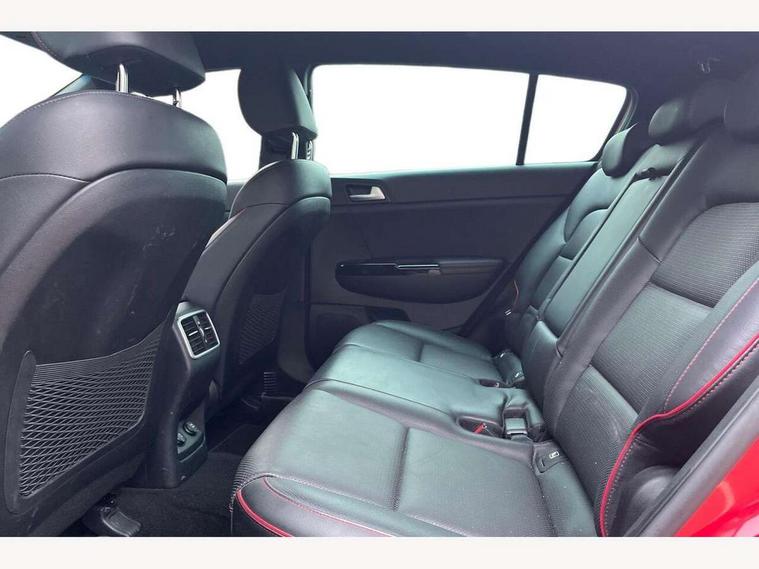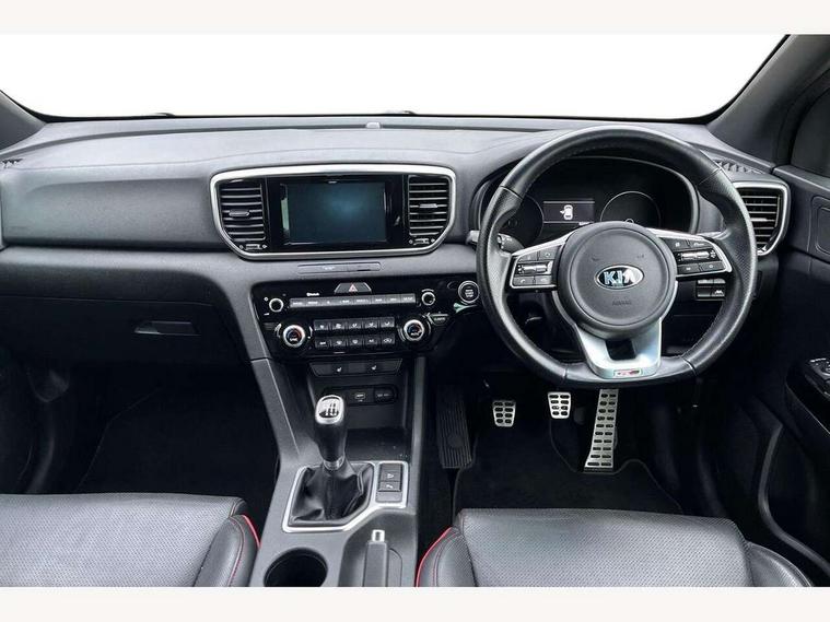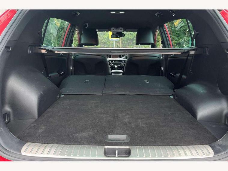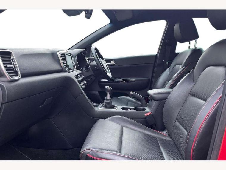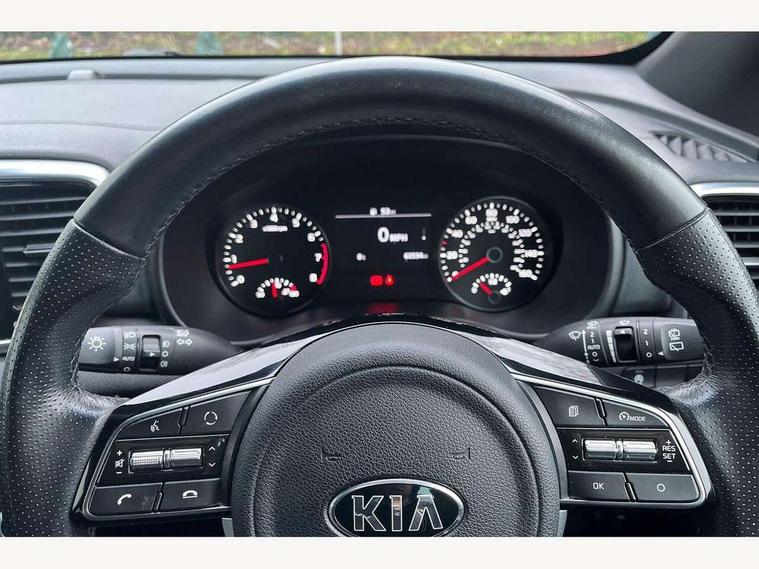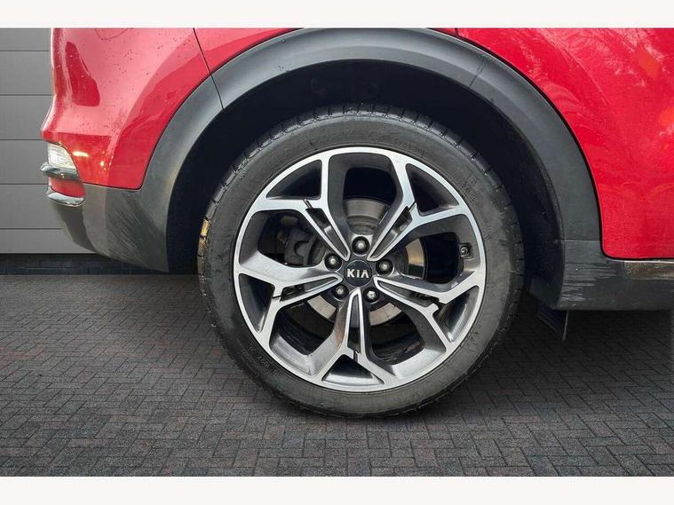 4.2" supervision colour cluster display, 7" touchscreen satellite navigation with European mapping and traffic messaging channel, Android auto with voice control, Apple car play with voice control, Bluetooth connectivity with voice control, Cruise control + speed limiter, Digital clock, Driver attention warning, Emergency stop signalling system, Front parking sensor, Kia connected services featuring TomTom live, Lane keep assist, Rear parking sensor, Reversing camera, Speed limit information, Speed sensitive power steering, Trip computer, Windscreen washer level indicator, Intelligent Stop and Go, 6 speaker audio system, Bluetooth audio streaming, DAB Radio with MP3, Steering wheel mounted audio controls, USB/iPod/auxiliary input connections, All round electric windows with drivers auto up/down function, Auto dimming rear view mirror, Automatic defog system, Automatic headlights, Black wheel arch body mouldings and side sills with dark chrome insert, Body colour door handles with chrome inserts, Body colour door mirrors, Chrome window surround, Cornering light, Dark chrome front bumper insert, Dark chrome grille surround, Electrically adjustable/heated/folding door mirrors with LED indicators, High beam assist, High gloss black blade mesh radiator grille, LED Bi-Function headlights, LED daytime running lights, LED ice cube front fog lights, LED rear lights, Privacy glass (rear side windows and rear screen), Rain sensing front wipers, Rear spoiler, Rear wiper, Roof rails, Shark fin antenna, Silver painted front and rear skid plates, Speed sensitive front wipers, Tinted glass, Trailer stability assist, Welcome and follow-me home light functionality, Wide view drivers door mirror, Windscreen wiper de-icer, 12V power in front and rear centre console, 3 x passenger assist grips, 60/40 split folding rear seat, Air filter, All-round height adjustable headrests, Black headlining, Centre cabin light, Centre console storage box, Chrome boot sill guard, D-Shaped sports leather steering wheel and perforated inserts with GT-Line logo, Door armrest in leather, Driver and front passenger side sunvisors with illuminated vanity mirrors, Drivers seat power lumbar support, Dual zone automatic air conditioning, Front and rear door storage, Front cabin LED map light with sunglasses case, Front door courtesy reflectors, Front seat and rear pockets, Front/rear centre armrests, Gear shift indicator, Glovebox illumination, Heated front and outer rear seats, Illuminated glovebox, Interior door lock/unlock function, ISOFIX Child seat top tethers and anchor fixings, Leather trimmed gearshift, Leather upholstery, Luggage area light, Luggage area load cover, Luggage net with hooks, Perforated leather sports steering wheel, Rear centre armrest with cupholder, Rear coat hooks, Rear headrests, Satin chrome interior door handles, Stainless steel pedals, Stainless Steel Scuff Plates, Tilt/telescopic adjustable steering wheel, Ventilation ducts to rear compartment, 3x3 point rear seatbelts, Active front headrests, All round 3-point seatbelts, Anti-lock braking system with electronic brakeforce distribution, Dual front side airbags, Electronic stability control with downhill brake control, ESP + traction control, Front passenger airbag cut-off switch, Front seatbelt pretensioners + load limiters, Height adjustable front seatbelts, Hill start assist control (HAC), Impact sensing auto door unlocking, Rear door child safety locks, Twin curtain airbags with roll over sensor, Twin front airbags, Tyre pressure monitoring system, Advanced anti-theft system including immobiliser and alarm, Door deadlocks, Engine Start/Stop Button with Smart Entry System, Locking wheel nuts, Speed sensitive auto door locking, Visible vehicle identification number, High gloss black centre fascia, 19" alloy Wheels B-type, Temporary spare wheel,