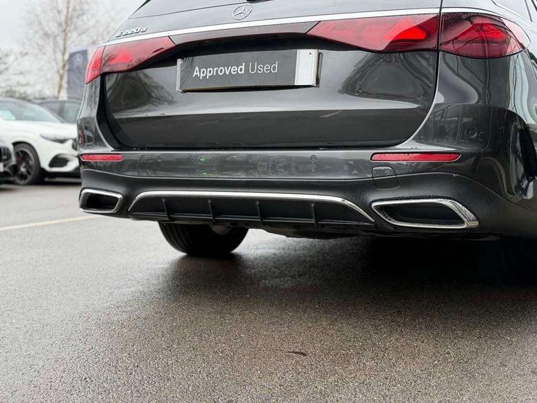12.3" Driver display screen, 14.4" central media display, 5G Communications module, Active park assist with parktronic system, Attention assist, Blind spot assist, Brake wear warning display, Direct steer speed sensitive steering, Easy-pack tailgate - Powered opening/closing automatically, ECO start/stop function, Emergency call assistance, Evasive manoeuvre support, Fluorescent jacket for driver, Hard disc navigation, Head up Display, MBUX navigation premium, MBUX voice control, Mercedes connect me, Outside temperature display, Preinstallation for live traffic, Remote Services Premium, Reversing camera, Service indicator (ASSYST), Status display for rear seat belts in instrument cluster, Trip computer in multifunction display showing current fuel consumption, Wireless charging, Wireless smartphone integration with Apple CarPlay and Android auto, 48V Mild hybrid technology, 66 litre fuel tank, 9G TRONIC automatic transmission, Agility control suspension with selective damping and lowering, Bluetec emission control, Diesel particulate filter, Integrated starter generator Gen 2, Rear air suspension with level control, Sporty engine sound system, 2 USB ports in centre console, 2 USB ports in the rear, DAB Digital radio, Preinstallation for MBUX Entertainment Plus, 3rd brake light, Adaptive brake lights, Aerial integrated in rear window, AMG bodystyling, Auto dimming driver's door mirror, Auto dimming rear view mirror, Black radiator grille, Chrome roof rails, Digital air vent control, Electric folding door mirrors, Electric windows with one touch opening/closing and obstruction sensors, Electrically adjustable and heated door mirrors, Heat insulating privacy glass, LED daytime running lights, LED high performance headlights with adaptive highbeam assist, Pre-installation for roof rail systems, Rear side wing doors, Rear wiper, Surround lighting with logo projection, 3 seat bench in 2nd row, 4 way lumbar support, Ambient lighting, AMG brushed stainless steel sports pedals with rubber studs, AMG floor mats, AMG line interior, Automatic child seat recognition sensor, Central stowage compartment with USB socket for use with Android Auto and Apple CarPlay, Comfort seats, Courtesy lights in rear grab handles with reading light functionality, Folding rear seat backrest, Front centre armrest with stowage compartment, Glove compartment - lockable, air conditioned and illuminated, Head restraints for driver and front passenger (four-way adjustability) and in rear (two-way), Heated front seats, Multifunction sports steering wheel in nappa leather, Roof liner in black fabric, Seat occupancy sensor for front passenger seat, Single front passenger seat, Steering wheel touch control buttons for audio and onboard settings, Sunvisors with illuminated vanity mirrors, Thermatic 2 zone climate control, Leather package - E Class, USB plus package - E Class, 3x3 point rear seatbelts, Active bonnet pedestrian safety measure which detects an impact and raises bonnet, Adaptive brake system with HOLD function and brake drying in the wet, Airbags - sidebag for driver and front passenger with combined thorax/pelvis bag, Anti-lock braking system (ABS), Automatic front passenger airbag deactivation, Central airbag, Childproof locks manually operated for rear doors and electrically operated for rear power windows, Driver and adaptive front passenger airbags, Electronic parking brake, Electronic Stability Programme, Hill start assist, ISOFIX child seat attachment points two outer rear seats, Knee airbags, Pedestrian protection, Pre-Safe anticipatory safety system, Tyre pressure monitoring system, Warning triangle and first aid kit, Window airbags, Alarm system with interior monitoring, Central locking with interior switch, automatic locking and crash sensor with emergency opening function, Dashcam, Digital vehicle key, Guard 360 degree vehicle protection, Increased anti theft protection, Keyless Go, Urban guard vehicle protection plus, Centre console trim in open pore black ash wood, Dash panel trim in open pore black ash wood, 18" AMG 5 twin spoke alloy wheels, Summer tyres, Tirefit,