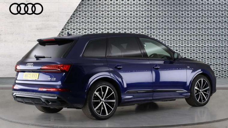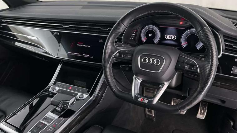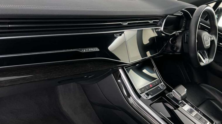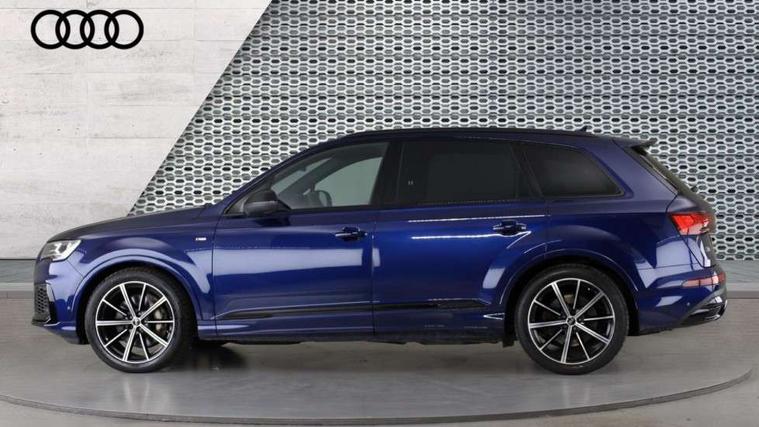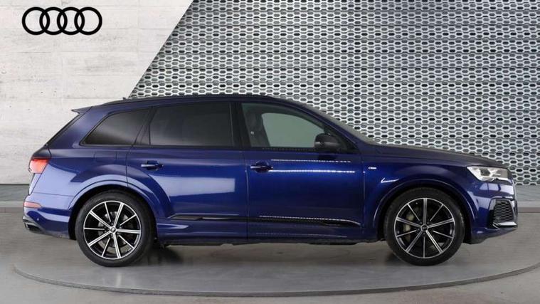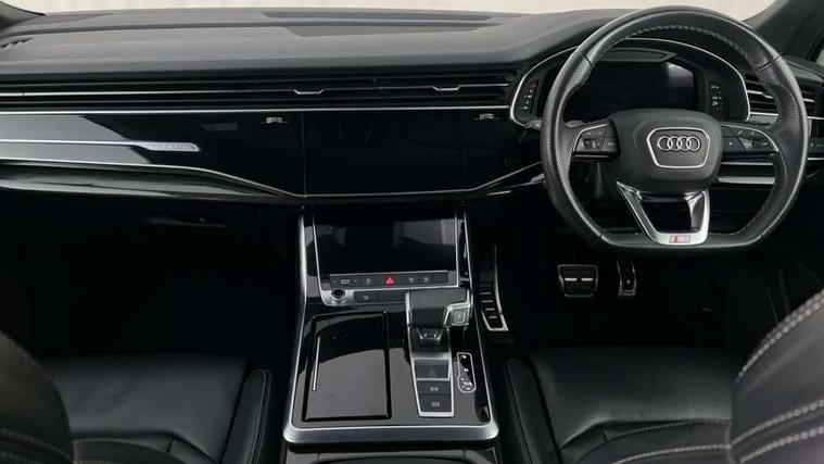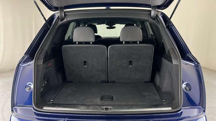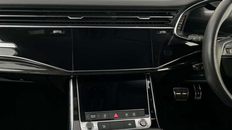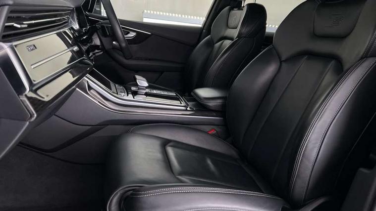 Audi connect safety and service (e-call), Audi connect with Amazon Alexa Integration, Audi drive select (Auto, Comfort, Dynamic, Efficiency, Individual, Off-road and All road), Bluetooth interface, Camera based traffic sign recognition, Electromechanical steering, MMI navigation plus with MMI touch screens includes 10.1" and 8.6" screens with haptic feedback, Natural voice recognition, Parking system plus with 360 degree display (front, rear and side sensors) - acoustic and visual park assist system, Power operated tailgate, Rear view camera, Smartphone interface includes wireless Apple carplay/Android Auto, Start/stop system, 48V Mild hybrid technology, 85 litre fuel tank, Adaptive air sports suspension, Quattro all wheel drive with self locking centre differential, Audi music interface - front 2 USB-C ports with charger and data functions, Audi sound system with 6 channel amplifier, 180 watt amplifying capacity and 10 loudspeakers including subwoofer, DAB digital radio module, 3rd brake light, Audi matrix LED headlights with dynamic front and rear indicators, Auto dimming frameless rear view mirror, Black roof rails, Bumpers in contrast paint scandium grey finish includes door trim and wheel arch trim strips, inlays in door strip contain quattro embossing, Electrically adj heated/folding + automatically dimming exterior mirrors with memory + automatic kerb side function for passenger side exterior mirror, Heat insulating glass in windshield, Integrated LED indications in door mirrors, LED daytime running lights, LED rear tail lights, Privacy glass - dark tinted rear and rear side windows from B-pillar backwards, Rear side wing doors, Rear wiper, 2 seat bench in 3rd row, 3 seat bench in 2nd row, 4 zone deluxe automatic climate control, 7 seat layout with ISOFIX points for the front passenger seat and rear passenger seat, Black cloth headlining, Comfort front centre armrest, Electric adjustable front seat with 4 way lumbar support, driver memory functionality, Folding rear seats, Front head restraints, Front/rear floor mats, Heated front seats, Illuminated door sill trims with S logo, LED interior ambient lighting, Luggage compartment cover, Luggage compartment sill protection in stainless steel, Rear head restraints, Single front passenger seat, Stainless steel pedals, Sunvisors with illuminated vanity mirrors, Titanium black styling pack - Q7/SQ7, 3 point seatbelts on all rear seats, Audi pre sense front, Child locks on rear doors, Driver and front passenger, front side and curtain airbags, Electromechanical parking brake, Electronic Stabilisation Control (ESC) including ABS, ASR and EDL, Extended pedestrian protection measures, Hill hold assist, Seatbelt monitoring, Tyre pressure loss indicator, Warning triangle and first aid kit, Anti theft alarm, Anti-theft wheel bolts and wheel loosening detection, Keyless Go, Remote central locking, Polished oak trim with grey finish inlay, Tool kit, Tyre repair kit,