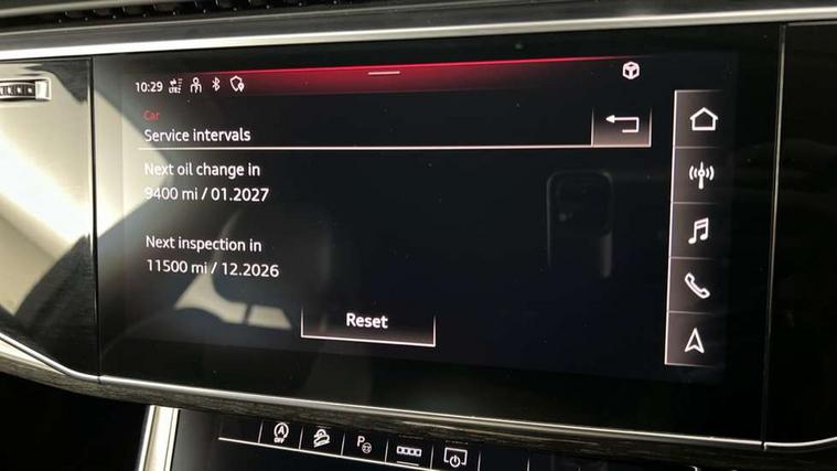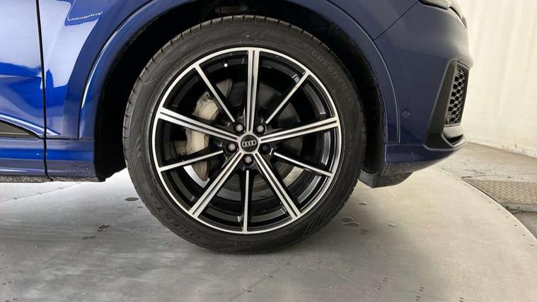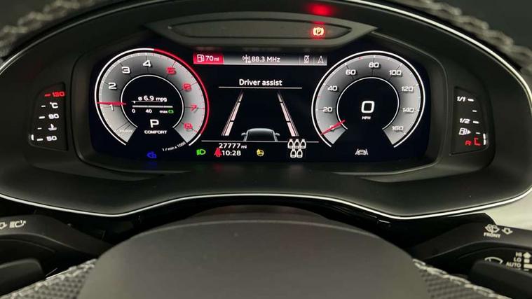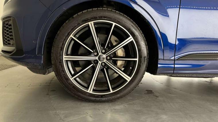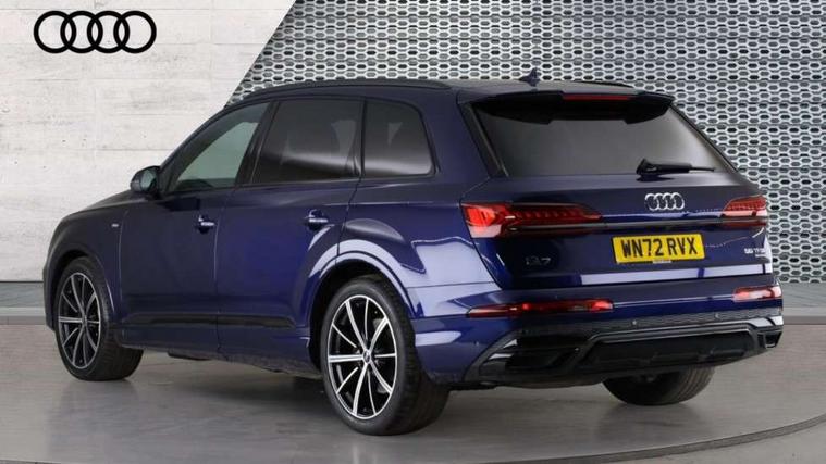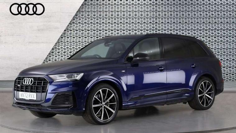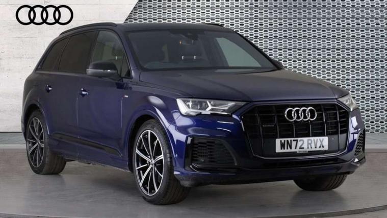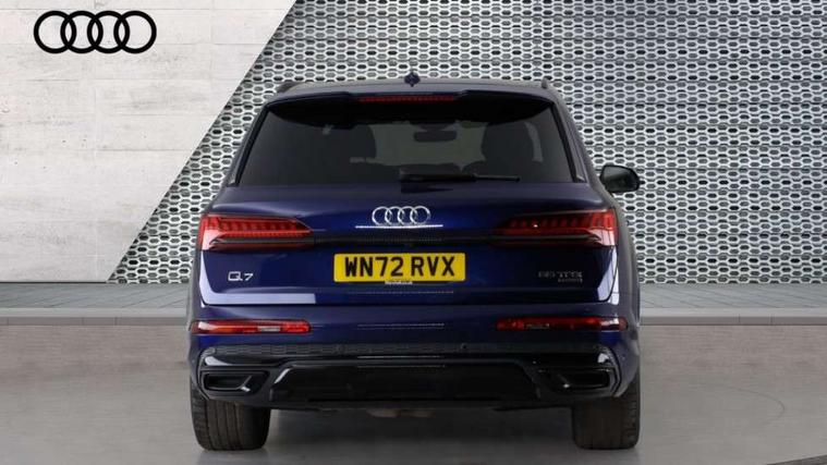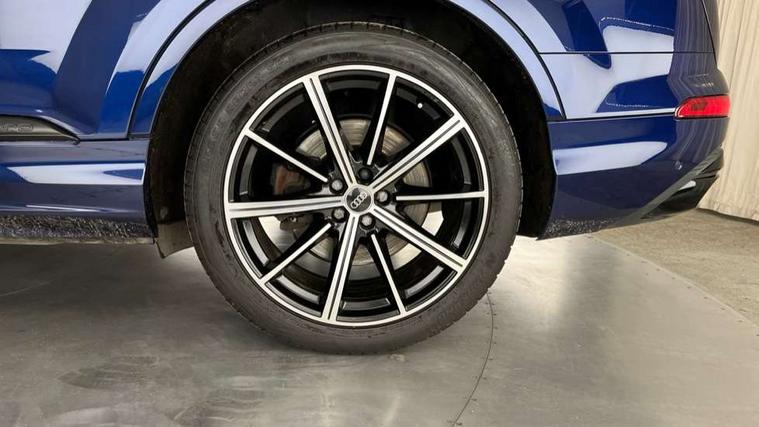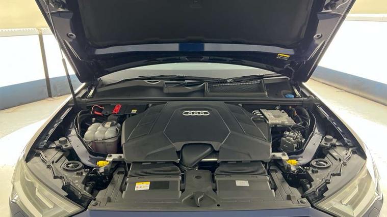 Audi connect safety and service (e-call), Audi connect with Amazon Alexa Integration, Audi drive select (Auto, Comfort, Dynamic, Efficiency, Individual, Off-road and All road), Bluetooth interface, Camera based traffic sign recognition, Electromechanical steering, MMI navigation plus with MMI touch screens includes 10.1" and 8.6" screens with haptic feedback, Natural voice recognition, Parking system plus with 360 degree display (front, rear and side sensors) - acoustic and visual park assist system, Power operated tailgate, Rear view camera, Smartphone interface includes wireless Apple carplay/Android Auto, Start/stop system, 48V Mild hybrid technology, 85 litre fuel tank, Adaptive air sports suspension, Quattro all wheel drive with self locking centre differential, Audi music interface - front 2 USB-C ports with charger and data functions, Audi sound system with 6 channel amplifier, 180 watt amplifying capacity and 10 loudspeakers including subwoofer, DAB digital radio module, 3rd brake light, Audi matrix LED headlights with dynamic front and rear indicators, Auto dimming frameless rear view mirror, Black roof rails, Bumpers in contrast paint scandium grey finish includes door trim and wheel arch trim strips, inlays in door strip contain quattro embossing, Electrically adj heated/folding + automatically dimming exterior mirrors with memory + automatic kerb side function for passenger side exterior mirror, Heat insulating glass in windshield, Integrated LED indications in door mirrors, LED daytime running lights, LED rear tail lights, Privacy glass - dark tinted rear and rear side windows from B-pillar backwards, Rear side wing doors, Rear wiper, 2 seat bench in 3rd row, 3 seat bench in 2nd row, 4 zone deluxe automatic climate control, 7 seat layout with ISOFIX points for the front passenger seat and rear passenger seat, Black cloth headlining, Comfort front centre armrest, Electric adjustable front seat with 4 way lumbar support, driver memory functionality, Folding rear seats, Front head restraints, Front/rear floor mats, Heated front seats, Illuminated door sill trims with S logo, LED interior ambient lighting, Luggage compartment cover, Luggage compartment sill protection in stainless steel, Rear head restraints, Single front passenger seat, Stainless steel pedals, Sunvisors with illuminated vanity mirrors, Titanium black styling pack - Q7/SQ7, 3 point seatbelts on all rear seats, Audi pre sense front, Child locks on rear doors, Driver and front passenger, front side and curtain airbags, Electromechanical parking brake, Electronic Stabilisation Control (ESC) including ABS, ASR and EDL, Extended pedestrian protection measures, Hill hold assist, Seatbelt monitoring, Tyre pressure loss indicator, Warning triangle and first aid kit, Anti theft alarm, Anti-theft wheel bolts and wheel loosening detection, Keyless Go, Remote central locking, Polished oak trim with grey finish inlay, Tool kit, Tyre repair kit,