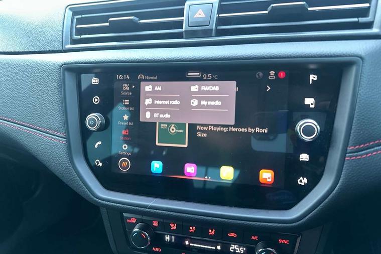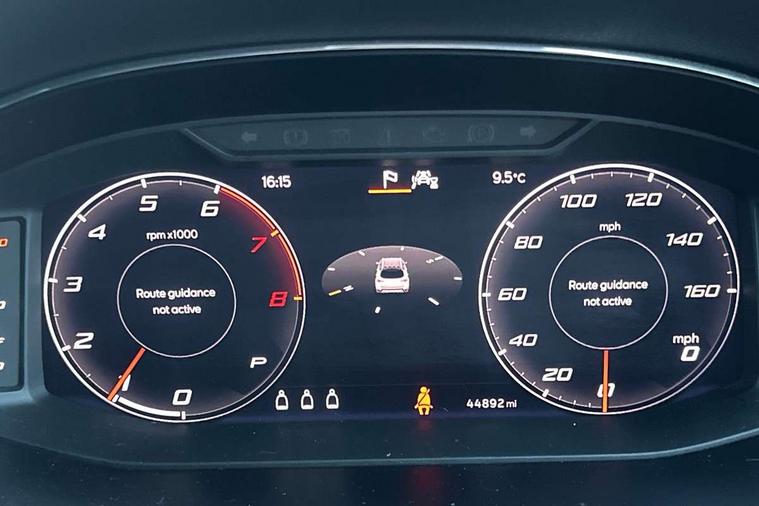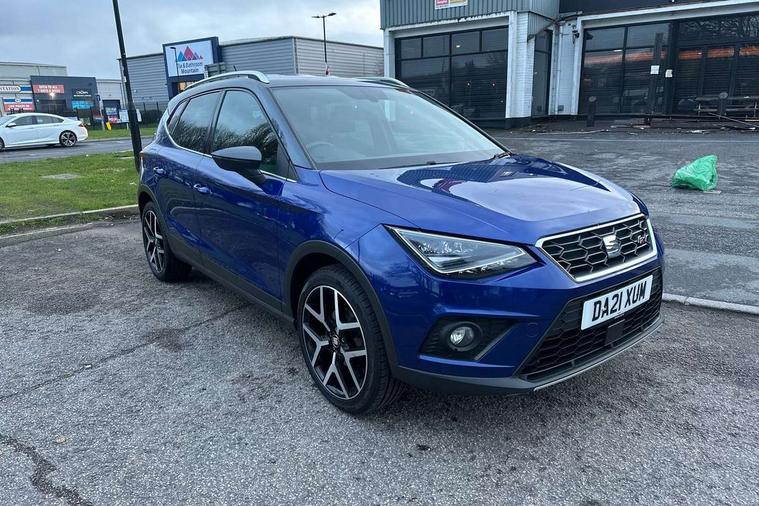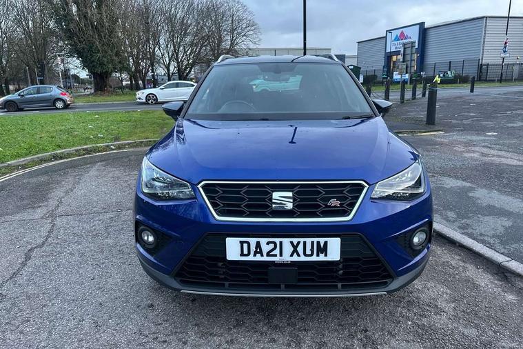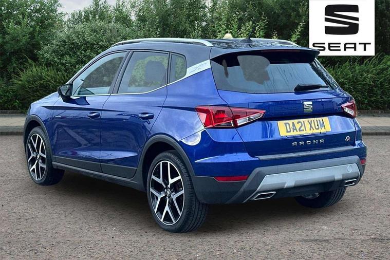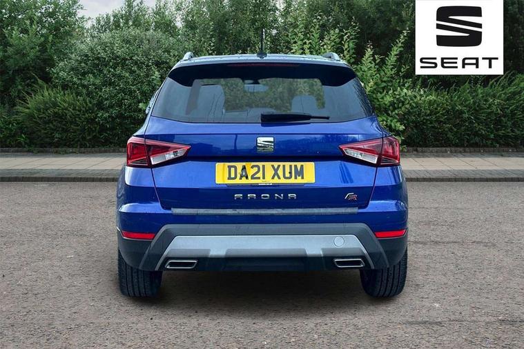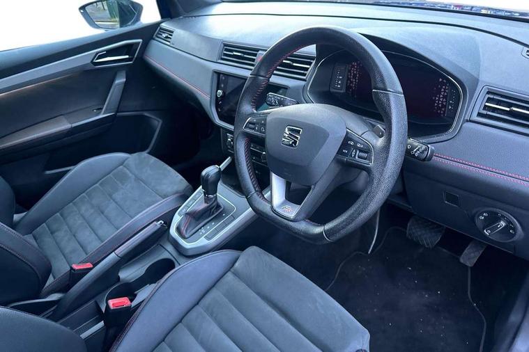 'Lights On' Reminder warning buzzer, Cruise control and speed limiter, Digital clock, Digital cockpit, Electric speed sensitive power steering, Full Link Smartphone Integration with Mirror Link, Apple Car Play, Google Android Auto with USB cable for Apple and Android compatibility, Low fuel warning light, Outside temperature display, Rear parking sensor, RPM counter, Seat connect with safety, service, remote and online, SEAT Drive profile - Four different models normal-sport-eco-individual, steering response, throttle response and gear shifts mode, Trip computer, Sports suspension, Bluetooth interface for hands free and audio streaming, DAB digital radio and AM/FM radio, Steering wheel mounted audio controls, Anti theft roof antenna, Auto dimming interior rear view mirror, Automatic activation of hazard warning lights, Automatic headlights, Body coloured bumpers, Body coloured door handle inserts, Chrome front grille frame, Chrome roof rails, Chrome window trim, Coming/leaving home lighting function, Dark tinted rear windows, Electric front/rear windows with one touch/auto up/down, Electrically adjustable, heated and folding door mirrors, Full LED headlights dipped and mainbeam + front and rear fog lights, Ice metal door side panels, LED daytime running lights, LED rear tail lights and licence plate lights, Protective side mouldings, Rain sensing wipers, Rear window wash/wipe, Roof colour door mirrors, Twin exhaust pipe styling hidden exhaust pipe, Visible VIN plate, Windshield wiper with intermittent control and potentiometer, 2 cupholders, 60/40 split folding rear seat, Aircare filter, Black interior roof, Double boot floor, Driver sunvisor with covered mirror + card holder, Dual zone climate control, Front courtesy light with front reading lights, Front sport seats, Gear shift indicator, Heated front seats, Height adjustable front seats, Height/reach adjustable steering column, Illuminated boot, Instrument lighting with brightness control, Interior light in footwell, central console and door panel, ISOFIX points in outer rear seats with top tether anchorage points, Microsuede cloth upholstery, Multi-colour ambient interior lighting, Passenger sunvisor with vanity mirror, Perforated flat bottomed leather steering wheel/gear knob/handbrake with red stitching and FR logo, Steering wheel mounted gearshift paddles, Two front and three rear height adjustable headrests, Connectivity pack plus - Arona, Interior chrome pack - Arona, 3 point seatbelts on all rear seats, ABS, Active front headrests, Child locks on rear doors, Driver and front passenger airbags with front passenger airbag de activation, front side and curtain airbags, Electronic stability control, Emergency Brake Assist (EBA) and front assist, Front and rear seatbelt reminder, Hill hold control, Multi-Collision braking, Tiredness recognition system, Traction control, Tyre pressure monitoring system, 2 folding remote keys with window open/close function, Alarm with back-up horn, Electronic engine immobiliser, Locking wheel bolts, Remote central locking + deadlocks, Tow away protection, Interior chrome line trim, Leatherette dashboard, 18" Performance alloy wheels,