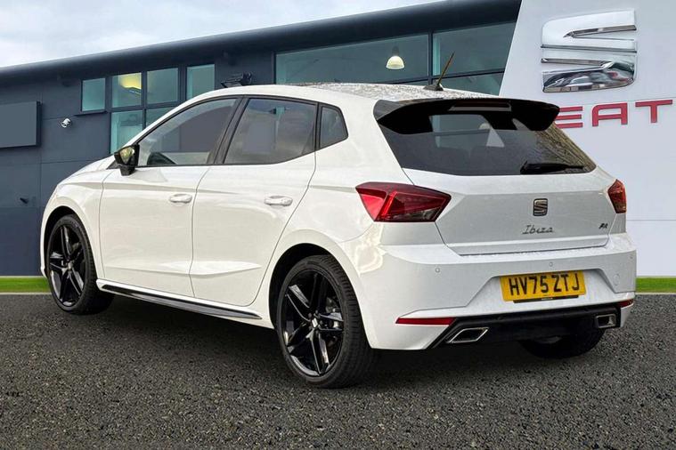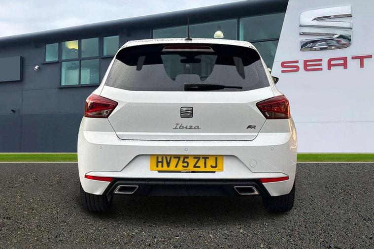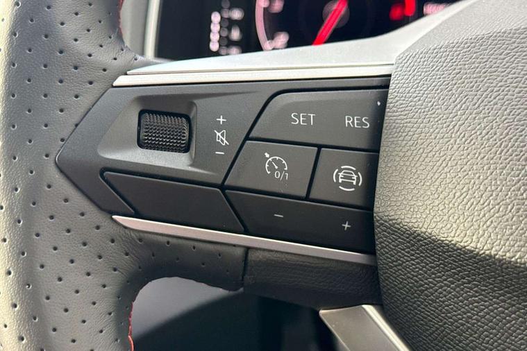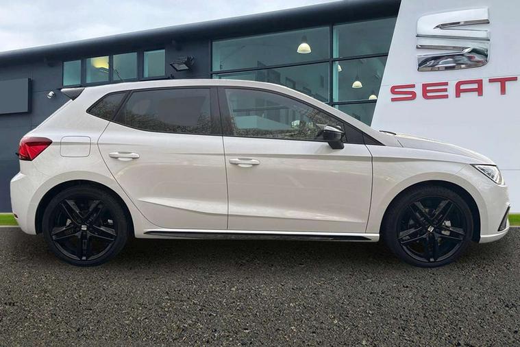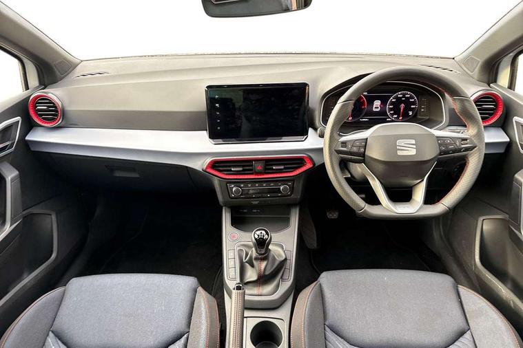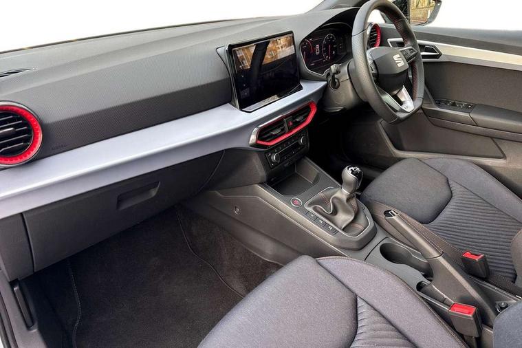 'Lights On' Reminder warning buzzer, 10" Digital cockpit, 9.2" touchscreen navigation system with type C USB socket, Voice control and DAB/AM/FM radio, Auto start and stop system, Bluetooth audio streaming with handsfree system, Digital clock, E-call, Full link smartphone integration with mirror link, wireless apple carplay, Google android auto + USB Type C cable for apple and android devices, Lane assist, Low fuel warning light, Outside temperature gauge, Power Steering, Rear parking sensor, Seat connect plus with safety, service, remote and online, SEAT drive profiles and ECO function, SEAT logo boot release, Speed limiter, Traffic sign recognition, Trip computer, Sports suspension, Auxiliary input socket, Radio/MP3 player, SD card slot, Steering wheel mounted controls, Anti theft roof antenna, Auto dimming rear view mirror, Automatic rain sensing wipers, Black door mirror caps, Black roof spoiler, Black side skirts, Body colour bumpers, Body colour door handles, Brilliant black window surrounds, Dark tinted rear windows, Electric adjustable/heated/folding door mirrors, Electric front windows, Electric headlight adjustment, Electric panoramic sunroof, Electric rear windows, Front/rear fog lights, FULL LED automatic headlights with dynamic headlight range control, coming and leaving home, LED daytime running lights, LED 3rd brake light, LED tail lights, Rear roof spoiler with FR twin exhausts, Rear side wing doors, Rear wiper, 3 seat bench in 2nd row, 60/40 split folding rear seat, Ambient interior lighting, Chrome detailing and black headlining, Dual zone climate control with combination filter, Front courtesy lights, Front cupholders x 2, Front reading lights, Front sport bucket seats, Gear shift indicator, Glovebox, Heated front seats, Height adjustable front and rear headrests (five), Height adjustable front seats, Height/reach adjust steering wheel, Illuminated air vent surrounds, Illuminated boot, Instrument lighting with brightness control, Isofix, Leather multifunction flat bottomed sports steering wheel, Microsuede cloth upholstery, Passenger sunvisor, Single front passenger seat, Storage pockets on back of front seats, Sunvisors with mirror and driver side card holder, Safety and driving pack (S) - Ibiza, ABS, Active front headrests, Child locks on rear doors, Electronic stability control, Energy recovery system, Front driver and passenger side airbags with curtain airbag and front passenger airbag deactivation, Hill hold control, Multi-Collision braking, Seat belt reminder for front and rear seats, Tiredness recognition system, Tyre pressure monitoring system, KESSY Keyless entry and go, Locking wheel bolts, Perimeter alarm and interior monitoring with backup horn and tow away protection, Remote central locking + deadlocks, 18" Performance alloy wheels in glossy black,