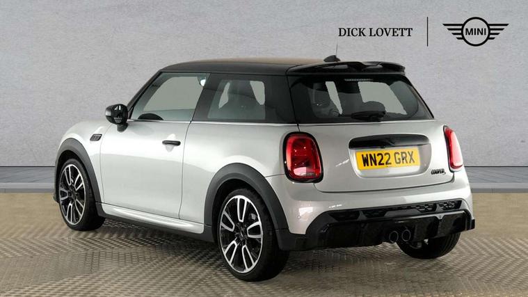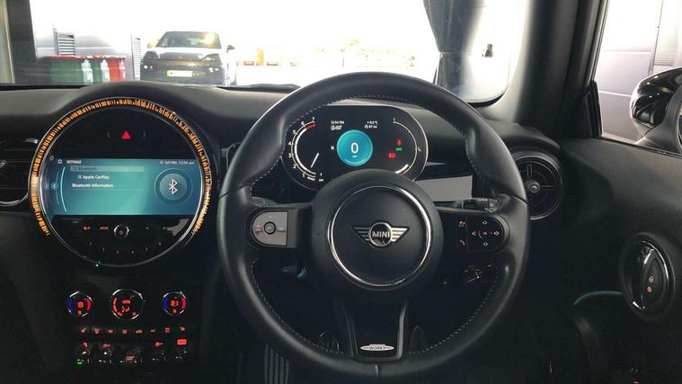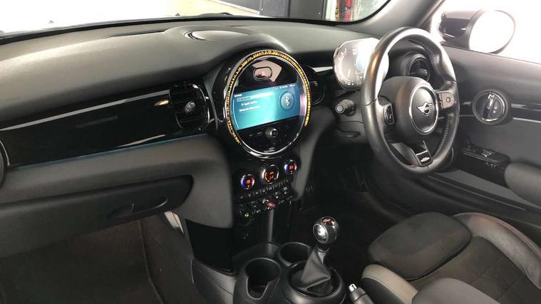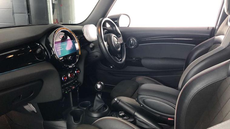 Apple CarPlay, Automatic start/stop function with brake energy recuperation, Compatible mobile phone bluetooth with audio streaming, Cruise control with brake assist, Electro-mechanical speed dependant steering assistance, Flexible car sharing preparation, Instrument cluster, MINI Driving Modes - centre toggle switch to control driving setting (sport, mid and green), Mini E-call, MINI TeleServices, On board computer, Rear park distance control, Service interval indicator, 6 Speed manual transmission including gear change indicator display, Double Vanos system, Fully variable valve control, High precision injection, Intelligent adaptive suspension, Performance Control, 8.8" touchscreen with LED ring, FM tuner and DAB digital radio, 3rd brake light, Automatic headlight activation switch, Bonnet scoop, Dynamic brake lights, Electric front windows, Heated rear window, Heated windscreen washer jets, JCW Aerodynamic kit - Front and rear bumpers with sporty JCW styling and part-painted side sills with MINI John Cooper Works door sill finishers, John Cooper Works rear spoiler, LED headlight with closed ring and daytime driving lights, Metal door sill strips with Cooper S, Model logo Cooper S on right of tailgate, Radiator grille chrome border with honeycomb structure including S Badge, Rain sensor window wipers, Rear fog lights, Rear LED lights with union jack design, Rear window wiper, Side scuttle panel with integrated indicator, Sun/heat protection glass, Two central exhaust tailpipes with chrome finisher, White indicator lenses, 12V Accessory socket in centre console, 2 seat bench in 2nd row, 4 lashing eyes in luggage compartment, 60/40 split folding rear seat, Anthracite headliner including grab handles and clothes hooks, Carbon black colour line - Knee roll and door armrest, Chrome interior highlights, Cupholders, Front and rear isofix with front passenger airbag deactivation, Front floor mats in velour, Glove compartment, Height and length steering column adjustment, Interior lighting with 12 different colours across the dashboard, underneath door bezel with illuminated laser-engraved design on central display, JCW Sport seats with integrated headrests, adjustable thigh support and John Cooper Works logo, Leatherette gearshift lever and handbrake gaiters, LED reading lights, vanity mirror lights, front foot well light and spotlight on front seats, Manual air conditioning, Mechanical seat adjustment - forward/back & backrest for front seats and driver seat height adjust, Multifunction steering wheel, Passenger seat height adjuster, Single front passenger seat, Storage compartments in doors, Storage pocket on back of front seats, Sunvisors with vanity mirrors, Walknappa leather steering wheel with grey seam and John Cooper Works badge on Piano Black lower steering wheel spoke, Piano black exterior pack - Mini Hatchback Cooper S, 3 point seatbelts on all four seats, 6 Airbags - front, side, head and seat belt tensioners, Anti-lock braking system (ABS), DSC - Dynamic Stability Control, Front and rear disc brakes, Two tone horn, Tyre pressure monitoring system, Alarm system with tilt sensor, monitoring doors, bonnet interior and tailgate, Electronic vehicle immobiliser, Start/stop toggle with keyless go, Piano black interior trim, Tool kit,