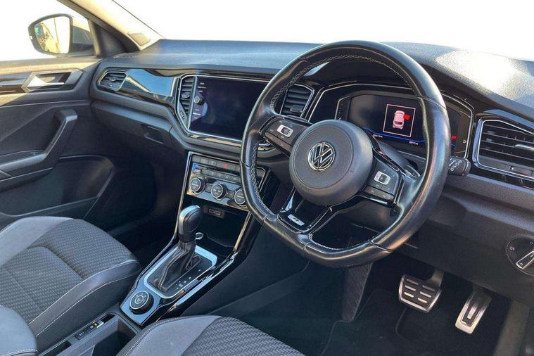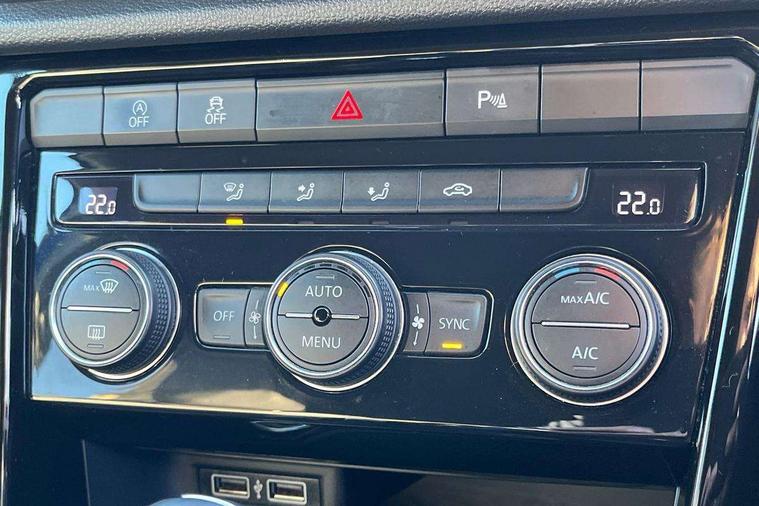 19" Pretoria matt dark graphite alloy wheels with anti-theft wheel bolts, Steel space saver spare wheel, Alarm with remote central locking and interior protection, Electronic engine immobiliser, Remote central locking with 2 remote folding keys, CD/MP3/WMA, USB and SD card reader, DAB Digital radio, 17" Front wheel brake system, 3 point height adj front seatbelts + pretensioners, 3 rear 3 point seatbelts, ABS, Black brake calipers with R logo, Driver/Front Passenger airbags, Driver/Passenger whiplash optimised head restraints, DTC - Drag torque control, Electronic parking brake with auto hold, ESC - Electronic Stability Control + traction control, ESP with EDL + ASR, Front and rear curtain airbags, Front assist including city emergency braking, Front passenger airbag deactivation, Front side airbags, Predictive pedestrian protection, Tyre pressure monitor, Auto dimming interior rear view mirror, Automatic activation of hazard warning lights, Body colour door handles, Body colour rear roof spoiler, Body colour side skirt, Chrome grille surround, Coming/leaving home lighting function, Electrically foldable, adjustable and heated door mirrors with puddle lights and reverse activated kerb-view adjustment on passenger's door mirror, Front and rear electric windows, Front wash/wipe with interval delay, Heated rear windscreen, LED dipped and main beam headlights with automatic range adjustment including signature LED daytime running lights, LED rear lights, Matt chrome finish roof rails, R Specific body colour door add-on parts and black grained wheelhouse add-on, R Specific body colour rear bumper, R Specific front bumper with specific air inlets, R Specific rear spoiler, R Specific underride protection in contrasting colour, Radiator grille with R Logo, Rain sensor, Rear tinted glass from B-pillar backwards approx 65% tinted, Rear windscreen washer and wiper with interval delay, Trailer Stability Programme, 12V power socket in centre console, 3 rear headrests, 50/50 rear seat bench split folding rear seat backrests, 60/40 split folding rear seat, Air conditioning - 2 zone electronic climate control, Black decorative sleeve on gear handles, Black roof liner, Boot lashing points, Central armrest and small leather package with crystal grey contrasting stitching, Courtesy light delay, Door sill trims with R logo, Drawer under drivers seat, Driver/front passenger seat height adjustment, Dust/pollen filter, Floor mats with crystal grey contrasting stitching, Footwell lights, Front cupholders x 2, Front seat back storage pockets, Front sport seats, Glovebox, Height/reach adjust steering wheel, Illuminated vanity mirrors, Illuminated vanity mirrors in sun visors with air bag label on sun visor and b-pillar, Interior light in footwell, Isofix preparation for 2 rear child seats, LED reading lights, Load through provision with rear centre armrest and cupholders x2, Luggage compartment cover, removable, Luggage compartment lighting, Lumbar support for driver's and front passengers seat, R Specific leather sport steering wheel with logo and crystal grey contrasting stitching, Stainless steel pedals, Storage box in luggage compartment, Storage compartments in doors, USB charging point, Variable boot floor, height adjustable and removable, White ambient lighting, App-Connect, ACC - Adaptive cruise control with front assist, forward collision warning, distance monitoring, city emergency brake and speed limiter, Active Info Display, 10.3" high resolution TFT dash display screen with customised information, Bluetooth hands free telephone connection, Car-Net Security and Service, Discover navigation, 8" touch screen navigation/infotainment system with Car-Net, European map, CD/radio, 2D/3D map and speed limiter, Door/tailgate open warning lights, Driver alert system with audible and visual fatigue detection system, Driver alert system with fatigue detection, Driver profile selection, Driver profile selection including ECO function, Instrument cluster in white, Lane assist, Multifunction computer, Race mode in driving programme selection, Ultrasonic front and rear optical and audible parking sensors, Voice activation, Warning buzzer and light for front seatbelts unfastened,