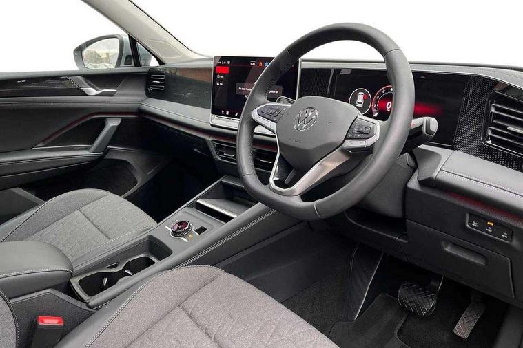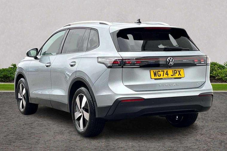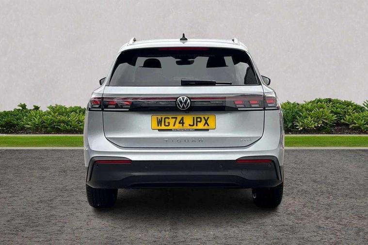 Adaptive cruise control (ACC), Advanced driver attention and drowsiness monitor, Bluetooth mobile phone interface, Car2X technology, Digital Cockpit Pro - 10.25" high resolution dash display screen with customisable menus and information, Dynamic road sign display, E-Sim card for online connectivity, eCall emergency call service, Front Assist - Autonomous emergency braking with pedestrian and cyclist monitoring, Lane change system, Side assist, Rear traffic alert and Exit warning system, Lane keeping system Lane Assist, Multifunction front facing camera, Oncoming vehicle braking when turning including swerve support, Park assistance plus with front and rear parking sensors, Power assisted steering with speed sensitive, Start/stop system with regenerative braking, Warning signal and warning light for front and rear seatbelts not fastened, Wireless App-Connect, Front wheel drive, Digital radio reception (DAB), Diversity antenna for FM reception, Ambient lighting with logo projection, Auto dimming interior rear view mirror, Automatic headlight control system, Body coloured bumpers and air intake with chrome trim, Body coloured door handles, Body-coloured exterior mirror housings, Coming/leaving home lighting function, Heat insulating glass in side and rear windows, Heat insulating windshield, Heated rear window, High level 3rd brake light, Illuminated door handle recesses, Illuminated lightline between headlamps, Rain sensor windscreen wipers, Rear fog light on one side, reversing light on both sides, Rear side wing doors, Rear wiper, 12V outlet in center console rear and in luggage compartment, 12V socket in centre console, 3 bench rear seats in 2nd row, Air care climatronic 3 zone air conditioning system with rear air conditioning control panel, Carpet mats, front and rear, Centre console with illuminated storage compartment with sliding cover and two drinks holders, Ceramique headlining, Door and side trim panel in foam film and woven fabric, Front centre armrest, ISOFIX anchors for child seats on outer rear seats and front passenger seat. Compatible with i-Size, Mechanical rear seat release, Power adjustable lumbar support in front, Rear bench seat, split folding, longitudinally movable and folding with load-through hatch and centre armrest, Safety optimised front head restraints, Single front passenger seat, Sun visors with illuminated vanity mirrors, Three rear head restraints, Variable luggage compartment floor, Comfort package with park assist pro - Tiguan, Design package - Tiguan, 3 point seat belt for centre rear seats, 3 Point seat belts in front with pretensioners, 3 point seatbelts in outer rear with ECE label, Driver and front passenger airbag with front passenger airbag deactivation, Electronic parking brake with auto hold, Front and rear curtain airbags, Front and rear side airbags, Front centre airbag, Front disc brakes, Manual child proof rear door locks, Rear disc brakes, Two tone horn, Warning triangle, Anti theft wheel bolts, Soul instrument panel, Airstop tyres,