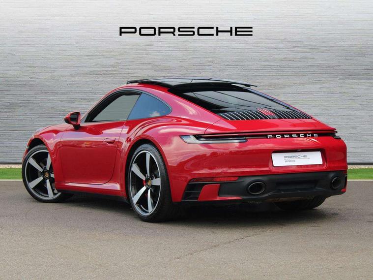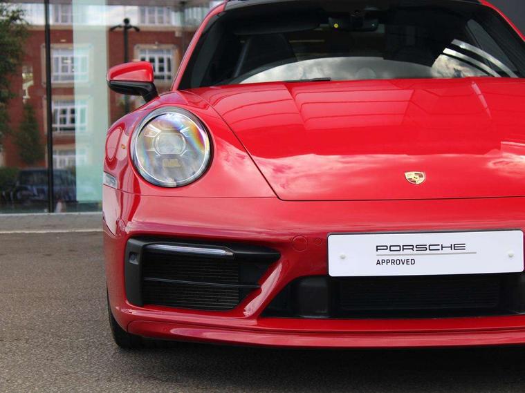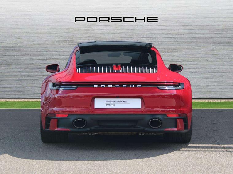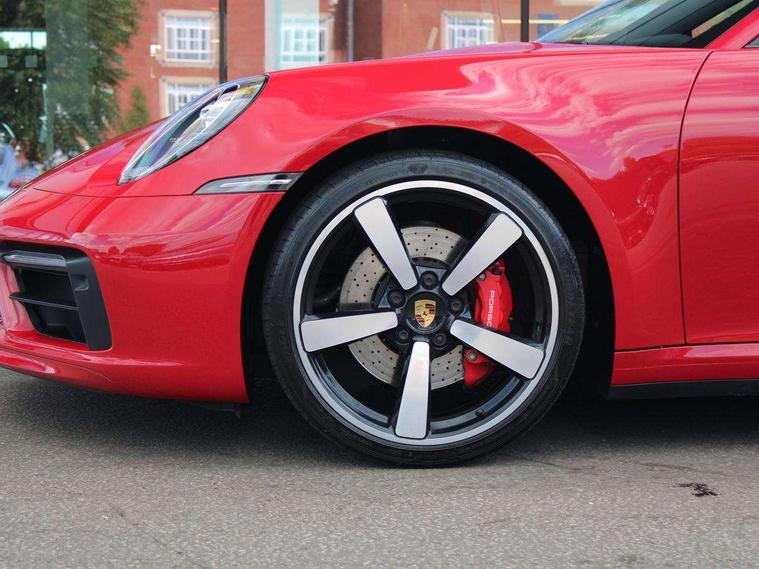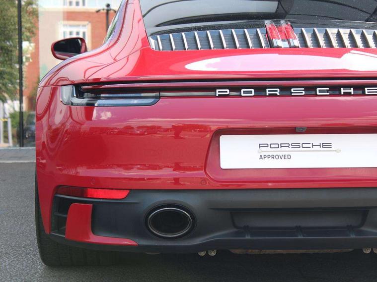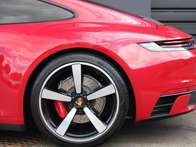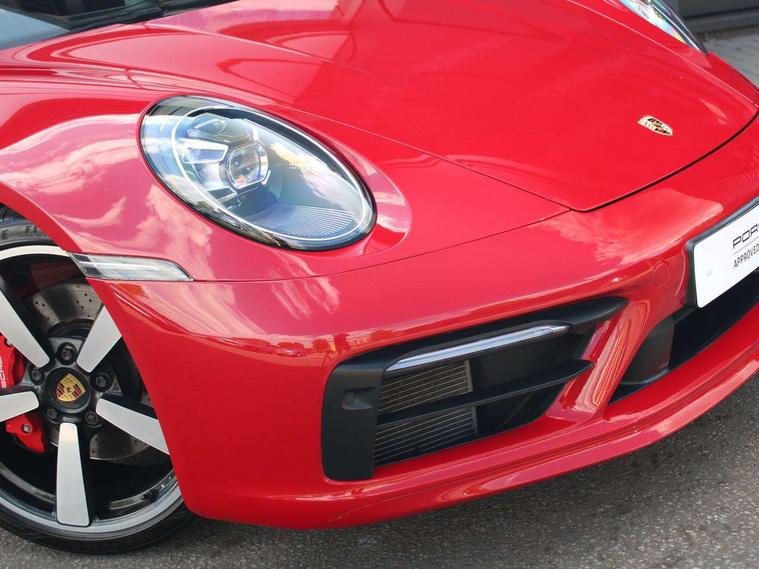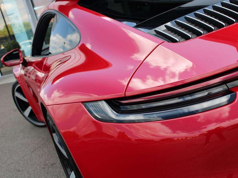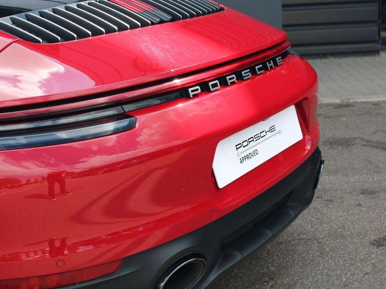10.9 inch centre display, Automatic start/stop system, Connect Plus, Apple CarPlay, telephone module, wireless internet access, carfinder, remote vehicle status, remote service, vehicle track, Digital display for selected gear in rev counter, Electromechanical power-assisted steering with variable steering ratio and steering pulse generator, Instrument cluster with central analogue rev counter and two 7-inch TFT displays, PAS, Porsche communication management (PCM) including online navigation module, Porsche WET Mode, Service indicator, Stationary management with HOLD function, Trip computer, Warn and Brake Assist, 8 Speed Porsche Doppelkupplung (PDK), Aluminium block and cylinder heads, Direct fuel injection (DFI), Expansion intake manifold, Four valve per cylinder, Front anti roll bar, Gasoline particulate filter, Integrated dry-sump lubrication with an on-demand oil pump, McPherson strut front suspension, Multi-link suspension with anti-roll bar at rear, Porsche Stability Management (PSM), ABS with extended brake functions, Porsche Torque Vectoring Plus (PTV Plus) inc electronically regulated rear differential lock and fully variable torque distribution, Twin turbocharger intercooled, Two three-way catalytic converters and on-board diagnostics for monitoring emission control system, VarioCam Plus variable valve timing and switchable valve lift, Analogue sound system, DAB Digital radio, "PORSCHE" lettering integrated in taillight strip, Automatic headlight activation including welcome home lighting, Automatically operated rear spoiler, Body colour bumpers, Electrically adjustable heated exterior mirrors on door waist rails, aspherical on driver's side, Engine compartment cover grille with vertical slats in silver colour (high-gloss), Four-tract exhaust system with twin dual-tube tailpipes (in stainless steel), Green tinted heat insulating glass, Heated rear windscreen, Intelligent lightweight body in Aluminium/Steel composite construction, LED auxiliary light units in the front end with position lights, direction indicators and side indicators, Model designation on rear trim with highly polished chrome-plated finish, Power windows with one touch operation and door seal protection, Retractable door handles, Side air intakes at front with active cooling flaps and air blades, Taillight strip including integral parking lights and rear driving lights, Three dimensional LED taillights and integral third brake light, Trims on sideskirts in black, Windscreen washer system with aero wiper blades and washer jets, Windscreen with grey top tint, 12V socket in front passenger footwell, Automatic air recirculate, Centre console cupholder, Clothes hooks on seat backrests and on B-pillars, Floor mats, Front and rear head restraints, Heated front seats, Individual driver/passenger temperature controls, Inner door sill guards with model designation, ISOFIX child seat mounting points on passenger seat, Luggage compartment at front, Multifunction steering wheel, Passenger cupholder, Pollen/active carbon filters, Roof lining and A, B & C-pillar trims in fabric, Split folding rear seats, SPORT button to activate dynamic driving settings for engine, transmission (with PDK), Storage compartments in each doors, Two zone automatic climate control, Sound package plus - 911 (992), Brake discs with 350mm diameter at front and 350mm at rear, internally vented and cross-drilled, Dual stage driver/passenger airbags, Electric parking brake, Electromechanical power brake, ESP, Porsche side impact protection doors with thorax airbag in outer backrest side bolster and head airbag for driver/passenger in door panel, POSIP, PTM (Porsche Traction Management) and All-wheel drive with map-controlled multi-plate clutch, Six piston front and four piston rear in closed type aluminium monobloc, TPMS (Tyre pressure monitoring system), Alarm, interior ultrasonic protection, Electronic immobiliser, Keyless Go, Remote central locking, Tyre sealing compound and electric air compressor kit,