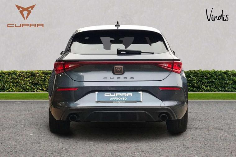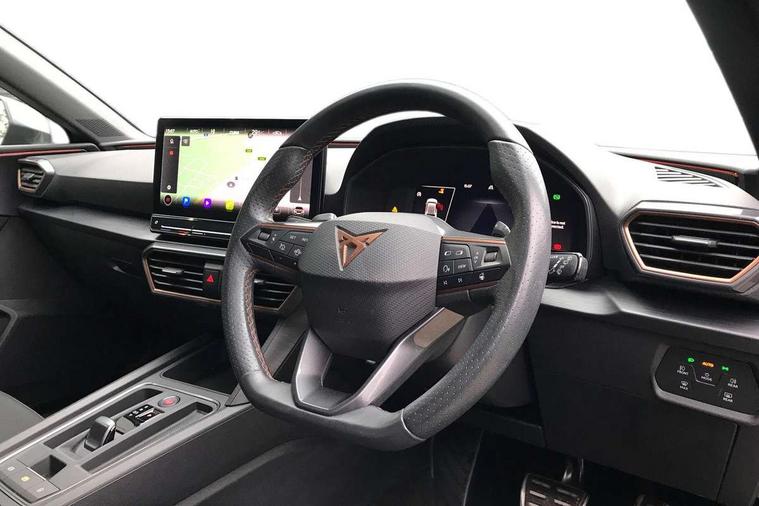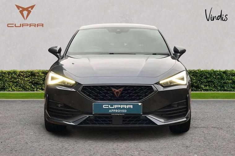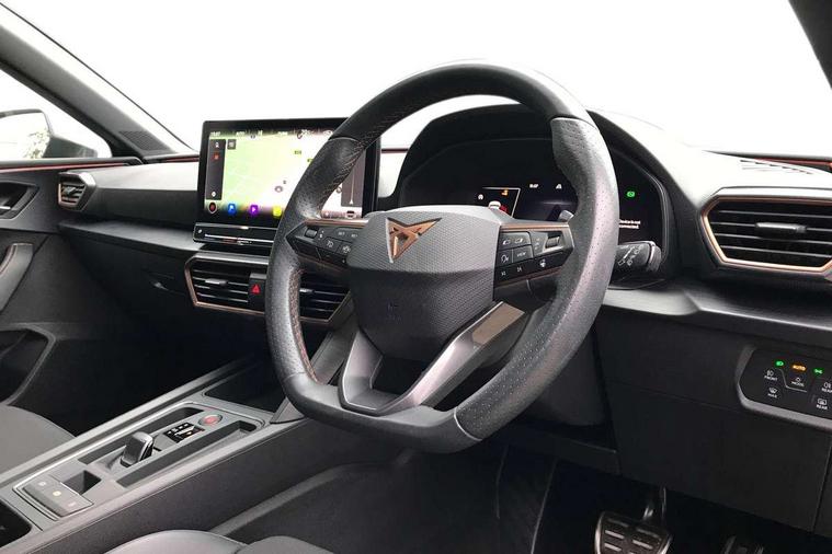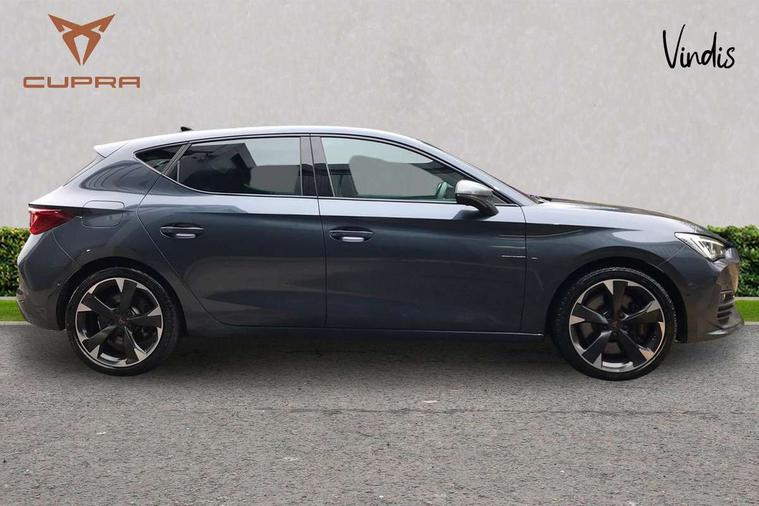 CUPRA drive profile selection with 4 modes (Comfort/Cupra/Sport/Individual), throttle response and gearshift mode, Digital cockpit, E-call, Electro mechanical speed sensitive power steering, Front assist with forward collision warning braking reaction to vehicles, pedestrians and cyclists, Full link smartphone integration with Mirror Link, wireless Apple CarPlay and wired Google Android Auto, Lane assist, Lockable tailgate, Park assist (inc front/rear parking sensors), Rear view camera, RPM, trip computer, outside temp gauge, instrument light brightness, low fuel warning light, lights on reminder, gearshift indicator, Service interval indicator, Start/stop system with regenerative braking, Sports suspension, XDS electronic differential lock and dynamic traction support, 7 speakers, Auxiliary input socket, Auto dimming rear view mirror, Body colour door handles, Body coloured bumpers, Cupra sports bumpers, Dark tinted rear windows, Electric front/rear windows, Electrically adjustable, heated and folding door mirrors, LED front fog lamps with cornering function, LED headlights with dynamic turn signals, tail lights, rear fog lights with rear coast to coast lighting, Rain sensing wipers, Rear diffuser with twin exhaust pipe on each side, Rear side wing doors, Rear wash/wipe, Separate daytime running light with automatic headlight control and coming home feature, Third brake light, 12v power supply in centre console, 3 seat bench in 2nd row, 5 headrests, 60/40 split rear bench seat with armrest, Ambient lighting (glovebox, footwell, ambient lighting multicoloured), Black headlining, CUPRA Leather flat bottomed, heated, perforated steering and gearshift paddles, Cupra sports pedals, Driver/passenger manual seat height adjustment, Dust/pollen filter, Folding boot cover, Four x USB Type C ports, Front and rear reading lights X 4, Front centre armrest, Front seats manual lumbar adjustment, Height/reach adjust steering wheel, Illuminated interior front door sills, Interior wraparound lighting, ISOFIX points in outer rear seats with top tether anchorage points, Jack and tool kit, Luggage tie-down hooks, PVC/Cloth upholstery with copper stitching + Cupra embossed logo on headrest, Single front passenger seat, Sports bucket seats, Storage pockets on rear of front seats, Sunvisors with illuminated mirror, Three zone climate control, Media system plus with navigation pack - Leon Cupra, 3 point seatbelts on all rear seats, ABS, Brake control system - ESC and brake booster, Child proof door locks, Cupra black brake calipers, Driver and front passenger airbags with front passenger airbag de-activation, front side and curtain airbags, Electronic parking brake, Extended safety system - seat belt tensioner, window closure and hazard lights, Hill hold control, Rear disc brakes, Seat belt reminder for front and rear seats, Tiredness recognition system, Tyre pressure monitoring system, Anti theft alarm system with interior monitoring in cab, backup horn and towing protection, KESSY Advanced - Keyless start, keyless entry, Locking wheel bolts, Chrome and copper interior detailing, 18" Machined sport black and silver alloy wheels with 92Y tyres, Space saver spare wheel,