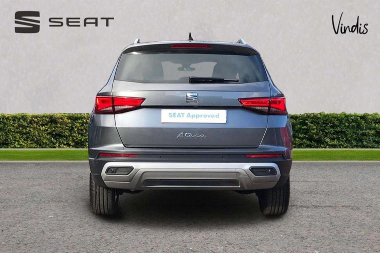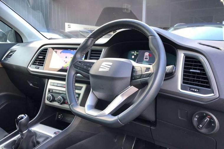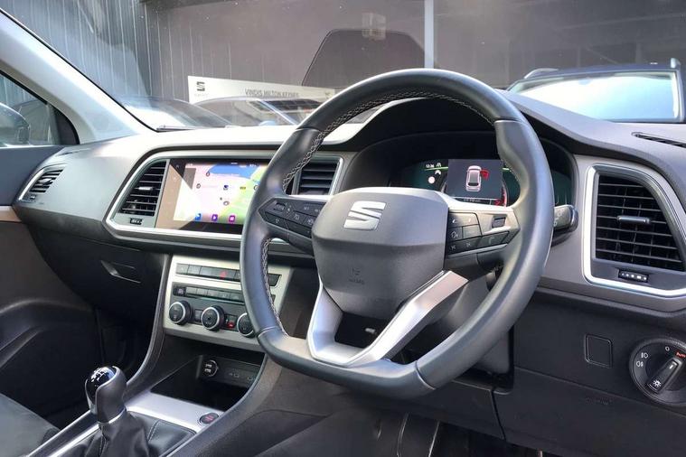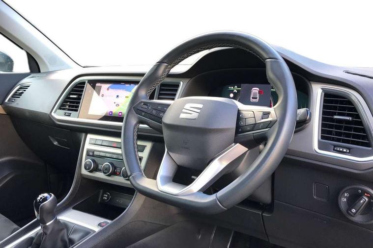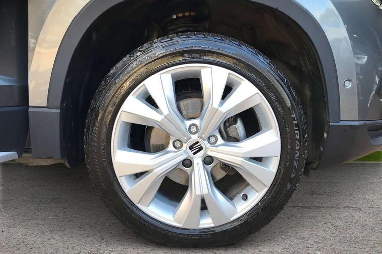 8" Digital cockpit, Colour multi-function on board computer display, E-call, Outside temperature gauge, Progressive power assisted steering, Rear view camera, SEAT drive profile with driving experience button - Normal, Sport, Eco and Individual mode, steering and throttle response, Self parking functionality (includes front and rear parking sensors), Start/stop system, Tailgate, Trip computer, Wireless full link smartphone integration, Wireless phone charger, Steering wheel mounted audio/phone controls, Black wheel arch surrounds, Body colour bumpers, Chrome front grille frame, Chrome roof rails, Chrome side window trim, Climacoat windscreen, Dark tinted rear windows, Daytime running lights, Door mirrors with welcome light silhouette, Dynamic headlight range control with self adjusting whilst driving, Electric adjustable/heated/folding door mirrors, Front and rear electric windows, Front grille hot stamping, Full LED headlamps with lens and LED front fog lamps with cornering function, Illuminated aluminium front door sill, LED 3rd brake light, LED rear tail lights with dynamic indicators, Rear exhaust tailpipe, Rear fog lights, Rear side wing doors, Rear wash/wipe, Reflex silver side mouldings, Variable front intermittent wipers, 12V socket in front, 3 seat bench in 2nd row, 60/40 split folding rear seat, Dinamica upholstery with front comfort seats, Drawer under right front seat, Dual zone climate control, Front and rear head restraints, Front centre armrest, Front seat back storage pockets, Height adjustable driver and passenger seat with lumbar adjustment, ISOFIX points in outer rear seats with top tether anchorage points, Leather sports steering wheel and gear knob, Rear armrest and easy back seat release mechanism from boot, Single front passenger seat, Convenience pack - Ateca, Interior lighting pack - Ateca, Navigation system pack with DAB - Ateca, Safety and driving pack (M) - Ateca, Safety and driving pack with attention and drowsiness assist - Ateca, 3x3 point rear seatbelts, ABS, Traction control system (TCS), Electronic stability control (ESC) and Electronic differential lock system (XDS), Airbags - Driver and front passenger airbag with deactivation, front side, two curtain and driver's knee airbags, Electric parking brake with auto hold function, Front and rear seatbelt reminder, Hill hold control, Manual rear child locks, Single tone horn, Tiredness recognition system, Tyre pressure monitoring system, Alarm, Keyless entry, Locking wheel bolts, Remote central locking, Chrome interior detailing, 18" Brillaint silver alloy wheels,