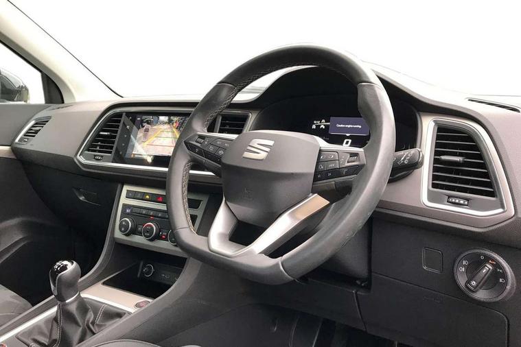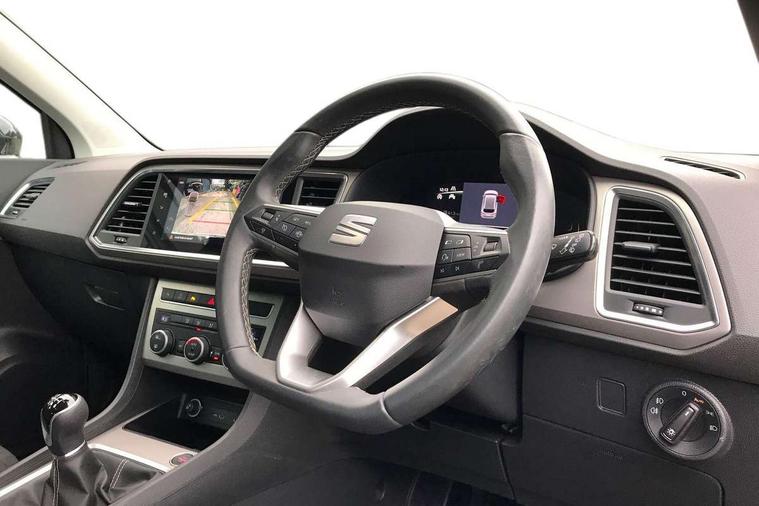 8" Digital cockpit, Colour multi-function on board computer display, E-call, Outside temperature gauge, Progressive power assisted steering, Rear view camera, SEAT drive profile with driving experience button - Normal, Sport, Eco and Individual mode, steering and throttle response, Self parking functionality (includes front and rear parking sensors), Start/stop system, Tailgate, Trip computer, Wireless full link smartphone integration, Wireless phone charger, Steering wheel mounted audio/phone controls, Black simulated exhaust pipes, Black wheel arch surrounds, Body colour bumpers, Chrome front grille frame, Chrome roof rails, Chrome side window trim, Dark tinted rear windows, Daytime running lights, Door mirrors with welcome light silhouette, Dynamic headlight range control with self adjusting whilst driving, Electric adjustable/heated/folding door mirrors, Front and rear electric windows, Front grille hot stamping, Full LED headlamps with lens and LED front fog lamps with cornering function, Illuminated aluminium front door sill, LED rear tail lights with dynamic indicators, Rear fog lights, Rear side wing doors, Rear wash/wipe, Reflex silver side mouldings, Variable front intermittent wipers, 12V socket in front, 3 seat bench in 2nd row, 60/40 split folding rear seat, Drawer under right front seat, Dual zone climate control, Front and rear head restraints, Front centre armrest, Front seat back storage pockets, Height adjustable driver and passenger seat with lumbar adjustment, ISOFIX points in outer rear seats with top tether anchorage points, Leather steering wheel and gear knob, Microsuede upholstery with front comfort seats, Rear armrest and easy back seat release mechanism from boot, Single front passenger seat, Convenience pack - Ateca, Interior lighting pack - Ateca, Navigation system pack with DAB - Ateca, Safe and driving pack with lane assist - Ateca, 3x3 point rear seatbelts, ABS, Traction control system (TCS), Electronic stability control (ESC) and Electronic differential lock system (XDS), Airbags - Driver and front passenger airbag with deactivation, front side, two curtain and driver's knee airbags, Electric parking brake with auto hold function, Front and rear seatbelt reminder, Hill hold control, Manual rear child locks, Single tone horn, Tiredness recognition system, Traction control, Tyre pressure monitoring system, Alarm, Keyless entry, Locking wheel bolts, Remote central locking, Chrome interior detailing, 18" Brillaint silver alloy wheels,