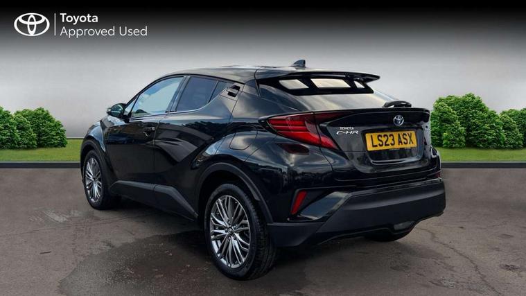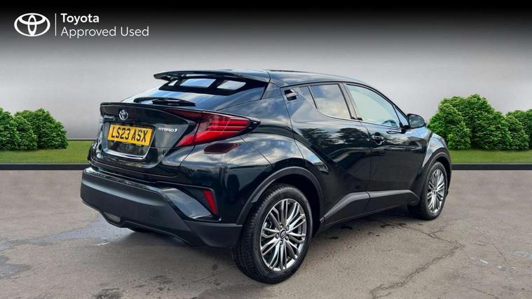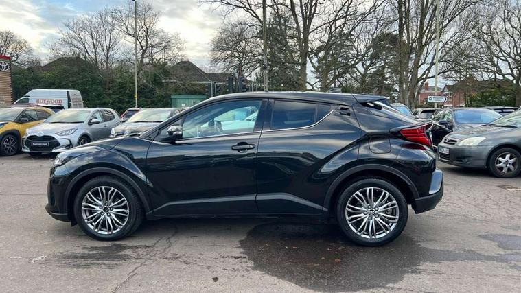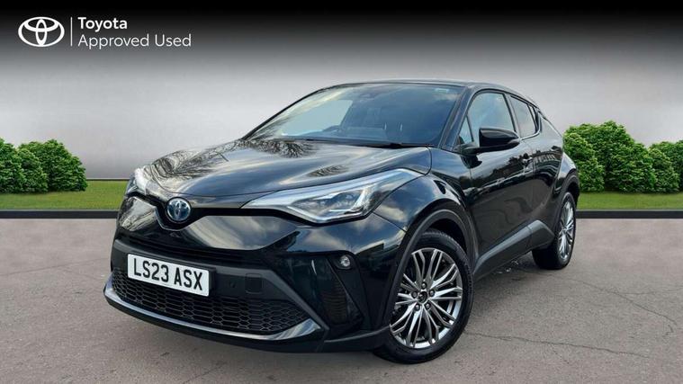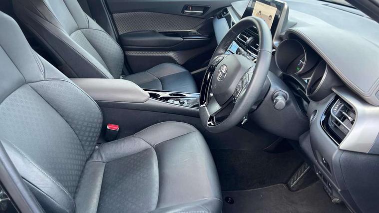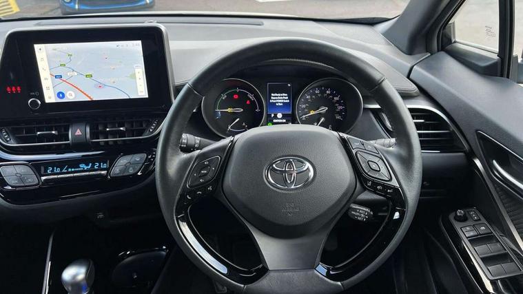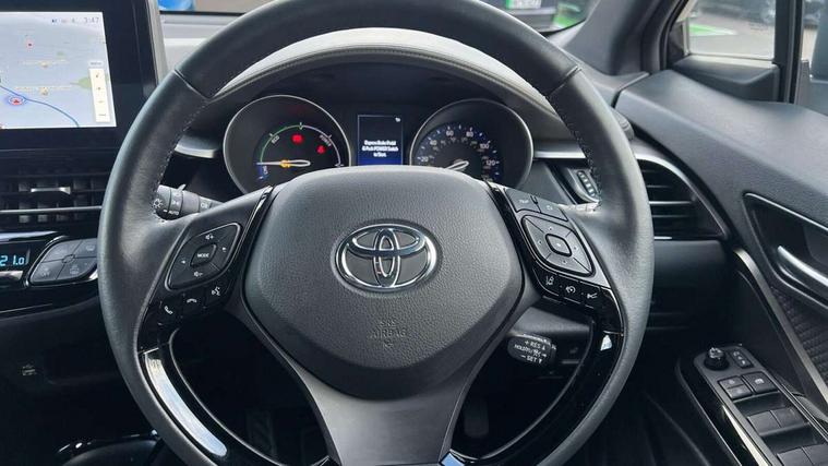 4.2" coloured TFT screen for multi-information display, Adaptive cruise control, Apple car play and Android auto, Bluetooth connectivity, E-call, Electric power steering, Hybrid system indicator, Lane departure alert with steering control, Lane trace assist, Push button tailgate release, Remote boot door release in cabin, Remote boot door release in key, Reversing camera, Road sign assist - RSA, Simple Intelligent parking assist, Smart voice assist, Touch 2 Go navigation system, Trip computer, Voice recognition, Wireless smartphone integration, Vehicle Stability Control (VSC), 6 speakers, AM/FM radio, DAB Radio (Digital Audio Broadcasting), Toyota touch 2 multimedia system with 8" display, USB connector, Wi-fi connectivity, Adaptive front light system, Adaptive LED Headlights, Anti-jam protection on power windows, Auto high beam, Auto up and down function on all power windows, Automatic headlight levelling, Automatic headlights, Automatic headlights cut-off, Black and body coloured rear bumper, Black lower front grille, Black upper front grille, Body colour door handles, Body colour door mirrors, Body colour front spoiler lip, Body coloured front bumper, Boot door release with push button, Electric heated door mirrors, Follow me home headlights, Front and rear power windows, Headlight cut off reminder, Honeycomb lower front grille, LED daytime running lights, LED fog lights, LED front light guide, LED High mounted stop light, LED rear brake lights, LED rear combination lights, Noise reduction layer on front windows and windscreen, Power adjustable door mirrors, Privacy glass, Rain sensor, Rear sequential indicators, Rear side wing doors, Rear spoiler, Rear tailgate, Rear window defogger, Rear window wiper, Shark fin antenna, UV-filter on driver and passenger windows, UV-filter on rear windows, Variable front intermittent wipers, 12v power outlet - front, 3 rear headrests, 3 seat bench in 2nd row, 3 spoke leather steering wheel, 60/40 split folding 2nd row rear seats, Adjustable rear headrests, Adjustable speed limiter switch on steering wheel, Assist grips front and centre pillar, Audio and telephone switches on steering wheel, Black front door assist grips, Blue ambient lighting on front cup holders, Blue ambient lighting on front doors, Boot light, Chrome interior door handles, Driver and front passenger personal light, Driver and front passenger Whiplash Injury Lessening seats, Driver and passenger seatback pockets, Dual zone automatic air conditioning, Floor mats, Front cupholders, Front head restraints, Front sports seats, Glovebox with internal light, Hard tonneau cover, Heated driver and front passenger seats, Heated steering wheel, Hooks for luggage holding net, Humidifying Nanoe air purifier, Illuminated entry system, Isofix attachments on outer rear seats, Leather gearshift, Light on driver sun visor, Light on passenger sun visor, Manual telescopic steering wheel, Manual tilt steering wheel, Microphone on front personal light, Mirror on driver sun visor, Mirror on passenger sun visor, Multimedia switches on steering wheel, Pollen filter, Power adjustable lumbar support on driver seat, Power tilting cushion on driver seat, Shopping bag hooks, Single front passenger seat, Slow opening on lower glovebox, Voice recognition switch on steering wheel, Leather pack - C-HR, Tech with parking sensor pack - C-HR, 16 Disk front wheel brake, 3x3 point rear seatbelts, ABS+EBD+Brake assist, Electronic parking brake, Front and rear seatbelt reminder, Front passenger airbag on/off switch, Hill start assist control (HAC), Pre collision system with pedestrian detection, Pre-tensioners and force limiters, Rear door child safety locks, SRS Airbags - Driver + Front passenger, front side, front and rear curtain and driver's knee airbags, Toyota safety sense, Tyre pressure monitoring system, Tyre pressure warning system, Acoustic vehicle alert system (AVAS), Glass-breaking alarm sensors, Immobiliser, Intrusion alarm, Intrusion sensor, Motion sensor alarm, Power door locks, Power passenger window lock, Remote central locking, Black lower dashboard, Dark brown upper dashboard, Piano black console, Silver deco line on upper dashboard, Tyre repair kit,