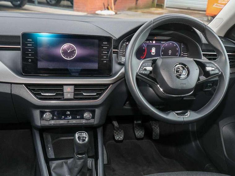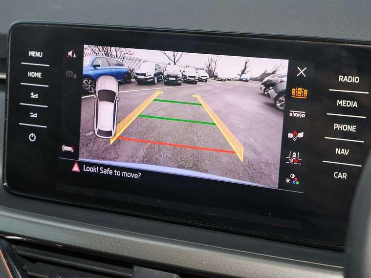 Amundsen satellite navigation with 9.2" glass colour touchscreen with virtual cockpit, web radio, Android Auto, Bluetooth system, Colour multifunction trip computer, eCall emergency system, PAS, Rain and light assist with auto dimming rear view mirror, Rear view camera, Speed limiter, Tailgate, Traffic sign recognition, Virtual cockpit, Voice control system, Wireless SmartLink for Apple Car Play, 2 USB - C ports, 8 loudspeakers, DAB Digital radio, 3rd brake light, Automatic headlamp activation with Coming home and Leaving home feature, Body colour door mirrors and handles, Chrome grille surround, Dimming rear view mirror with black frame, Electric folding door mirrors, Electrically adjustable and heated door mirrors, Front and rear electric windows, Front fog lights with cornering function, LED rear tail lights with dynamic indicators, Privacy glass, Rear side wing doors, Rear wiper, Tinted windows, 12V Accessory socket in centre console, 3 seat bench in 2nd row, Chrome inner door handles, Chrome on gear and handbrake lever, Chrome strip on the dash and door panel, Dual zone climate control, Front head restraints, Glasses storage in roof liner, Instrument cluster with chrome painted decor ring, ISOFIX for rear passenger seat, Leather gearknob and handbrake lever, Manual lumbar support for front seats, Net in centre console, Reading lights for driver and front passenger, Single front passenger seat, Sun visor with make up mirror for front passenger, Textile floor mats, Third rear headrest, Umbrella, 3x3 point rear seatbelts, Curtain airbags, Emergency call and proactive services, Front head and side airbags, Hill hold control, Manual rear child locks, One tone horn, Passenger airbag switch off function, Seat belt reminder for all seats, Alarm, Anti-theft wheel bolts, Keyless entry with start/stop button, Remote central locking with 2 remote folding keys, SAFE function for remote central locking, Latice grey decorative insert with copper hot stamping, Temporary space saver wheel,