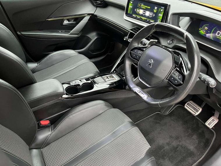 10" Capacitive colour touchscreen with connected 3D navigation, Blind spot monitoring, Bluetooth telephone facility, Driver attention warning, e-Toggle driving selector, Exterior temperature indicator with ice warning, Mirror screen with mirror link, apple carplay and android auto, Multi function trip computer, Peugeot connect SOS and assistance, PEUGEOT i-Cockpit with compact steering wheel, PEUGEOT i-Cockpit with configurable 3D headup instrument panel, Push button start, Smart phone docking station, Speed limit recognition and recommendation, Start/stop system, Visio park assist 180 with colour reversing camera + front and rear parking sensor, 2 front USB socket with USB-C, 2x USB sockets in rear, 6 speakers radio with mp3 compatible, DAB Digital radio, Voice recognition for radio, navigation and telephony features, 2 X Rear number plate lights, Automatic lights, Automatic windscreen wipers, Body coloured exterior door handles, Dark tinted rear side and tailgate windows, Diamond Black roof, Electric front windows + one touch + anti-pinch, Electric rear windows with one touch/anti-pinch, Electrically adjustable, heated and power folding door mirrors, Extended diamond black rear spoiler, Follow me home headlights, Frameless electrochrome interior rear view mirror, Full LED headlights with smartbeam assist, Gloss black finish on B pillar, Gloss black rear cluster connecting strip, Gloss black wheel arch extensions, Gloss black window surround, GT model designation badging on C pillar, GT model designation badging on tailgate, Headlights left on audible warning, LED daytime running lights with 3 claw headlight with distinctive tooth design, LED side indicator lights integrated into door mirrors, LED third brake light, Model designation badges front and rear, Nera black door mirror shells, Peugeot scuff plates, Radiator grille - Dark chrome chequered and gloss black edge trim, Rear bumper with gloss black finish, Rear full LED 3D peugeot signature claw effect lights with daylight function, Rear lower bumper diffuser effect trim in gloss black, Rear reversing lights, Rear side wing doors, Rear windscreen wiper triggered automatically in reverse gear, Roof mounted aerial with fin design, Roof spoiler, Single exhaust tailpipe, Tailgate with heated rear windscreen and wiper blade, Variable front intermittent wipers, 1/3 to 2/3 split folding rear seats, 12V socket, 3 seat bench in 2nd row, 8 Colour personalisable ambient lighting, Aluminium pedals and foot rest, Automatic air conditioning, Automatic gear lever in full grain leather and satin chrome, Driver and front passenger seat manual adjustment in longitudinal and back rest angle, Driver and front passenger seat mechanical height adjustment, Driver and front passenger sport seats, Electric power steering with reach and rake adjustable steering column, Front and rear carpet mats in black with lime green stitch detail, Front centre armrest with storage compartment, Front LED interior light with 2 reading spotlights and rear interior light with timer, High centre console with 2 cup holders, ISOFIX child seat mounting points on passenger seat, Lime green contrast stitching to armrest, front centre console, door panels and dashboard facia, Map pockets on the backs of the front seats, Mistral full grain perforated leather steering wheel with aikinite stitch detail and satin chrome 'GT' emblem, Paddle shifts, Piano keys gloss black plated toggle switches to access main functions of the vehicle, Piano keys gloss black plated toggle switches to access touchscreen functions, Push button finished in black with chrome circle, Rear centre headrest, Roof lining - Mistral black, Seatbelt unfastened on the move audible and visual alert for front and rear seats, Single front passenger seat, 3 rear 3 point seatbelts, ABS (Anti-lock Braking System) with EBD (Electronic Braking Distribution) and EBA (Emergency Braking Assistance), Active safety brake with night function/cyclists/pedestrians, Adaptive driver and front passenger airbags with passenger airbag deactivation function, Child locking functionality on rear doors, Driver/front passenger side airbags, Electric parking brake, ESP with Hill Assist, Front and rear curtain airbags, Front and rear disc brakes, Front optimised safety headrests and 3 x rear retractable headrests with height adjustable, Front three point retractable seatbelts with force limiters, Tyre pressure sensor, Acoustic vehicle alert system (AVAS), Automatic door locking when moving off, Automatic hazard light activation upon heavy brake application, Deadlock, Electronic code immobiliser, Remote central locking, Thatcham cat. 1 alarm with anti lift sensor, Carbon effect Dashboard, front and rear door panel finish, 17" Camden diamond cut two tone alloy wheels, Space saver spare wheel,