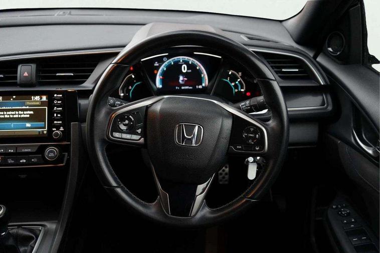 7" touch screen, Adaptive cruise control, Adaptive motion for electric power steering, Apple car play/Android Auto, Blue dashboard illumination, Bluetooth hands free telephone connection, Easy fuel capless refuelling system, Economy mode, Electric power steering wheel with variable gear ratio steering, Emergency stop signalling system, Forward collision warning, Front and rear parking sensors, Honda CONNECT with GARMN Navigation + 7" touchscreen, AM/FM, internet radio, aha app integration and internet browsing, Idle stop, Intelligent speed limiter, Lane departure warning system, Lane keep assist, Multi-information display, Rear parking camera, Road departure mitigation, Traffic sign recognition, Vehicle stability assist, 'Shark fin' mobile antenna, 180w Power audio system, 2x USB and HDMI, 8 speakers, Auxiliary socket for external MP3 player, Digital Audio Broadcast (DAB) Tuner, Steering wheel mounted audio controls, Automatic coming/leaving home lighting function, Automatic headlights with dusk sensor, Automatic rain sensing wipers, Black grille, Body colour door handles, Body coloured bumpers, Chrome window surround, Electric adjustable heated door mirrors, Electric front/rear windows/one touch operation, Electrically folding door mirrors, Fuel filler cap, Halogen front fog lights, Headlight washers, High beam assist, LED daytime running lights, LED Headlights, LED rear lights, Power foldback door mirrors, Privacy glass, Rear spoiler, Rear wiper, Single exhaust tailpipe, 4 Cargo net hook, 60/40 split folding rear seat, Alloy pedals, Ambient light in roof, Blue meter illumination, Centre console storage and sliding armrest, Cloth upholstery, Driver and front passenger seat electric lumbar adjustment, Driver's seat height adjustment, Dual climate control air conditioning system, Front accessory power socket, Front map lights, Front/rear courtesy lights, Gear shift indicator, Glovebox light, Isofix points, Isofix system on outer rear seats, Leather gear knob, Leather steering wheel, Luggage floor box, Passenger seat back pocket, Rear air vents, Rear armrest with cupholder, Sunvisors with illuminated vanity mirrors, Three height adjustable rear head restraints, Tilt/telescopic adjustable steering wheel, Tonneau cover, Trunk light, 5 three point seatbelts, ABS+EBD+Brake assist, Airbags - driver and front passenger, Anti-whiplash front headrests, Collision mitigation braking system, Deflation detection system, Driver SRS airbag (single stage inflation), Electronic parking brake with auto hold, Front and rear curtain airbags, Front and rear seat belt with emergency locking retractor, Front and rear seat belts with emergency locking retractor (ELR), Front seatbelt pretensioners, Front side airbags, Hill start assist, Low speed safety system, Passenger airbag deactivate switch, Tyre pressure warning, Immobiliser, Mirrors and windows key fob, Remote central locking with 2 jack knife keys, Security alarm, Selectable door unlock, Black instrument panel, 17" grey alloy wheels, Tyre repair kit,