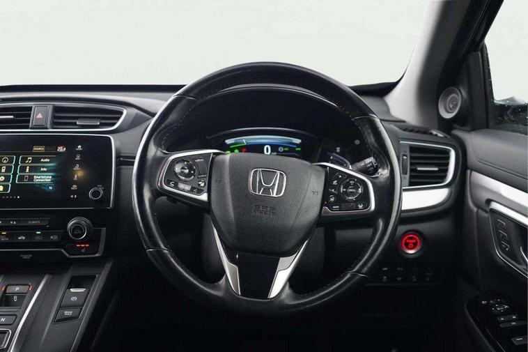 Adaptive cruise control, Agile handling assist, BLIS (Blind Spot Information System) with dual power heated blind spot mirrors, Bluetooth hands free telephone connection, E-call, Economy mode, Electric power steering, Emergency stop signalling system, Forward collision warning, Front parking sensors, Hands free tailgate, Head up Display, Honda CONNECT with GARMIN Navigation + 7" touchscreen, DAB radio, Apple CarPlay, Android Auto, Aha app integration and internet browsing, Intelligent multi info display, Lane departure warning system, Lane keep assist system, Low speed following, Rear parking sensors, Rear view camera, Road departure mitigation, Speed limiter, Traffic sign recognition, Wireless charging, Drive mode (Econ, Sport, EV), Vehicle stability assist, 2 USB sockets in rear, 2x USB sockets in front, 9 speakers, DAB Digital radio, Dashboard centre speaker, Front tweeters, Steering wheel mounted controls, Subwoofer, Aspheric door mirrors, Auto dimming rear view mirror, Auto wipers, Automatic headlights with dusk sensor, Body colour bumpers, Body colour door handles, Body colour door mirrors, Chrome grille, Cornering light, Door mirrors tilt when reversing, Electric front windows/one touch facility, Electric rear windows + one touch facility, Electrically adjustable and heated door mirrors, Electrically retractable door mirrors, Front LED Indicator lights, Front windscreen de-icer, High beam assist, LED daytime running lights, LED front fog lights, LED Headlights, LED rear lights, Panoramic opening glass sunroof, Rain sensor, Rear privacy glass, Rear side wing doors, Rear wiper, Roof rails, Shark fin roof aerial, Tailgate spoiler, Third brake light, Welcome home function, 3 seat bench in 2nd row, 60/40 split folding rear seat, 8 way electrically adjustable drivers seat + mirror memory, Accessory sockets, Ambient interior lighting, Ambient light in roof, AWD emblem rear, Cargo hooks, Courtesy lights, Driver's electric adjustable lumbar support, Driver/passenger front seatback pockets, Driver/passenger sunvisors with illuminated vanity mirrors, Dual zone automatic climate control, Electric lumbar adjustment on passenger's seat, Footwell ambient lighting, Front centre armrest, Front map lights, Front passenger seat height adjust, Heated front seats, Heated rear seats, Heated steering wheel, Hybrid emblem, Illuminated glovebox, Instrument panel with garnish wood film, Isofix child seat preparation, Leather steering wheel, Leather upholstery, Paddle shift controls, Rear air vents, Rear centre armrest, Rear headrests, Rear reading lights, Silver interior door handles, Silver interior panels, Single front passenger seat, Sunglasses holder with mirror, Tilt/telescopic adjustable steering wheel, Tonneau cover, Trunk light, 5 x 3 point seatbelts, ABS/EBD, Anti-whiplash front headrests, Brake assist function, Collision mitigation braking system, Deflation detection system, Driver airbag, Electronic parking brake with auto hold, Front and rear curtain airbags, Front and rear seat belts with emergency locking retractor (ELR), Front centre airbag, Front passenger airbag, Front side airbags, Hill start assist, Manual child lock in rear doors, Passenger airbag deactivate switch, Honda super locks, Immobiliser, Security alarm, Selectable door unlock, Smart entry + Smart start, Ultrasonic security sensor, Tyre repair kit,