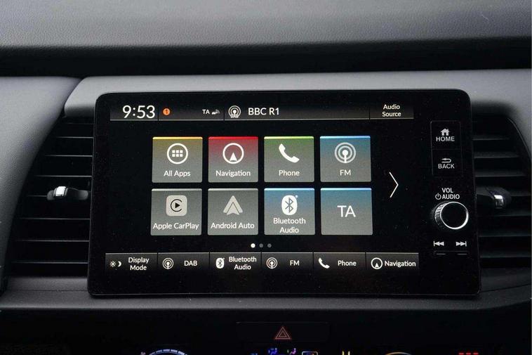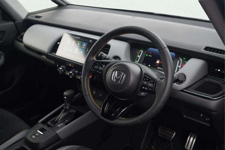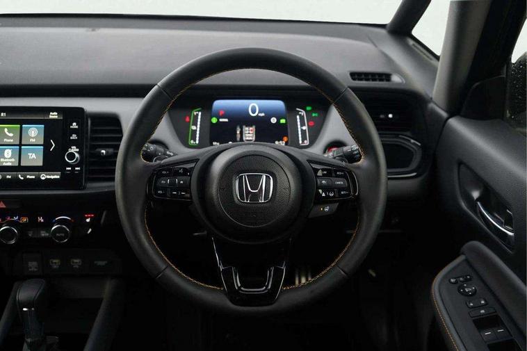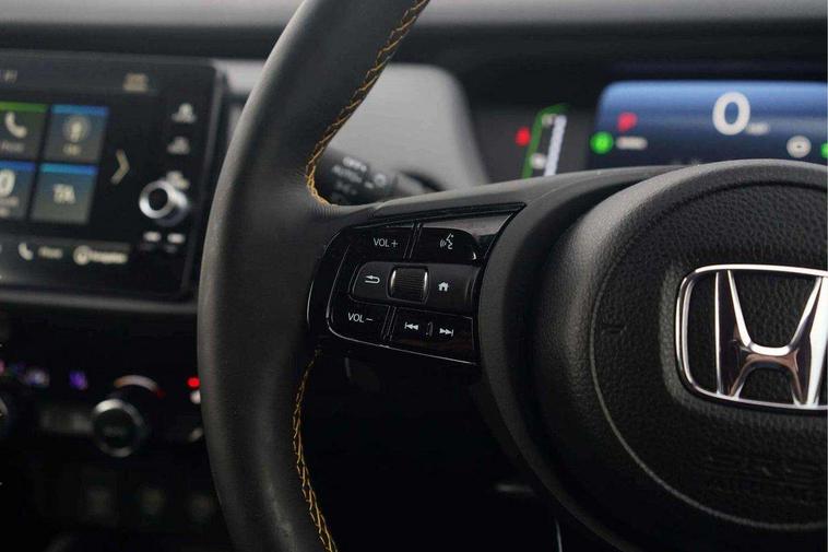 Adaptive cruise control, Adjustable speed limiter, Agile handling assist, BLIS (Blind Spot Information System) with Cross Traffic Monitor, Bluetooth hands free telephone connection, Drive mode (Econ, Sport, Normal), Driver attention monitoring system, eCall emergency call system - ecall functionality is subject to 2G/3G network availability, Electric power steering wheel with variable gear ratio steering, Emergency stop signalling system, Forward collision warning, Front and rear parking sensors, Honda CONNECT with Navigation 9" touchscreen, AM/FM/DAB, Apple Carplay and Android Auto, live traffic info, Idle stop, Intelligent speed limiter, Lane departure warning system, Lane keep assist system, Low speed following, Multi-information display, Rear view camera, Road departure mitigation, Tailgate, Traffic jam assist, Traffic sign recognition, Wireless apple carplay, Vehicle stability assist, 'Shark fin' mobile antenna, 180w Power audio system with 4 speakers, 2 USB-C connectors rear, 2x USB Front socket (1 data & 1 charge), Remote audio controls on steering wheel, Aspheric door mirrors, Auto wipers, Automatic headlights with on/off timer, Coming/leaving home function, Black headlight extension, Body colour door handles, eHEV emblem, Electric adjustable door mirrors, Electrically folding door mirrors, Exclusive styling includes front and rear bumper in gloss black finish, Front and rear electric windows, Heated door mirrors, High beam assist, LED 3rd brake light, LED daytime running lights, LED Headlights, LED rear lights, Manual headlight levelling, Privacy glass, Rear side wing doors, Rear wiper, Single exhaust tailpipe with finisher, Sport grille, 3 seat bench in 2nd row, 60/40 split rear bench seat, Cargo net hooks, Climate control air conditioning, Driver and front passenger seat armrests, Driver and passenger front seat pockets, Driver's seat height adjustment, Fabric/suede leather upholstery, Front accessory power socket, Front head restraints, Front map lights, Front/rear courtesy lights, Heated front seats, Heated steering wheel, Isofix points, Leather 3-spoke steering wheel, Leather gearshift knob, Magic seat flexibility system, Plating interior door handles, Rear head restraints, Single front passenger seat, Sport pedals, Sunvisors with vanity mirrors, Tilt/telescopic adjustable steering wheel, Tonneau cover, Trunk light, Vanity mirror illumination, 3x3 point rear seatbelts, Anti-lock braking system (ABS), Brake assist function, Brake hold function, Child locks on rear doors, Collision mitigation braking system, Deflation warning system, Driver knee airbag, Driver SRS airbag (single stage inflation), Driver/Front Passenger airbags, Electronic parking brake with auto hold, Front and rear seat belt with emergency locking retractor, Front and rear side curtain airbag, Front centre airbag, Front side airbags, Hill start assist, Paddle deceleration control, Passenger SRS airbag cut-off device, Rear side airbags, Regenerative braking system, Whiplash lessening front headrests, Honda super locks, Immobiliser, Mirrors and windows key fob operation, Remote central locking with 2 remote folding keys, Security alarm, Smart entry + Smart start, Soft pad leather interior panels, Tyre repair kit,