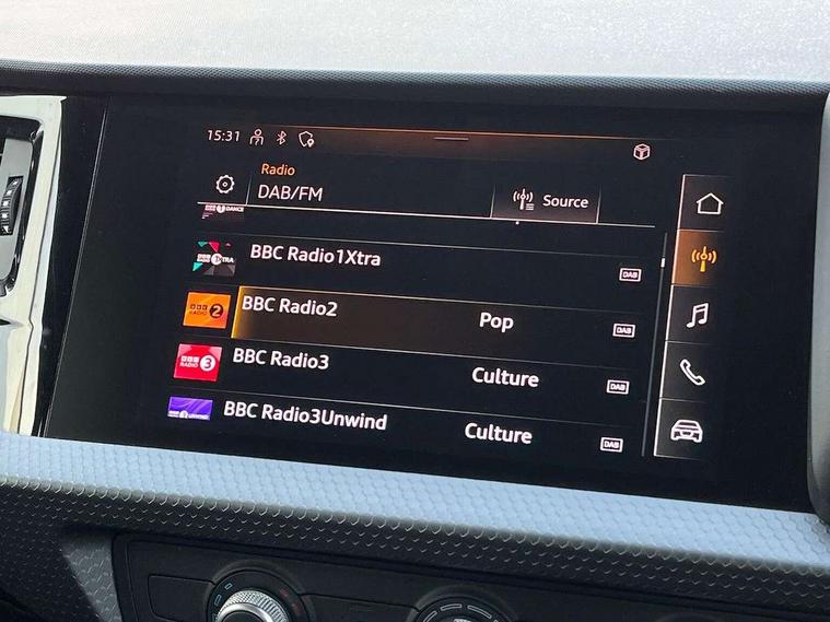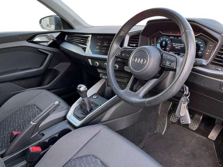 10.25" Digital instrument cluster display classis style instrument dials + speed, odometer, time, outside temperature, telephone menu + fuel level warning, Audi connect safety emergency and service including E-call, Audi drive select - power steering assistance + engine, Audi smartphone interface with connect compatible smartphone via USB directly MMI display + Nav, music, third party apps controlled via MMI controller, Automatic start/stop system, Bluetooth interface, Cruise control, Driver's information system, Electromechanical power steering, Emergency services call system, Lane departure warning system, Service interval indicator, Speed limiter, Voice control system, Washer fluid level indicator, Dynamic suspension, 1 x SDXC card reader, 2 x USB type C connection points, DAB Digital radio, MMI radio plus with 8.8" colour MMI display screen and MMI touch, Auto dimming rear view mirror, Body coloured bumpers, Body coloured door mirrors, Electric front and rear windows, Electrically adjustable, heated, folding door mirrors with integrated LED side indicator, Front side air inlets in grained matt black and C frame in titanium black, Heat insulating glass windscreen and side windows, Heated rear windscreen, High level LED brake light, LED headlights with LED rear lights + dynamic rear indicators + headlight adjustment and high beam, turning light + LED daytime running lights, Radiator grille and rear diffuser in matt titanium black, Radiator protective grille frame in matt aluminium silver, Rain and light sensors, Rear fog lights, Rear side wing doors, Rear wing door, Rear wiper, Side front spoiler lips in grained matt black, 12V socket in centre console with two cup holders, 3 rear seats with headrests, 3 seat bench in 2nd row, 40:60 Split folding rear seat or folded fully, Door sill trims with aluminium inlay, Driver and passenger seat with manual height adjust with forward and backwards adjustment, Front head restraints, Front passenger seat, Front/rear floor mats, Height and reach adjustable steering wheel, ISOFIX child seat mounting for front passenger and outer rear seats including top tether attachment point of outer rear seats, Leather gear knob with aluminium trim, Leatherette handbrake grip, Luggage compartment light with front and rear reading lights, Manually adjustable lumbar support in front seats, Novum cloth upholstery with front sport seats, Titanium grey cloth headlining, Luggage compartment pack - A1, 3x3 point rear seatbelts, Audi pre-sense front with pedestrain and cyclist recognition, Brake assist function, Driver and front passenger airbag with front side and head airbags, Electronic Stability Control including ABS, EBD, ASR and EDL, Front passenger airbag deactivation switch, Hill hold assist, Manual rear child locks, Seatbelt height adjustment for front seats, Seatbelt monitoring, Tyre pressure warning light, Warning triangle and first aid kit, Anti theft alarm, Anti theft wheel bolts and loose wheel warning, Immobiliser, Remote central locking with 2 foldaway keys, Aluminium trim for control switches, air vents and digital instrument cluster, Silver grey accent areas including air vents, door handle recesses and centre console in diamond paint finish, Slate grey inlays polygon structure in fine paint finish,