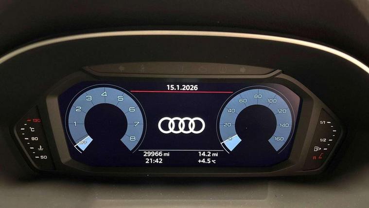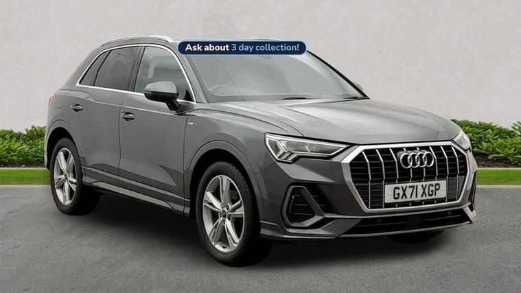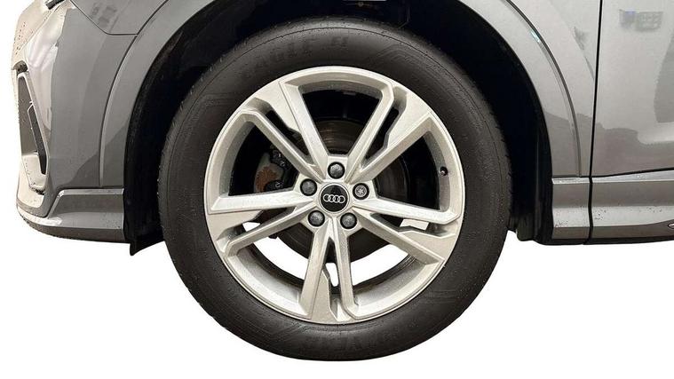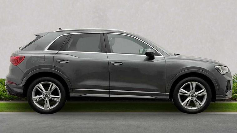 Amazon alexa Integration, Audi connect safety and service (e-call), Audi drive select, Audi lane departure warning, Audi Virtual Cockpit - 10.25" display, Bluetooth interface, Camera based traffic sign recognition, MMI Navigation Plus with high resolution 10.1 inch touchscreen colour display, Power operated tailgate, Progressive steering, Service interval indicator, Smartphone interface includes wireless Apple carplay/Android Auto, Start stop system with recuperation, Voice control system with natural language interaction, 48V Mild hybrid technology, Sports suspension, 2 USB-C ports with charge and data functions, 6 passive loudspeakers, DAB digital radio module, Acoustic windscreen, Aluminium roof rails, Aluminium window trim, Auto dimming frameless rear view mirror, Body coloured bumpers, Electrically folding, adjustable and heated door mirrors with integrated LED side indicators and kerb view function for passenger side, Front and rear electric windows, Front fog lights, Front side air inlets in matt platinum grey, Front spoiler blade in matt platinum grey, Grille vertical bars in aluminium silver/Matt, High gloss black finish B and C pillars, LED headlights with LED daytime running lights and dynamic rear indicator, LED rear lights, Privacy glass dark tinted rear and rear-side windows (from B-pillar backwards), Rain and light sensors, Rear diffuser strip in matt titanium black, S line badges on front wings, S Line front and rear bumpers, Side skirt insert in matt Platinium grey, Silver chrome grille surround, Titanium black radiator grille, 12V socket in rear centre console, 40:20:40 folding with manual adjustment for 60:40 forwards/backwards position and backrest angle, Adjustable rear seat bench/backrest with centre armrest and cupholder, Black cloth headlining, Dual zone electronic climate control, Front and rear black floor mats with contrast stitching in rock grey, Front and rear headrests, Front and rear roof module including reading lights, Front centre armrest, Glove compartment lighting, Height and reach adjustable steering wheel, Illuminated door sill trims with S logo, ISOFIX child seat mounting for front passenger with airbag deactivation and outer rear seat including top tether attachment point for outer rear seats, Luggage compartment light, Manual front seats with height adjustment, Perforated leather gearknob, Stainless steel luggage compartment sill finisher, Stainless steel pedals, Non smoking pack - Q3, 3x3 point rear seatbelts, 6 airbags - Driver, front passenger, curtain and side windows, Audi pre-sense front with pedestrain and cyclist recognition, Electrically operated child locks on rear doors, Electromechanical parking brake, Electronic stabilisation control including ABS, ASR and EDL, Hill descent control, Hill hold assist, Pre sense basic, Seatbelt monitoring, Tyre pressure warning, Warning triangle and first aid kit, Anti theft alarm, Anti theft wheel bolts, Remote central locking, Dark matt brushed aluminium inlay, Detail dashboard around MMI touch colour display in glass look, black with surround in aluminium look, Leatherette door armrest, Tool kit, Tyre repair kit,