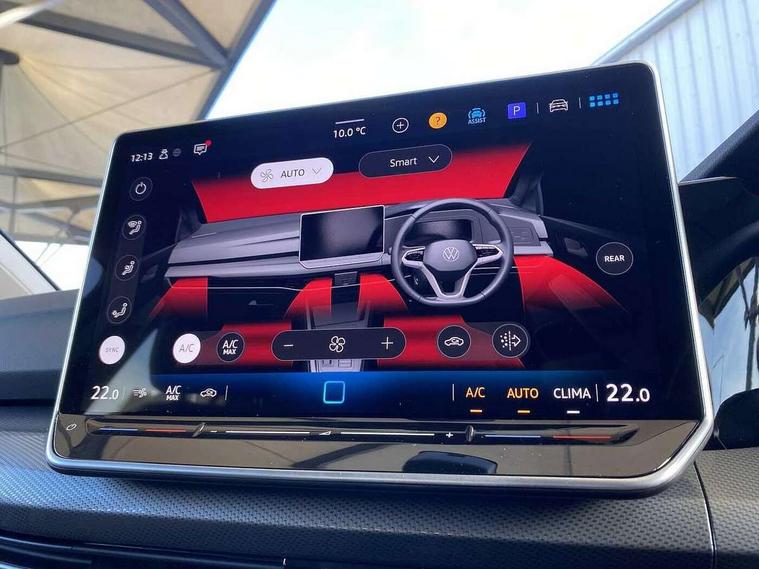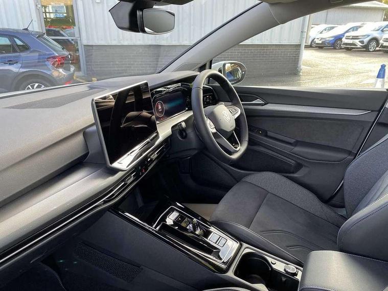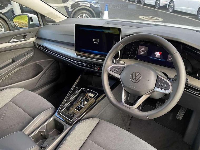 Activated carbon canister, Adaptive cruise control (ACC), Advanced driver attention and drowsiness monitor, Dynamic road sign display, E-Sim card for online connectivity, eCall emergency call system, Multi-color Digital cockpit pro, selection of different info profile possible, Multifunction front facing camera for distance control, Navigation system, Oncoming vehicle braking when turning including swerve support, Side assist blind spot lane change system, rear traffic alert and exit warning system, Speed limiter, Speedo, rev counter, electronic odometer, trip, service interval display, exterior temperature and fuel gauge, Traffic jam assist, Voice enhancer and voice control, Warning signal and warning light for front and rear seatbelts not fastened, We connect plus preparation, We connect preparation, Wireless app connect, Hybrid propulsion system, Petrol Particulate Filter, Start-stop system with battery regeneration (recuperation - energy recovery during braking), XDS electronic differential lock for improved traction and handling, 2 USB C ports in front, 2 USB charging sockets on the centre console in the rear charging capacity upto 45W, Digital radio reception (DAB), Diversity antenna for FM reception, Gaming platform via car app, Infotainment system with 12.9" display, Mobile phone interface with inductive charging feature, 3rd brake light, Automatic headlamp activation with Coming home and Leaving home feature, Body colour bumpers, Body colour door handles, Body colour door mirrors, Chrome trimmed front air intake surrounds, Chrome trims on the side window bottom, Exterior mirrors convex on the left and aspherical on the right, Front and rear electric windows, Heat insulating windshield made of laminated glass, LED separate daytime running light, Rear exhaust tailpipe, Rear fog light on one side and reversing lights on both sides, Rear side wing doors, Rear windscreen washer and wiper with interval delay, Remote electrically foldable door mirrors, puddle lights and reverse activated passenger's door mirror, Welcome light with surround lighting, 12V socket in front centre console, 12V socket in luggage compartment, 3 rear head restraints, 3 seat bench in 2nd row, Air care climatronic 3 Zone automatic climate control with rear air conditioning control panel, Ambient lighting with 30 colour including LED light unit in front footwell with selectable light colour, Art velours cloth upholstery, Chrome plated radiator grille inserts, air vent surrounds and light switch surrounds, Door insert, side trim panel and arm support in leatherette, Front + rear black carpet mats, Front centre armrest, Front head restraints, Front seat lumbar support adjuster, ISOFIX anchors for child seats on outer rear bench seats and on front passanger seat compatible for i-Size, Luggage compartment lighting, Manual height adjustable front passenger seat, Manually height adjustable driver seat, Plastic gear knob, Rear cupholder and loadthough, Single front passenger seat, Soul black instrument panel, Split folding backrest with centre armrest and unsplit rear seat bench, Sports comfort seats in front, Standard pedal cluster, Storm grey roof lining, Sun visors with illuminated vanity mirrors, Driver assistance pack - Golf Estate/Hatchback Auto, 3 point height adj front seatbelts + pretensioners, 3 rear three point seatbelts, ABS, Autonomous emergency braking front assist with pedestrian and cyclist monitoring, Child locks on rear doors, Driver and front passenger airbag with front passenger airbag deactivation, Electronic parking brake with auto hold, ESC (Electronic Stability Control), Extended pedestrian protection measures, Hill start assist, Rear disc brakes, Two tone horn, Tyre pressure loss indicator, Volkswagen roadside assistance, Anti theft wheel bolts, Preparation for alcohol interlock, New brushed dark metal decorative inserts for dashboard and front door panels,