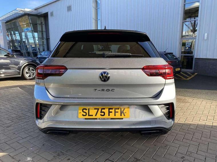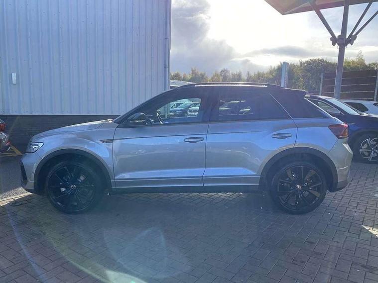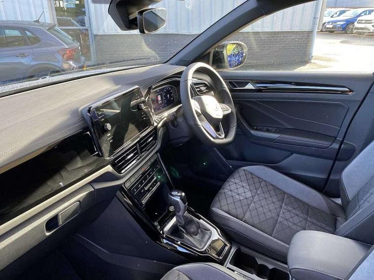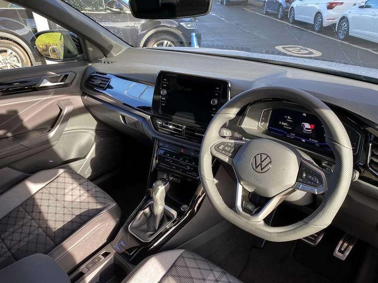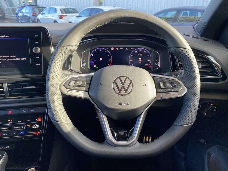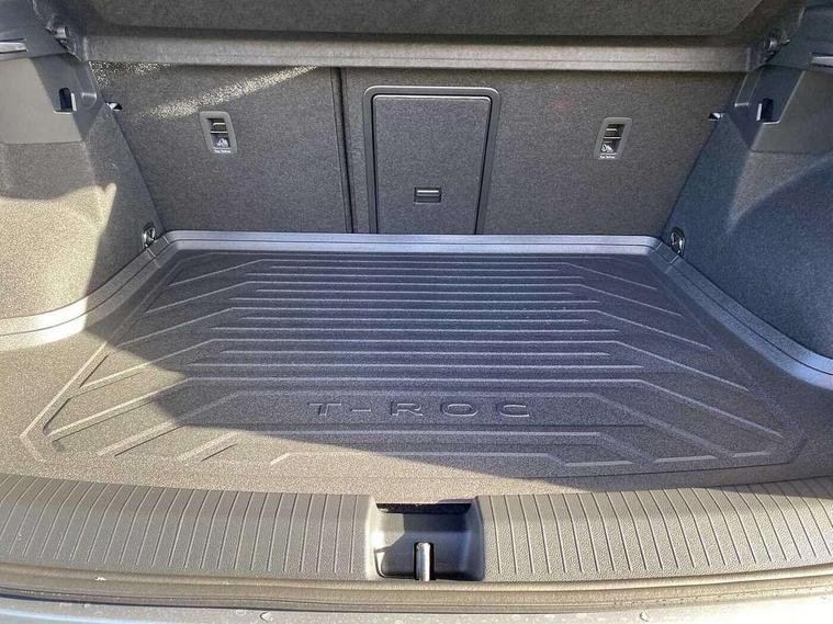 10.25" Digital cockpit pro, Advanced driver attention and drowsiness monitor, Emergency call service, Lane keeping system Lane Assist, Mobile phone interface, Modified key software - reduce switch off time for key status change to Long no motion, Online services, Park assist including front and rear parking sensors, Power assisted speed sensitive steering, Rear view camera, Service interval indicator, Tailgate/trunk lid release from outside, Think blue trainer driver tips and journey analysis, Warning sound and light for front seatbelts unfastened, Wireless app connect, Battery regeneration during braking, Rear shock absorption chassis with increased ride height, Start/stop function with battery regeneration, DAB Digital radio, Diversity antenna for FM reception, Music playback - MP3, WMA and AAC files, SD card slot, Simultaneous pairing of 2 compatible mobile devices, Title and cover art display, We Connect and We Connect Plus functionality, Advanced dynamic light assist for LED matrix headlights, Auto dimming interior rear view mirror, Automatic hazard lights activation under emergency braking, Black roof rails, Dynamic cornering light, Dynamic headlight range control with self adjusting whilst driving, Electrically adjustable and heated door mirrors, Extended roof spoiler, Exterior ambient lighting, Exterior mirrors aspherical on driver side, convex on front passenger side, External USB type C socket and charging sockets, Front windscreen wiper with intermittent wipe and 4 position delay, Heated rear window, Illuminated front grille, IQ LED matrix headlights, LED 3rd brake light, LED rear number plate lights, LED rear tail lights with dynamic turn signal, LED separate daytime running light, Light mode for poor weather, rain, fog or snow, Power windows with comfort operation and circuit breaker, Privacy glass for rear side windows and rear window, R-Line design body coloured bumpers, Rain sensor, Rear exhaust tailpipe, Rear fog light on one side and reversing lights on both sides, Rear side wing doors, Rear wash/wipe with intermittent wipe setting, Remote electrically foldable door mirrors, puddle lights and reverse activated passenger's door mirror, Tilting and sliding panoramic sunroof with rear panoramic sunroof, 12V power socket in centre console, 3 rear head restraints, 3 seat bench in 2nd row, 4 load lashing points in luggage compartment, Air care climatronic air conditoning system with active combination filter and 2-zone temperature control, Chrome plated radiator grille inserts, air vent surrounds and light switch surrounds, Door and side trim panel with leatherette insert, Drawer under drivers seat, Front + rear carpet mats, Front centre armrest, Front comfort sports seats, Front cupholders x 2, Front footwell illumination, Front reading light, Front scuff plates with R Line logo, Front seat back storage pockets, Glove compartment door with light, Instrument lighting, white adjustable panel illumination, Interior ambient lighting and surround lighting, Interior light delay, Isofix child seat preparation, Leather gearshift handle, Load-through provision with cup holder when folded down ('Unsplit rear seat bench, split folding backrest, with centre armrest), Luggage compartment lighting, Non-folding front passenger seat backrest, Single front passenger seat, Stainless steel pedals, Storage compartment in left and right luggage area, Storage compartment in rear doors, Storage compartments in driver and front passenger doors, Sunvisors with illuminated vanity mirrors, Variable boot floor, height adjustable and removable, Black design pack - T-Roc black edition plus, Easy open package with safelock - T-Roc, Sport pack with sports suspension - T-Roc, 3 point height adj front seatbelts + pretensioners, 3 point seatbelts in outer rear with ECE label, ABS, Child locks on rear doors, City emergency braking and pedestrian monitoring, Driver and front passenger airbag with front passenger airbag deactivation, Driver and front passenger safety-optimised head restraints, Drivers seatbelt reminder, Electronic parking brake, Electronic Stability Control (ESC) inc EDL (Electronic Differential Lock) and ASR (Traction Control), Front and rear passengers curtain airbag system including front side airbags, Front disc brakes, Hill start assist, Predictive pedestrian protection, Rear disc brakes, Two tone horn, Tyre pressure loss indicator, Volkswagen roadside assistance, Keyless locking and starting system keyless access with safelock, Gloss deep iron dash trim, 19" Misano black diamond turned alloy wheels with low rolling resistance and anti theft wheel bolts, Tool kit, Trims for alloy wheels, Tyre mobility kit including compressor and sealing foam,