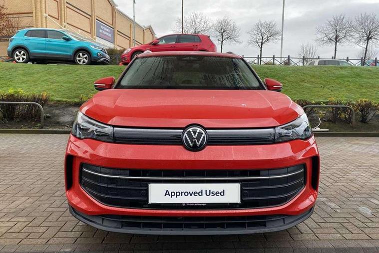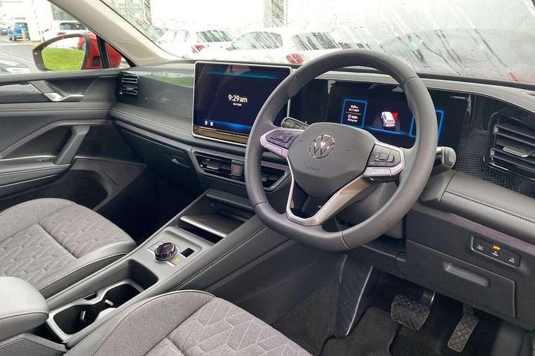 Adaptive cruise control (ACC), Advanced driver attention and drowsiness monitor, Bluetooth mobile phone interface, Car2X technology, Digital Cockpit Pro - 10.25" high resolution dash display screen with customisable menus and information, Dynamic road sign display, E-Sim card for online connectivity, eCall emergency call service, Front Assist - Autonomous emergency braking with pedestrian and cyclist monitoring, Lane change system, Side assist, Rear traffic alert and Exit warning system, Lane keeping system Lane Assist, Oncoming vehicle braking when turning including swerve support, Park assistance plus with front and rear parking sensors, Power assisted steering with speed sensitive, Start/stop system with regenerative braking, Warning signal and warning light for front and rear seatbelts not fastened, Wireless App-Connect, Adaptive chassis control DCC pro includes driving mode selection, Charging cable Mode 3 Type 2 / 3 (16A), Front shock absorption, Front wheel drive, Rear shock absorption, Digital radio reception (DAB), Diversity antenna for FM reception, Auto dimming interior rear view mirror, Automatic headlight control system, Body coloured bumpers and air intake with chrome trim, Body coloured door handles, Body-coloured exterior mirror housings, Coming/leaving home lighting function, Heat insulating glass in side and rear windows, Heat insulating windshield, Heated rear window, High level 3rd brake light, Illuminated door handle recesses, Illuminated lightline between headlamps, Puddle lights and reverse activated passengers door mirror, Rain sensor windscreen wipers, Rear fog light on one side, reversing light on both sides, Rear side wing doors, Rear wiper, 12V outlet in center console rear and in luggage compartment, 12V socket in centre console, 3 bench rear seats in 2nd row, Air care climatronic 3 zone air conditioning system with rear air conditioning control panel, Carpet mats, front and rear, Ceramique headlining, Door and side trim panel in foam film and woven fabric, Front centre armrest, ISOFIX anchors for child seats on outer rear seats and front passenger seat compatible with i-Size, Mechanical rear seat release, Power adjustable lumbar support in front, Rear bench seat, split folding, longitudinally movable and folding with load-through hatch and centre armrest, Safety optimised front head restraints, Single front passenger seat, Sun visors with illuminated vanity mirrors, Three rear head restraints, Variable luggage compartment floor, Comfort package with park assist plus and Safelock - Tiguan, Design package - Tiguan Life/Match, 3 point seat belt for centre rear seats, 3 Point seat belts in front with pretensioners, 3 point seatbelts in outer rear with ECE label, Driver and front passenger airbag with front passenger airbag deactivation, Electronic parking brake with auto hold, Front and rear curtain airbags, Front and rear side airbags, Front centre airbag, Front disc brakes, Hill start assist, Manual child proof rear door locks, Rear disc brakes, Two tone horn, Warning triangle, Soul instrument panel, Tyre mobility kit including compressor and sealing foam,