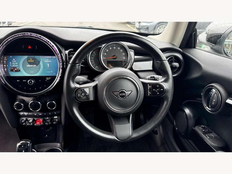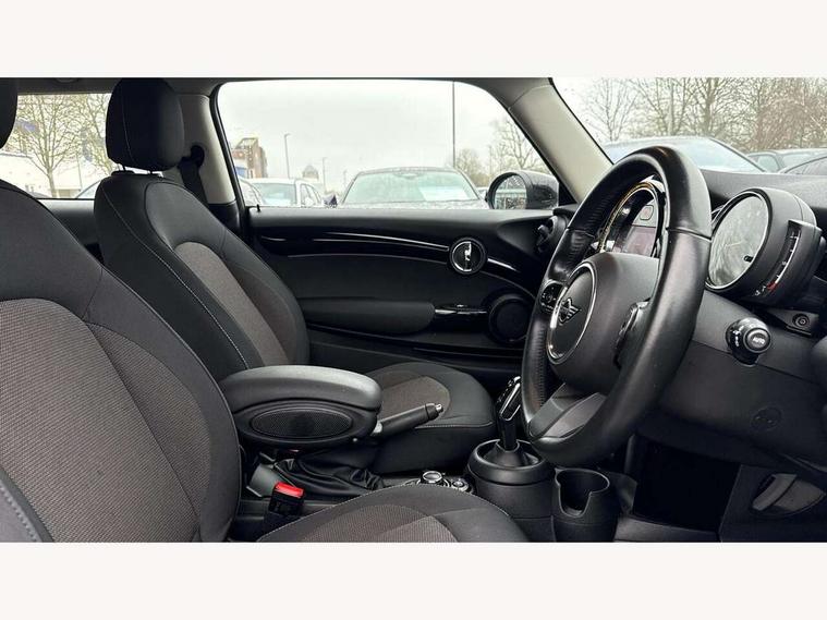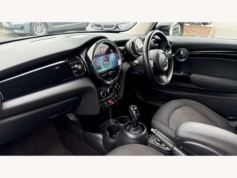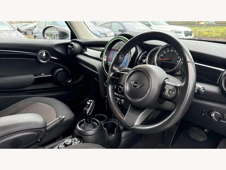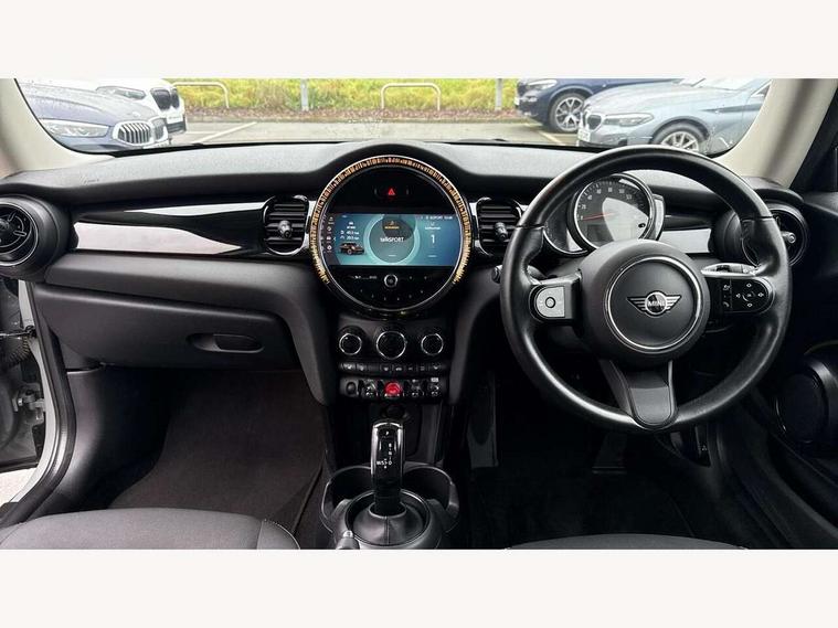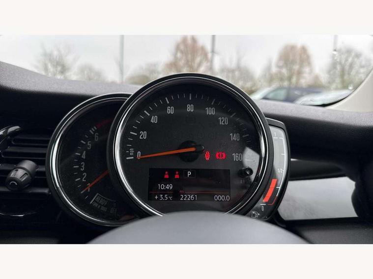 Apple CarPlay, Automatic start/stop function with brake energy recuperation, Compatible mobile phone bluetooth with audio streaming, Cruise control with brake assist, Electro-mechanical speed dependant steering assistance, Flexible car sharing preparation, Instrument cluster, Mini E-call, MINI TeleServices, On board computer, Service interval indicator, Double Vanos system, Fully variable valve control, High precision injection, Performance Control, Steptronic transmission with double clutch, 8.8" touchscreen with LED ring, FM tuner and DAB digital radio, 3rd brake light, Automatic headlight activation switch, Body colour fuel filler cap, Chrome border high gloss black slats radiator grille, Dynamic brake lights, Electric front windows, Exhaust tailpipe on left with chrome finisher, Heated rear window, Heated windscreen washer jets, LED headlight with closed ring and daytime driving lights, Metal door sill strips with MINI imprint, Model logo Cooper on right of tailgate, Rain sensor window wipers, Rear fog lights, Rear LED lights with union jack design, Rear window wiper, Side scuttle panel with integrated indicator, Sun/heat protection glass, White indicator lenses, 12V Accessory socket in centre console, 2 seat bench in 2nd row, 4 lashing eyes in luggage compartment, 60/40 split folding rear seat, Ambient lighting, Carbon black colour line - Knee roll and door armrest, Chrome interior highlights, Cupholders, Front and rear head restraints, Front and rear isofix with front passenger airbag deactivation, Front floor mats in velour, Glove compartment, Height and length steering column adjustment, Interior lighting with 12 different colours across the dashboard, underneath door bezel with illuminated laser-engraved design on central display, Leatherette gearshift lever and handbrake gaiters, LED reading lights, vanity mirror lights, front foot well light and spotlight on front seats, Manual air conditioning, Mechanical seat adjustment - forward/back & backrest for front seats and driver seat height adjust, Multifunction steering wheel, Passenger seat height adjuster, Satellite grey headlining including grab handles and clothes hooks, Single front passenger seat, Sport leather steering wheel with speed limiter and audio/communication controls, Storage compartments in doors, Sunvisors with vanity mirrors, 3 point seatbelts on all four seats, 6 Airbags - front, side, head and seat belt tensioners, Anti-lock braking system (ABS), DSC - Dynamic Stability Control, Front and rear disc brakes, Single tone fanfare horn, Tyre pressure monitoring system, Alarm system with tilt sensor, monitoring doors, bonnet interior and tailgate, Electronic vehicle immobiliser, Start/stop toggle with keyless go, Piano black interior trim, Tool kit, Tyre repair kit,