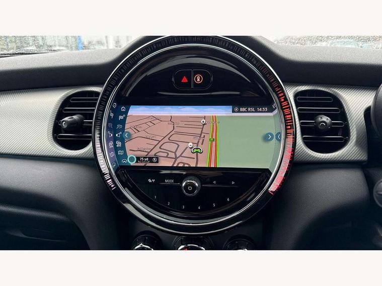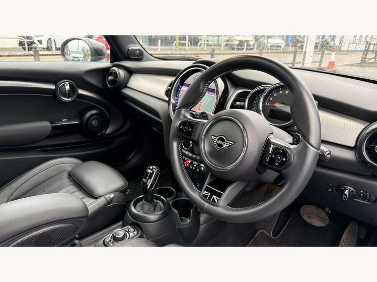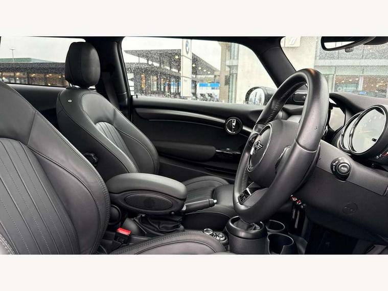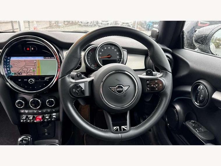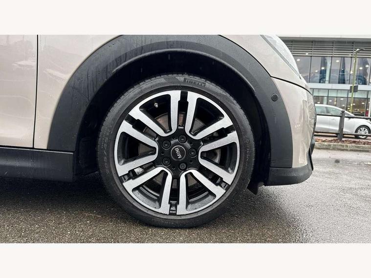 Apple CarPlay, Automatic start/stop function with brake energy recuperation, Compatible mobile phone bluetooth with audio streaming, Cruise control with brake assist, Electro-mechanical speed dependant steering assistance, Flexible car sharing preparation, Instrument cluster, MINI Driving Modes - centre toggle switch to control driving setting (sport, mid and green), Mini E-call, MINI TeleServices, On board computer, Rear park distance control, Service interval indicator, Double Vanos system, Fully variable valve control, High precision injection, Performance Control, Steptronic sport transmission with double clutch and steering wheel paddles, 8.8" touchscreen with LED ring, FM tuner and DAB digital radio, 3rd brake light, Automatic headlight activation switch, Bonnet scoop, Chrome line exterior - radiator grille bars, tailgate handle, lower front grille grating and rear central fog-light, Dynamic brake lights, Electric front windows, Heated rear window, Heated windscreen washer jets, LED headlight with closed ring and daytime driving lights, Metal door sill strips with Cooper S, Model logo Cooper S on right of tailgate, Rain sensor window wipers, Rear fog lights, Rear LED lights with union jack design, Rear window wiper, Side scuttle panel with integrated indicator, Sun/heat protection glass, White indicator lenses, 12V Accessory socket in centre console, 2 seat bench in 2nd row, 4 lashing eyes in luggage compartment, 60/40 split folding rear seat, Carbon black colour line - Knee roll and door armrest, Chrome interior highlights, Chrome line interior - air vents, gear lever base, door handles and speakers in doors, Cupholders, Front and rear head restraints, Front and rear isofix with front passenger airbag deactivation, Front floor mats in velour, Glove compartment, Height and length steering column adjustment, Interior lighting with 12 different colours across the dashboard, underneath door bezel with illuminated laser-engraved design on central display, Leatherette gearshift lever and handbrake gaiters, LED reading lights, vanity mirror lights, front foot well light and spotlight on front seats, Manual air conditioning, Mechanical seat adjustment - forward/back & backrest for front seats and driver seat height adjust, MINI yours badge on exterior pillar, Multifunction steering wheel, Passenger seat height adjuster, Satellite grey headlining including grab handles and clothes hooks, Single front passenger seat, Storage compartments in doors, Storage pocket on back of front seats, Sunvisors with vanity mirrors, Walknappa leather steering wheel with grey seam and MINI Yours badge on Piano Black lower steering wheel spoke, 3 point seatbelts on all four seats, 6 Airbags - front, side, head and seat belt tensioners, Anti-lock braking system (ABS), DSC - Dynamic Stability Control, Front and rear disc brakes, Two tone horn, Tyre pressure monitoring system, Alarm system with tilt sensor, monitoring doors, bonnet interior and tailgate, Electronic vehicle immobiliser, Start/stop toggle with keyless go, Tool kit,