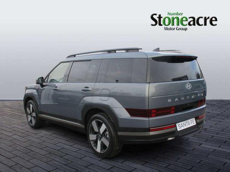 12.3" touchscreen satellite navigation, media centre and google places, Blind spot collision avoidance assist (BCA), Blind spot view monitor (BVM), Bluelink and Wireless Apple Carplay/Android Auto, Bluetooth connectivity with voice recognition, Digital key 2.0, Drive mode selector, Driver status monitor (DSM), Dual wireless phone charging pad, Emergency services call system, Forward collision avoidance assist (FCA 2.0), Front and rear parking sensors, Head up Display, Highway drive assist 2 (HDA 2), Intelligent speed limit assist (ISLA), Lane departure warning system (LDW), Lane Follow Assist 2 (LFA 2), Lane keeping assist (LKA), Low washer fluid warning, Over the air software updates (OTA), Parking Collision Avoidance Assist-Reverse (PCA-R), Power assisted steering, Rear view monitor, Remote smart parking assist, Safe exist assist (SEA), Smart adaptive cruise control with speed control, Smart electric tailgate with hand's free opening function, Surround view monitor, Self levelling suspension, Shift by Wire Gear Selector (SBW), 12.3" Touchscreen display with satellite navigation, 2nd Row USB C Ports x2 Charging, 3rd Row USB C Ports x2 Charging, Front USB C port 1 charging and 1 data/charging, Premium BOSE sound system, Steering wheel audio, phone and cruise controls, Automatic dimming rear view mirror, Automatic headlights with dusk sensor, Automatic windscreen wipers with rain sensor, Body colour bumpers, Dual glass electric tilt and slide sunroof, Dynamic welcome lights, Electric adjustable/heated/auto power folding door mirrors, Front and rear electric windows, Heated rear window, Hidden rear wiper, High beam assist, LED daytime running lights, LED Headlights, LED indicator lights, LED indicators in door mirrors, LED positioning lights, LED taillights, LED third brake light, Manual rear door blinds, Rear side wing doors, Rear windows and tailgate privacy glass, Roof rails, Solar glass windscreen and front windows, Windscreen acoustic film, Windscreen auto defog function, 3rd row head restraints, Dual zone climate control air conditioning, Electrically adjustable front seats with electric lumbar support, Front head restraints, Front seats with memory, Heated front seats, Heated rear seats, Heated steering wheel, Height and reach electrically adjustable steering column, Leather upholstery, LED interior ambient lighting, Luggage cover, Luggage hooks, Luggage net, Rear head restraints, Single front passenger seat, Split folding (50/50) third row seats, Split folding (60/40), sliding and reclining second row seats, Sun Visors with driver and passenger illuminated vanity mirrors, Two front cup holders, Ventilated front seats, Trailer wiring pack - Santa Fe, 3 point seatbelts on all seats, Adjustable regenerative braking paddle shifters, Airbag - Front, front side, curtain and centre front airbags, Anti-lock brake system (ABS), Dynamic brake control, Electric parking brake with auto hold function, Electronic Stability Control (ESC), Hill start assist control (HAC), Manual child lock in rear doors, TSA (Trailer Stability Assist), Tyre pressure monitoring system, Immobiliser, Smart Key - Keyless entry with Power On/Off button, 20" Standard silver alloy wheels, Tyre mobility kit,