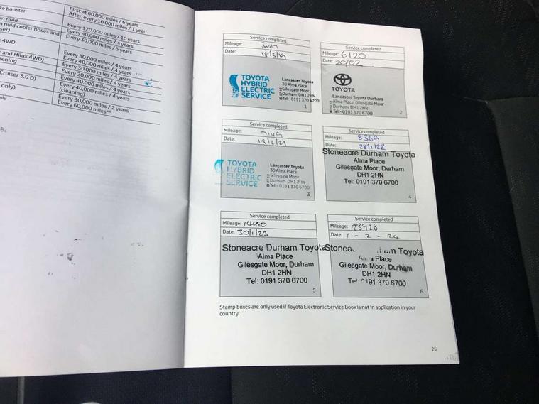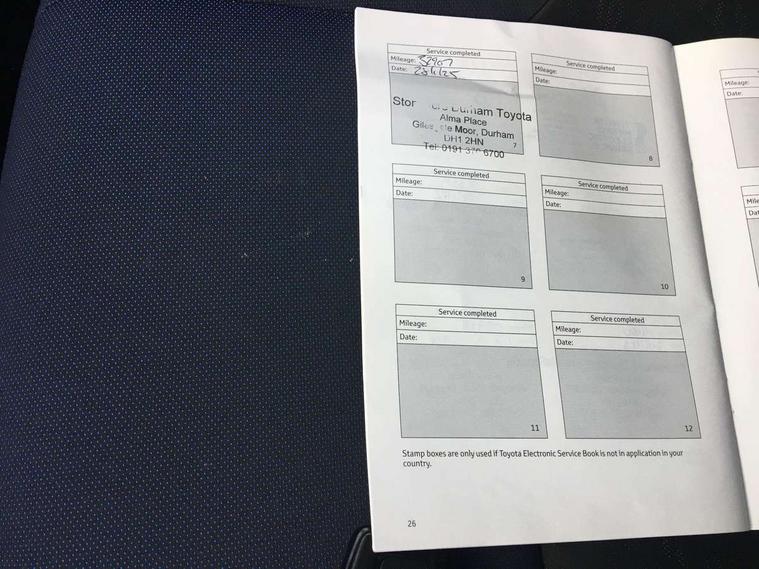 Tyre repair kit, Alarm, Immobiliser, Remote central locking, Smart entry, Auxiliary input socket, DAB Digital radio, Steering wheel mounted controls, USB connection, 3x3 point rear seatbelts, ABS+EBD+Brake assist, Airbag deactivation switch, Driver/Front Passenger airbags, Driver/front passenger side airbags, Drivers knee airbag, ESP + traction control, Front and rear curtain airbags, Hill start assist control (HAC), Rear child proof door locks, Road sign information display, Tyre pressure monitoring system, Auto dimming rear view mirror, Auto high beam, Automatic headlight levelling, Bi-tone black roof, Body colour door handles, Body colour heated door mirrors, Body coloured bumpers, Electric door mirrors, Electric folding door mirrors, Follow me home headlights, Front and rear electric windows, Heated rear windscreen, LED daytime running lights, LED front fog lights, LED Headlights, LED rear lights, Privacy glass, Rain sensitive windscreen wipers, Rear spoiler, Rear wiper, Shark fin roof aerial, 12V Accessory socket, Child seat anchorage points, Chrome interior door handles, Cloth upholstery, Driver/passenger sunvisors and illuminated vanity mirrors, Dual zone automatic air conditioning, Folding rear seats, Front and rear door pockets, Front centre armrest, Front cupholders x 2, Front head restraints, Heated front seats, Height adjustable drivers seat, Illuminated door sills, Illuminated entry system, Leather gear knob, Lumbar support, Nappa leather steering wheel, Rear headrests, Tilt/telescopic steering column, 4.2" Colour TFT driver information display, Adaptive cruise control, Bluetooth system, Collision prevention assist, Intelligent parking assist with front, rear and side parking sensors, Lane change assist and blind spot monitor, Lane departure warning system, Lights on warning, PAS, Push button starter, Rear cross traffic alert, Reversing camera, Touch 2 Go navigation system, Traffic sign recognition, Trip computer, Vehicle Stability Control (VSC),