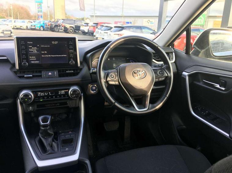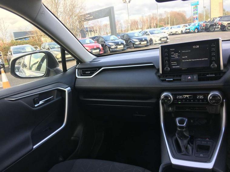 7" colour TFT display, Adaptive cruise control with lane trace assist, Apple car play and Android auto, Bluetooth system, Cyclist Detection, Drive mode selector, eCall emergency call system, ECO-driving indicator, Electric power steering, EV audible alert, Hybrid system indicator, Lane departure warning system, Lights on warning, Night Time Pedestrian Detection, Pedestrial detection, Push button start, Rear parking camera, Rear parking sensors, Tachometer, Traffic sign recognition, Trip computer, Vehicle Stability Control (VSC), 6 speakers, 8" Multimedia display touch screen, Auxiliary socket for external MP3 player, DAB audio, Steering wheel mounted audio controls, Toyota touch media system, USB connection, Auto dimming interior mirror, Auto high beam, Automatic headlamp levelling, Automatic headlights, Automatically retractable door mirrors, Black roof rails, Body colour door handles, Body colour door mirrors, Body colour rear spoiler, Body coloured bumpers, Body coloured Shark-fin antenna, Electric adjustable door mirrors, Emergency brake-light signal (EBS), Follow me home headlights, Front fog lights, Headlight cleaners, Heated door mirrors, LED daytime running lights, LED High mounted stop lamp, LED rear lights, Meshed shape upper front grille, Parabola LED headlights, Power front windows, Power rear windows, Privacy glass, Rear screen wiper - intermittent, Rear windscreen defogger, Silver front under-run, Silver rear under-run, Trailer sway control, Turning signal integrated indicators in door mirrors, 3 rear headrests, 60/40 split fold rear seat back, Boot light, Clean air filter, Cloth upholstery, Driver and front passenger personal light, Driver and front passenger Whiplash Injury Lessening seats, Driver and passenger sunvisors with illuminated vanity mirrors, Dual sided deck board in boot, Dual zone automatic air conditioning, Floor mats, Folding rear centre armrest, Front and rear bottle holders, Front centre armrest, Front footwell lights, Front headrests, Front/rear roof mounted assist grips, Grey roof lining, Isofix child seat preparation, Leather gear shift with chrome surround, Manual telescopic and tilt 3-spoke leather steering wheel with Chrome insert, Manually height-adjustable sliding and reclining driver seat, Manually reclining and sliding front passenger seat, Pollen filter, Rear coat hooks, Rear door armrests, Rear passenger air vents, Reclining rear seats, Satin chrome interior door handles, Sunglasses holder, 3x3 point rear seatbelts, ABS/EBD, Adjustable front driver and passenger seat belt extender, Brake assist function, Child proof door locks, Collision mitigation braking system, Driver/Front Passenger airbags, Driver/front passenger side airbags, Drivers knee airbag, Electronic parking brake, Electronic Stability Programme (ESP), Emergency brake light system (EBS), Front and rear curtain airbags, Front and rear seatbelt reminder, Hill start assist, Passenger airbag cut-off device, Seatbelt pretensioners with load limiters, Traction control, Tyre pressure warning, Alarm/immobiliser, Glass-breaking alarm sensors, Light - on and Key in reminder, Remote central locking, Speed sensitive auto door locking, Tilt detection sensors, Piano black centre console with silver insert, Soft-touch black lower dashboard, Soft-touch black upper dashboard with silver insert, 17" 5-spoke silver alloy wheels, Full size spare wheel,
