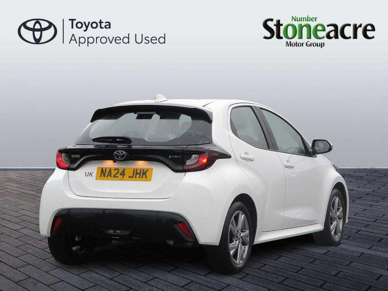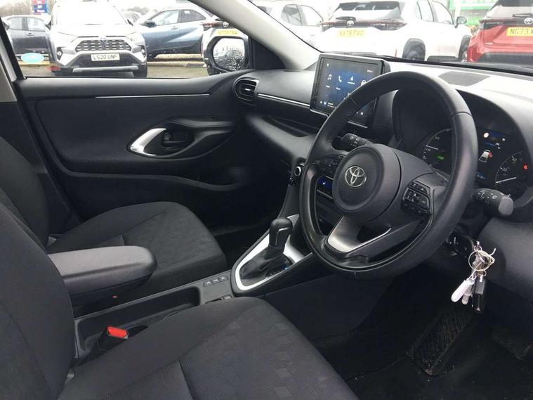4.2" coloured TFT multi information display with analogue speedometer, Adaptive cruise control, Adjustable speed limit with speed warning, Bluetooth connectivity, E-call, Electric power steering, Hybrid energy display, Multi information display switches on steering wheel, Reversing camera, Smartphone integration with Apple CarPlay and Android auto, Smartphone integration with Apple CarPlay/Android Auto, Tailgate, Voice recognition, Vehicle Stability Control (VSC), 4 speakers, 9" Multimedia touch display, Toyota Touch 3 system with DAB radio, USB connection, Acoustic windscreen glass, Auto windscreen wipers, Automatic headlights, Body coloured door mirrors, Bulb indicators, Chequered front grille, Daytime running lights, Electric adjustable heated door mirrors, Follow me home headlights, Front auto power windows with anti jam protection, Front halogen fog lights, Halogen projector headlights, LED High mounted stop lamp, Manual headlight levelling, Rain sensor, Rear auto power windows with anti jam protection, Rear side wing doors, Rear spoiler, Rear wiper, Shark fin antenna, Turning signal integrated indicators in door mirrors, Variable front intermittent wipers, 3 adjustable rear headrests, 3 seat bench in 2nd row, 3 spoke leather steering wheel, 60/40 split folding rear seat, Active headrests, Adjustable boot height, Auto air conditioning, Coat hooks in rear grab handles, Cup holders (2 front & door), Data Communication Module (DCM) connected services, Fabric upholstery, Front armrest, Glovebox, Grey roof lining, Height adjustable driver's seat, Isofix seat fixing, Leather gearshift, Pollen filter, Shopping bag hooks, Single front passenger seat, Tilt/telescopic steering column, 3 point seatbelts on all rear seats, ABS+EBD+Brake assist, Electronic parking brake, Emergency brake light system (EBS), Front passenger airbag on/off switch, Front seatbelt reminder, Hill start assist control (HAC), Rear child proof door locks, Rear seat belt reminder, Supplemental Restraint System (SRS) 8 airbags: Driver & passenger's airbags, dual side curtain airbags, side impact airbags, front centre airbag, Toyota Safety Sense 3 with over the air updates, Tyre pressure warning system, 2x Master key, Alarm/immobiliser, Remote powered central double locking doors, Soft touch instrument panel, Space saver spare wheel,