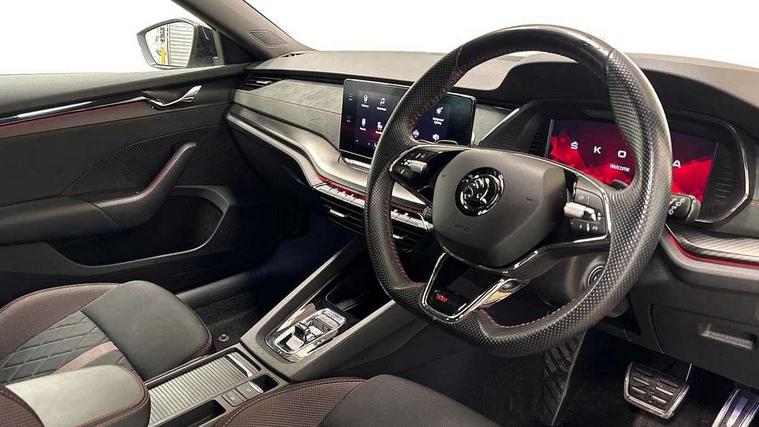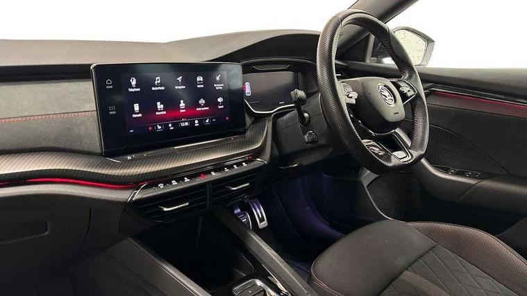 1x USB Type C port in rear view mirror (charging only), 2x USB Type C ports in rear of front centre armrest (charging only), Bluetooth system, Columbus satellite navigation with 10" touchscreen display, eCall emergency system, Front and rear parking sensors with manoeuvre assist, Front assist system, Progressive dynamic steering, Smartlink (includes android auto and mirrorlink), Speed limiter, Turn Assist, Virtual Cockpit - 10.25" digital display, Voice control system, Wireless SmartLink for Apple Car Play, Electronically controlled limited slip differential, Front and rear stabilizers, 2x USB Type C ports (for charging and data transfer), 8 Speakers, DAB Digital radio, Aero front windscreen wipers with intermittent function, Auto dimming rear view mirror, Black roof rails, Body colour door handles, Chrome exhaust tailpipes, Door sills with vRS logo, Electric front and rear windows, Exterior gloss black sports styling including front grille, side strip, window surrounds, door mirror and badging, Full LED Matrix headlights with AFS and cornering front fog lights, Headlight washers, Heated rear windscreen, High level third brake light, Ice scraper in fuel cap, LED daytime running lights, Rain and light sensors, Rear fog light on one side, Rear privacy glass, Rear side wing doors, Rear spoiler, Rear window wiper, 3 seat bench in 2nd row, 4 foldable roof handles, Aluminium pedals, Black headlining, Black microsuede padded dash panel with red contrast stitching, Chrome inner door handles, Front centre armrest, Front head restraints, Heated front seats, Illuminated air conditioned glovebox, Leather trimmed gearshift lever, Luggage compartment lighting with two side lamps, Mechanical rear seat release, Parcel shelf - rolling, Single front passenger seat, Sunglasses storage, Textile floor mat set, Three spoke leather sports multifunction steering wheel with paddles, Ticket holder, Umbrella in door panel, Unsplit rear bench seat and split folding backrest, LED interior light pack - Octavia, 3 point front/outer rear seatbelts+pre-tensioners, Alarm with interior monitoring, tilt sensor and back up horn, Automatic door unlocking in case of crash, Automatic fuel cut off in case of crash, Automatic warning lights in case of emergency braking, Curtain airbags and front side airbags, Driver and front passenger airbags, Drivers knee airbag, Electronic parking brake, Emergency call and proactive services, ESC including ABS, EBV, MSR, ASR, EDS, HBA, DSR, Front and rear disc brakes, Hill hold control, Hill start assist, ISOFIX on front passenger seat and outer rear seats, Manual rear child locks, Passenger airbag deactivate switch, Red brake calipers, Two tone horn, Tyre pressure monitor, Visual and acoustic seat belt reminder, Warning reflectors in front door, Door locks with immobiliser, Keyless entry and start/stop including rear doors, Remote central locking, Carbon optic decorative inserts, Gloss black air vent surrounds, 19" Altair anthracite alloy wheels,