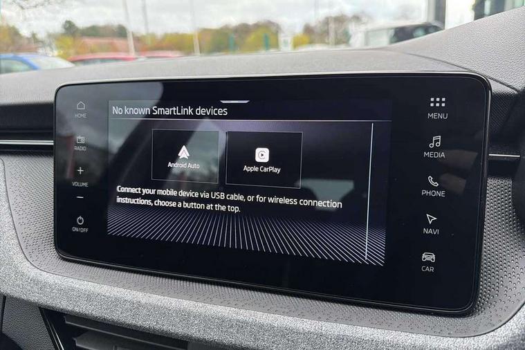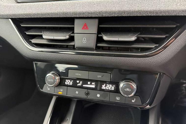Advanced driver attention and drowsiness monitor, Bluetooth, e-Call (emergency call), Front assist system, PAS, Rear parking sensors, Rear view camera, Speed limiter, Tailgate, Traffic sign recognition, Virtual Cockpit - 10.25" digital display, Voice control system, Wireless smartlink, 4 USB C ports, 8 Speakers, 9.2" Skoda navigation display, DAB radio, Auto dimming rear view mirror, Automatic headlamp activation with Coming home and Leaving home feature, Automatic high/low beam, Body colour bumpers, Body colour door mirrors and handles, Chrome moulding around grille, Front and rear electric windows, Full LED headlights, Heated rear window, LED 3rd brake light, LED brake lights, LED daytime running lights, LED front turning lights, LED high beam, LED low beam, LED taillights, Rear LED fog light, Rear side wing doors, Rear wiper, Tinted windows, Unique dark chrome design logo on alloy wheels, 12V socket in luggage compartment, 3 seat bench in 2nd row, Black / Grey armrest stitching, Black hotstamping, Cargo elements, Chrome inner door handles, Door inserts in satin black, Driver and passenger sun visors with vanity mirror, Dual zone climate control, Front and rear roof lights, Front centre armrest, Front head restraints, Glasses storage in roof liner, Height adjustable driver seat, Height adjustable passenger seat, Ice scraper, Illuminated glove compartment, Inner circulation control with pollen filter, ISOFIX for front passenger seat, Isofix preparation for back seats, Leather gearknob and handbrake lever, Loft cloth upholstery, Luggage net under rear parcel shelf, Manual lumbar support for front seats, Net package and top tether hooks in boot space, Pearl grey ceiling, Pocket on the back of both front seats, incl. mobile phone pockets, Single front passenger seat, Skoda lettering on steering wheel, Textile floor mats, Third rear headrest, Ticket holder, Top tether for front passenger seat, Umbrella in driver's door, 3x3 point rear seatbelts, ABS, Child locks, Curtain airbags and front side airbags, Disc brakes, Driver and front passenger airbags, ESP, Hill hold control, Manual leather parking brake, One tone horn, Passenger airbag switch off function, Seatbelt reminder for driver and front passenger, Tyre pressure monitoring system, Anti theft alarm system with interior monitoring, backup horn and towing protection, Anti-theft wheel bolts, Remote central locking with 2 remote folding keys, SAFE function for remote central locking, Decord pad, door inserts Kota uni,