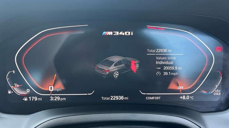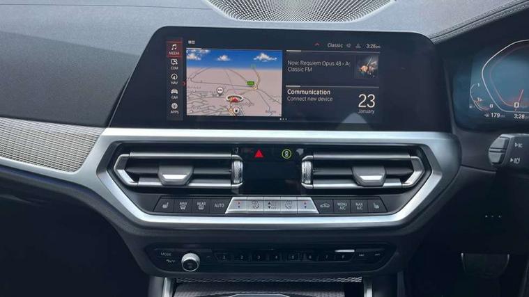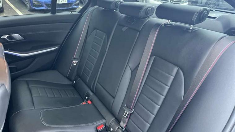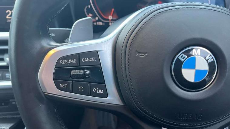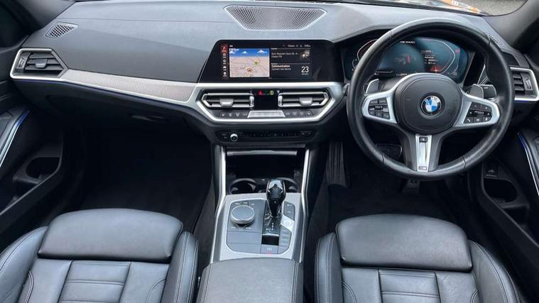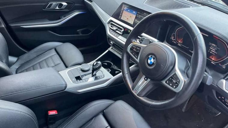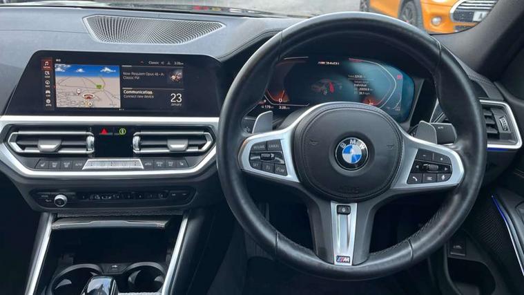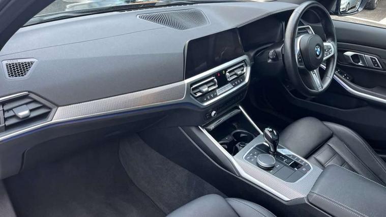 Active guard plus, Attentiveness assist, Bluetooth hands free facility with USB audio interface with audio streaming, BMW iDrive controller on centre console, BMW Live Cockpit Professional Nav with 12.3" instrument display + 10.25" display, Intelligent Voice Assist, BMW OS 7, HDD, 2USB, 4G LTE connect, BMW service history, BMW Teleservices, Brake pad wear indicator in front and rear, Check Control warning system for monitoring of lights and door/luggage compartment open warning, Condition based service, Cruise control with brake function + speed limiter, Electric power steering with Servotronic steering optimised at all speed ranges, Instrument cluster with speedometer with mph readout, tachometer, fuel gauge and oil temperature gauge, Integrated owners handbook, Oil sensor for level and grade, warning by check control system, On board computer - average speed+fuel consumption, service interval, clock/date, odometer/trip meter, outside temperature display and ice warning, Optimum shift indicator, Personal Profile - automatic lock when driving away selectable, Variable sport steering, 48V Mild hybrid technology, Adaptive M suspension, Balanced 50/50 weight distribution, Battery cut-out switch, Drive performance control - ECO PRO, comfort and sport modes, Larger capacity fuel tank, M Sport differential, Petrol Particulate Filter, Stroke dependent dampers, DAB tuner, Electronic service booklet, 2 x square exhaust tailpipes, Acoustic glazing, Active airstream chrome frame kidney grille with 8 high gloss black vertical slats, Automatic headlight beam throw control with load dependent regulating reaction, dynamic compensation of braking dive and acceleration squat, Black roof mouldings, Body colour door handles, Body colour front and rear bumpers, Body colour fuel filler flap, Dynamic brake lights, Electric windows - front and rear, with open/close fingertip control, anti-trap facility and comfort closing, Exterior mirrors - electrically folding with anti-dazzle, Fading support, Front and rear bumper system with replaceable deformation elements, Front black door sill finishers with BMW designation, Green tinted heat protection glazing, High gloss shadow line exterior trim, Interior rear view electrochromatic mirror with automatic anti dazzle function, LED daytime running lights, LED front fog lights, Lightweight engineering, M designation on front side panels, left and right, M Sport spoiler, Matt black exterior B pillar, Model designation on right side of tailgate, Rain sensor with automatic headlight activation, Shark fin antenna, Sun protection glass, Two part LED tailights in L-shape with components in smoked glass, brake light, LED turn indicator and rear fog light, Visible VIN plate, Welcome lights in interior and door handle area, Windscreen wipers with integrated washing jets, xDrive designation on left tailgate, 12V power socket in front storage compartment, 2 front cupholder in centre console with clamping elements and matt black inlay, 3 rear seats with non folding headrests with 3 point seat belts, 3 zone automatic air conditioning, 4 pieces lashing eyelets in luggage compartment, 40:20:40 split folding rear seat with loading system, Ambient lighting with welcome carpet light, Anthracite headlining, Armrest integrated in front and rear door trim + front centre console armrest, Backrest width adjustment, Centred top Luggage compartment lights, Four grab handles integrated in roof lining, Front and rear door exit lighting (left / right), Front and rear door pockets, Front and rear reading lights, Front and rear velour floor mats, Front head restraints, Heated front seats, Height adjustable mechanically and infinitely variable steering column, Illuminated armrest storage compartment, Illuminated glove compartment with separate small compartment, Interior lighting - front centre over interior mirror with soft light, rear centre and front and rear footwell lighting, M sport leather steering wheel, Make-up mirror lights, Rear centre armrest with 2 cupholders, Rear centre console with storage compartment and ventilation grille, Sunvisors with vanity mirrors and ticket pocket, Toolkit located in luggage compartment, Connected pack professional - 3 Series Saloon/Touring, M sport exterior styling pack - 3 Series Saloon/Touring, 2 tone horn, BMW emergency call, Brake energy regeneration, Braking pre-tensioning, Child proof locking system in rear door, Child seat ISOFIX attachment rear outer seats, Coasting in idle in ECO PRO mode, Crash sensor activating of airbags, Unlocking doors, hazard warning lights, interior light, safety battery terminal, Driver and front passenger side airbags, integrated in the door side seat backrest bolsters for all seat variants, Driver/Front Passenger airbags, Dry braking, Dynamic brake control, Dynamic stability control + (DSC+) - Anti-lock Braking System (ABS) with brake assist and cornering brake control + Automatic Stability Control (ASC), Dynamic Traction Control - DTC, Electric parking brake including automatic hold function and automatic release of the parking brake when driving off, Front passenger manual airbag deactivation, Head airbags for all 4 outer seats, Hill start assist, M sport seatbelt, Seat belt security check for driver and front passenger, Side impact protection, Three 3 point seat belts on all seats including front belt stopper, pyrotechnic belt tensioners and belt force limiters, Tyre pressure monitoring with three level warning strategy, Ventilated front and rear disc brakes, Warning triangle and first aid kit, Alarm system (Thatcham 1) with remote control and electronic engine immobiliser, Central locking switch for all doors, fuel filler cap and luggage compartment, Remote control with integrated key one button open/close vehicle and windows, sole opening of the luggage compartment lid and panic mode, Start/stop button with Comfort Go keyless engine start and auto Start/stop deactivation button, Vehicle key with M specific designation, 