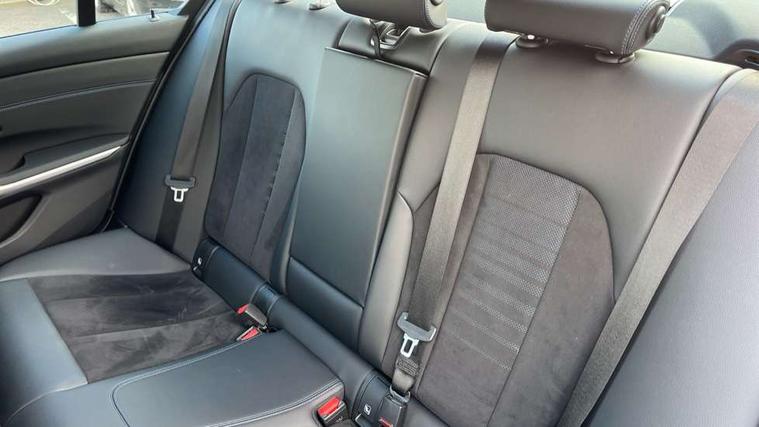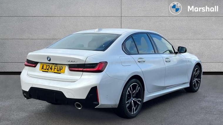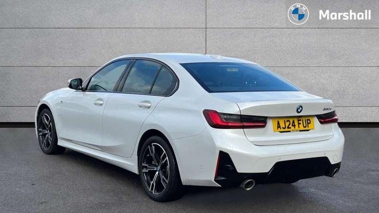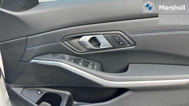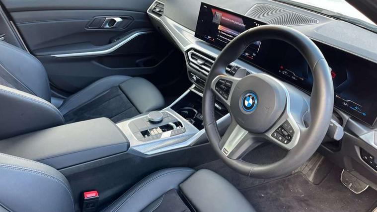Active guard plus, Attentiveness assist, Automatic Start/stop button, BMW Iconic sounds electric, BMW iDrive, BMW Teleservices, Condition based service, ConnectedDrive Services, Driving experience switch, Live cockpit plus with Navigation + 12.3" instrument display + 14.9" display, Intelligent voice assist, 2 USB, 4G LTE connect, Oil sensor for level and grade, PAS, Preparation for driver assistance, Shifting point display, Double joint spring strut front axle, Electronic differential lock control (EDLC), Fast charging cable - Mode 3, Fuel tank breather system, Sport automatic transmission with steering-wheel mounted gearshift paddles and launch control, Standard suspension, DAB tuner, 3rd brake light, Acoustic glazing, Automatic headlight beam throw control with load dependent regulating reaction, dynamic compensation of braking dive and acceleration squat, BMW emblem, engine compartment lid and tailgate, Body colour roof fin, Door sill strips, Electric windows - front and rear, with open/close fingertip control, anti-trap facility and comfort closing, Follow me home headlight function, Front and rear bumper system with replaceable deformation elements, Front apron plastic in body colour, Fuel filler flap - right rear in body colour, Heated washer jets, High gloss shadow line exterior trim, Illuminated bow type door handles in body colour drivers side with door lock, Interior rear view electrochromatic mirror with automatic anti dazzle function, LED rear lights, Licence plate panel integrated into front bumper and tailgate, Matt black B-pillar finsher, Matt black window recess cover, Model designation on right side of tailgate, One piece front bumper cover including towing eye cover in body colour, Rain sensor with automatic headlight activation, Rear boot, Rear side wing doors, Reversing lights, Side frame decorative moulding black matt, Visible exhaust tailpipe finisher, Welcome lights in interior and door handle area, 12V power socket in front storage compartment, 2 front cupholder in centre console with clamping elements and matt black inlay, 3 seat bench in 2nd row, 3 zone automatic air conditioning, 40:20:40 split folding rear seat with loading system, Ambient inside door handle light, Ambient light design projected onto the left and right entering and exiting area, Ambient lighting front and rear with 9 selectable colours, Ambient storage compartment lighting in the centre console, Anthracite headlining, Armrest integrated in front and rear door trim + front centre console armrest, Battery in luggage compartment, BMW ID, Contour lighting in instrument panel and door trim panel, Cruise control operation in steering wheel, Driver backrest width adjustment, Folding rear centre armrest with 2 cupholders, Front and rear ambient footwell lighting, Front and rear door exit lighting (left / right), Front and rear headrests, Front and rear reading lights, Front and rear velour floor mats, Front sport seats, Heated front seats, Height adjustable mechanically and infinitely variable steering column, Illuminated armrest storage compartment, Illuminated glove compartment, Illuminated luggage compartment, Lashing eyelets in luggage compartment, M Sport multifunction leather steering wheel, Make-up mirror lights, Single front passenger seat, Standard seat for driver and passenger with manual adjustment, Sunvisors with vanity mirrors and ticket pocket, Toolkit located in luggage compartment, Connected pack professional - 3 Series Saloon/Touring, Interior and exterior mirror pack - 3 Series Touring/Saloon, M Aerodynamics package - 3 Series Saloon/Touring, M sport exterior styling pack - 3 Series Saloon/Touring, Storage compartment pack - 3 Series Saloon/Touring, 3x3 point rear seatbelts, BMW emergency call, Child locks on rear doors, Crash sensor activating of airbags, Unlocking doors, hazard warning lights, interior light, safety battery terminal, Driver and front passenger with seat occupancy detection for driver's and passenger side, Driver and passenger side airbags, body protection at side and airbags deploy from seat backrests, Dynamic brake control, Dynamic stability control + (DSC+) - Anti-lock Braking System (ABS) with brake assist and cornering brake control + Automatic Stability Control (ASC), Dynamic Traction Control - DTC, Electric parking brake including automatic hold function and automatic release of the parking brake when driving off, Head airbags in 1st and 2nd row, head protection at side, curtain airbags open from headliner above 1st and 2nd row, Plastic fuel tank, Side impact protection, Tyre pressure monitoring with three level warning strategy, Ventilated front and rear disc brakes, Warning triangle and first aid kit, Alarm system, Centre lock switch, Closing system with central locking, Electronic vehicle immobiliser,