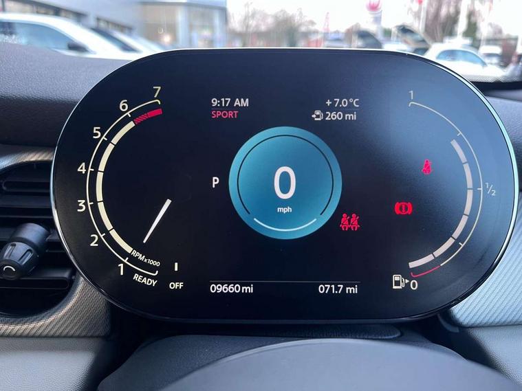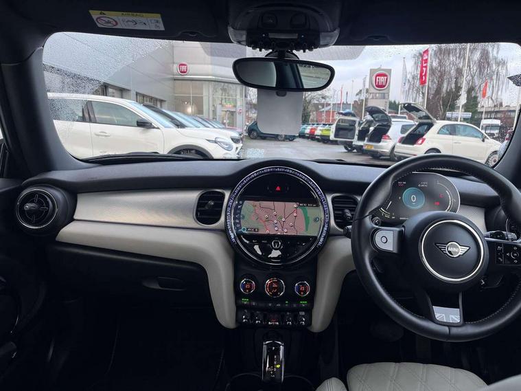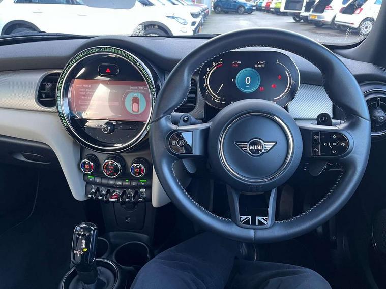 Automatic start/stop function with brake energy recuperation, Compatible mobile phone bluetooth with audio streaming, Cruise control with brake assist, Electro-mechanical speed dependant steering assistance, Flexible car sharing preparation, Instrument cluster, MINI Driving Modes - centre toggle switch to control driving setting (sport, mid and green), Mini E-call, MINI TeleServices, On board computer, Rear park distance control, Service interval indicator, Double Vanos system, Fully variable valve control, High precision injection, Performance Control, Steptronic sport transmission with double clutch and steering wheel paddles, 4 speakers in front door trims and underneath front seats, 8.8" touchscreen with LED ring, FM tuner and DAB digital radio, Automatic headlight activation switch, Bonnet scoop, Chrome line exterior - radiator grille bars, tailgate handle, lower front grille grating and rear central fog-light, Dynamic brake lights, Electric front windows, Heated rear window, Heated windscreen washer jets, LED headlight with closed ring and daytime driving lights, Metal door sill strips with Cooper S, Model logo Cooper S on right of tailgate, Rain sensor window wipers, Rear fog lights, Rear LED lights with union jack design, Rear window wiper, Side scuttle panel with integrated indicator, Sun/heat protection glass, White indicator lenses, 12V Accessory socket in centre console, 4 lashing eyes in luggage compartment, 60/40 split folding rear seat, Carbon black colour line - Knee roll and door armrest, Chrome interior highlights, Chrome line interior - air vents, gear lever base, door handles and speakers in doors, Cupholders, Front and rear head restraints, Front and rear isofix with front passenger airbag deactivation, Glove compartment, Height and length steering column adjustment, Interior lighting with 12 different colours across the dashboard, underneath door bezel with illuminated laser-engraved design on central display, Leatherette gearshift lever and handbrake gaiters, LED reading lights, vanity mirror lights, front foot well light and spotlight on front seats, Manual air conditioning, Mechanical seat adjustment - forward/back & backrest for front seats and driver seat height adjust, MINI yours badge on exterior pillar, Multifunction steering wheel, Passenger seat height adjuster, Satellite grey headlining including grab handles and clothes hooks, Storage compartments in doors, Storage pocket on back of front seats, Sunvisors with vanity mirrors, Velour floor mats, Walknappa leather steering wheel with grey seam and MINI Yours badge on Piano Black lower steering wheel spoke, 3 point seatbelts on all four seats, 6 Airbags - front, side, head and seat belt tensioners, Anti-lock braking system (ABS), DSC - Dynamic Stability Control, Front and rear disc brakes, Two tone horn, Tyre pressure monitoring system, Alarm system with tilt sensor, monitoring doors, bonnet interior and tailgate, Electronic vehicle immobiliser, Start/stop toggle with keyless go, Tool kit,