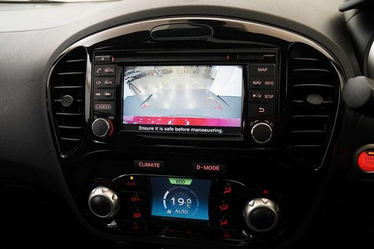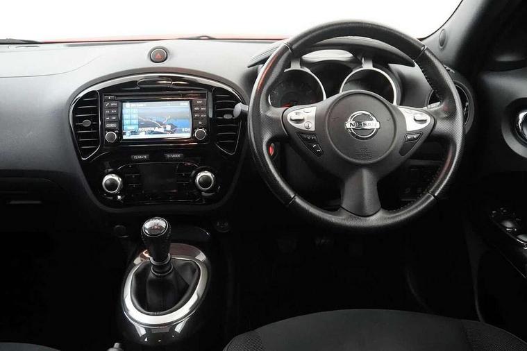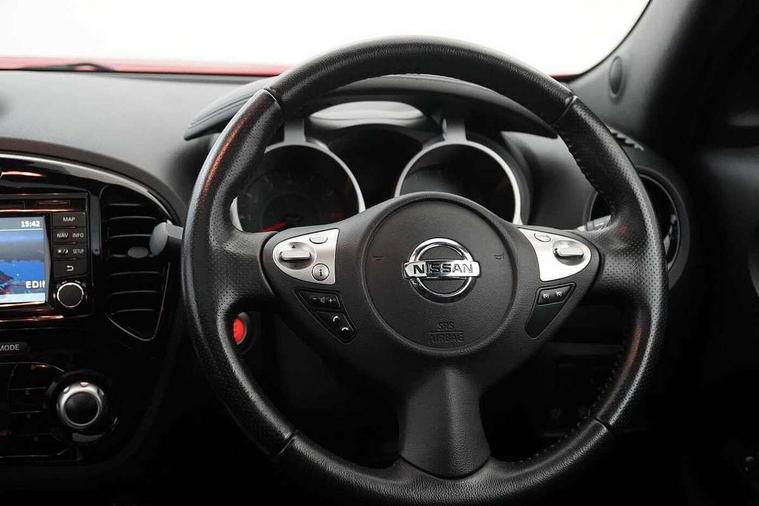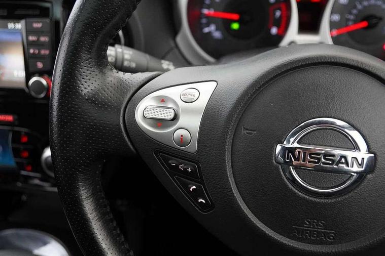 Bluetooth system, Colour rear view camera, Cruise control + speed limiter, Electric speed sensitive power steering, Nissan connect sat nav system, Push button starter, Service interval indicator, Trip computer, 6 speakers, Aux input, DAB Digital radio, Steering wheel mounted audio controls, Stereo radio/CD player and MP3 facility, USB port, 2 speed wipers+variable intermittent wipe, Automatic headlights, Body colour bumpers, Body colour door handles, Electric door mirrors, Electric folding door mirrors, Electric front/rear windows, Front fog lights, Heated door mirrors, LED daytime running lights, Privacy glass, Rain sensor, Rear wiper, 12V socket, 60/40 split folding rear seat, Artificial leather/suede upholstery, Climate control, Front armrest, Front cupholders x 2, Front door pockets with bottle holders, Front head restraints, Front seat belt pre-tensioners with load limiters, Gear shift indicator, Glovebox, Height adjustable driver's seat, Internal chrome door handles, Isofix child seat preparation, Leather steering wheel and gear knob, Luggage area under floor storage box, Map reading lamp, Passenger seat back pocket, Pollen filter, Rear headrests, Rear tonneau cover integrated into tailgate, Sports seats, Steering wheel rake adjustment, ABS + EBD + EBA, Child locks on rear doors, Driver and passenger airbags, Driver and passenger side airbags, ESP + traction control, Front and rear curtain airbags, Height adjustable front seatbelts, Passenger airbag deactivate switch, Three 3 point rear seatbelts, Tyre pressure monitoring system, VDC Dynamic Vehicle Control, Warning triangle and first aid kit, Alarm, Immobiliser, Intelligent Key, Remote central locking, 17" Sport alloy wheels, Tyre repair kit,