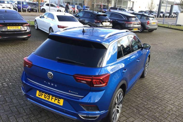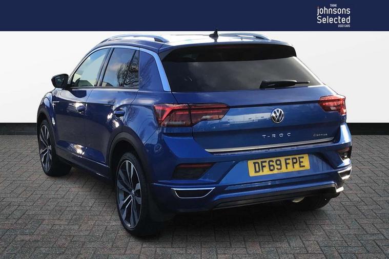'Lights On' Reminder warning buzzer, 2 USB connection charging sockets, Active Info Display, 10.3" high resolution TFT dash display screen with customised information, Adaptive cruise control with front assist, radar sensor controlled distance monitoring, city emergency braking, App-Connect, Automatic start/stop system, Bluetooth telephone and audio connection for compatible devices, Car information display, Car-Net Security and Service, Discover navigation, 8" touch screen navigation/infotainment system with Car-Net, European map, CD/radio, 2D/3D map and speed limiter, Driver alert system with audible and visual fatigue detection system, Driver tips and journey analysis, Driving profile selection - Eco, normal, sport or individual modes with Individual mode allows for steering, drive and air conditioning settings, Lane assist, Multifunction computer with visual gear change recommendation for fuel consumption, Service interval indicator, Think blue trainer driver tips and journey analysis, Voice activation, Warning sound and light for doors and tailgate open, Warning sound and light for front seatbelts unfastened, 4MOTION active control, Battery regeneration during braking, Four wheel drive, DAB Digital radio, Dynamic navigation based on TMC+, Multi device interface (MDI) with USB connection, Music playback - MP3, WMA and AAC files, Premium USB cable in choice of either Apple or Android smartphone compatibility, SD card slot, Simultaneous pairing of 2 compatible mobile devices, SMS functionality - read, compose and send SMS messages using touch-screen display, Three route options - Fast, Short, Eco, Title and cover art display, Auto dimming interior rear view mirror, Black grained lower door protectors, Body colour door handles, Body colour rear roof spoiler, Chrome effect left and right trapezoid exhaust tailpipe fascia surround, Chrome trim on upper and lower radiator grille, Dusk sensor, Electrically foldable, adjustable and heated door mirrors with puddle lights and reverse activated kerb-view adjustment on passenger's door mirror, Front and rear electric windows, Front fog lights with static cornering function, Front windscreen wiper with intermittent wipe and 4 position delay, Fully galvanised body, Heated rear window, High level 3rd brake light, LED darkened rear light clusters, LED rear number plate lights, Manual coming/automatic leaving home lighting function, Rain sensor, Rear tinted glass from B-pillar backwards approx 65% tinted, Rear wash/wipe with intermittent wipe setting, 12V socket in centre console storage area, 2 Front and rear reading lights incorporating LED technology, 3 rear head restraints, 4 load lashing points in luggage compartment, Aluminium pedals, Ambient lighting in front footwell and light strips below trim in front doors, Black roof lining and sun visors, Branded points of interest, Carbon flag cloth upholstery, Climate control - 2 zone electronic air conditioning with automatic air recirculation and allergy filter, Drawer under drivers seat, Front and rear carpet mats with contrast stitching, Front centre armrest with storage compartment, longitudinal and height adjustable and two rear air vents, Front cupholders x 2, Front footwell illumination, Front seat back storage pockets, Front sports seats with R-Line logo on seat backrest, Glovebox, Height adjustable front seats, Height/reach adjust steering wheel, Illuminated vanity mirrors, Instrument lighting, white adjustable panel illumination, Interior light delay, Isofix easy fit child seat preparation for 2 outer rear seats, Load through provision with single cup holder when folded down, Luggage compartment cover, removable, Luggage compartment lighting, R Line badge, Split folding rear seat backrests with centre armrest, Storage compartment in left and right luggage area, Storage compartment in rear doors, Storage compartments in driver and front passenger doors, Three spoke multifunction leather trimmed steering wheel including gear knob and paddle shift with aluminium inserts contrast stitch and R Line logo, Unique R Line door sill protectors, R line styling pack - T-Roc, Winter pack - T-Roc, 3 rear three point seatbelts, ABS, Curtain airbags, Driver and front passenger safety-optimised head restraints, Drivers and front passengers airbags with passengers deactivation switch, Electronic parking brake with auto hold, Electronic stability control (ESC) includes ASR, EDL, EDTC and trailer stabilisation function, Front seat side impact airbags, Predictive pedestrian protection, Rigid safety cell with front and rear crumple zones, Three point height adjust front seatbelts + pretensioners, Tyre pressure loss indicator, Ventilated front and rear disc brakes, Volkswagen roadside assistance, Alarm with interior protection and deactivation via infotainment system, Electronic engine immobiliser, Remote central locking with 2 remote folding keys, Shadow steel decorative inserts in dash and door panel, 19" Suzuka alloy wheels with low rolling resistance tyres and anti wheel bolts, Space and weight saver spare wheel,