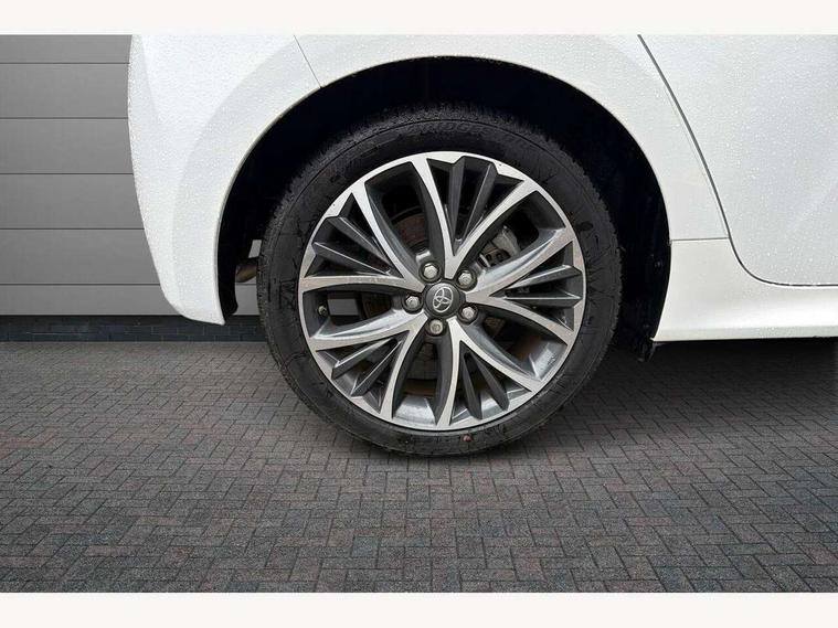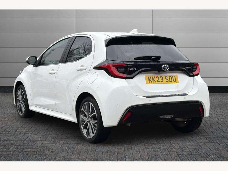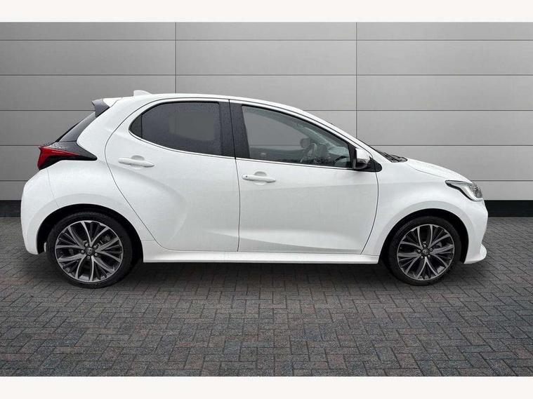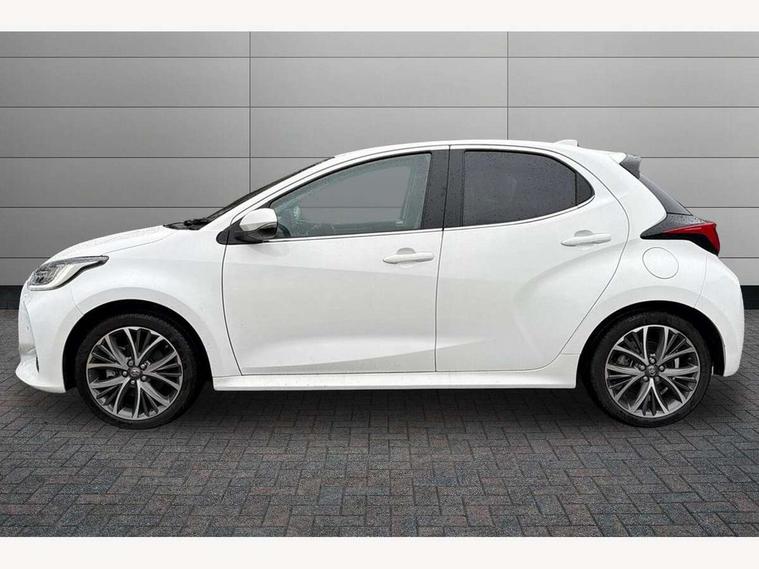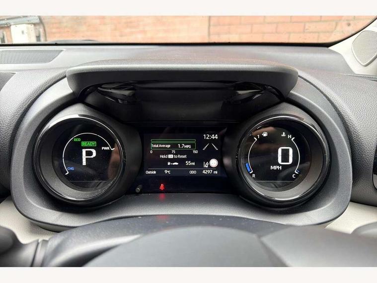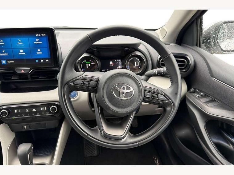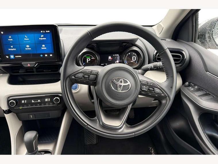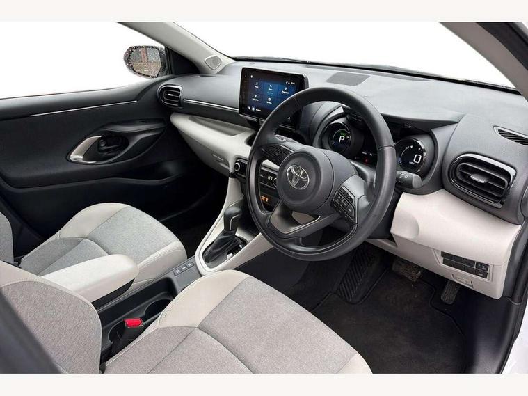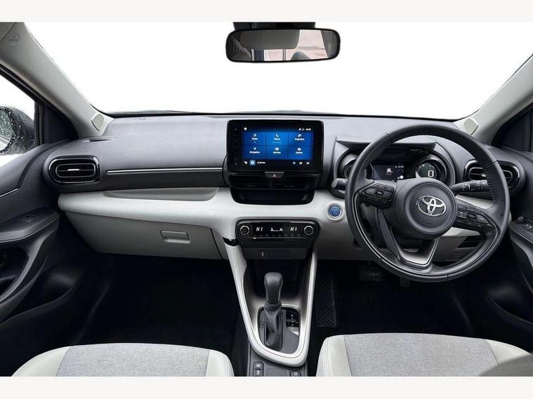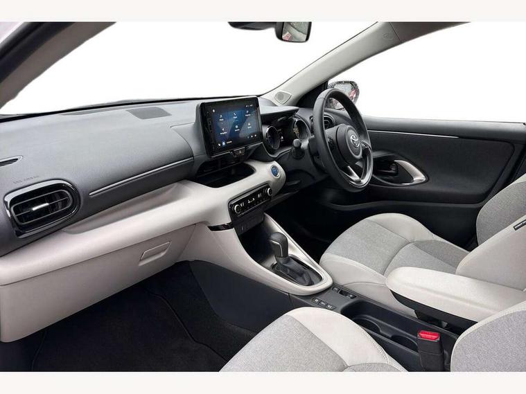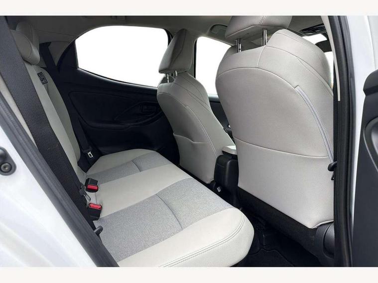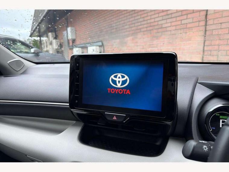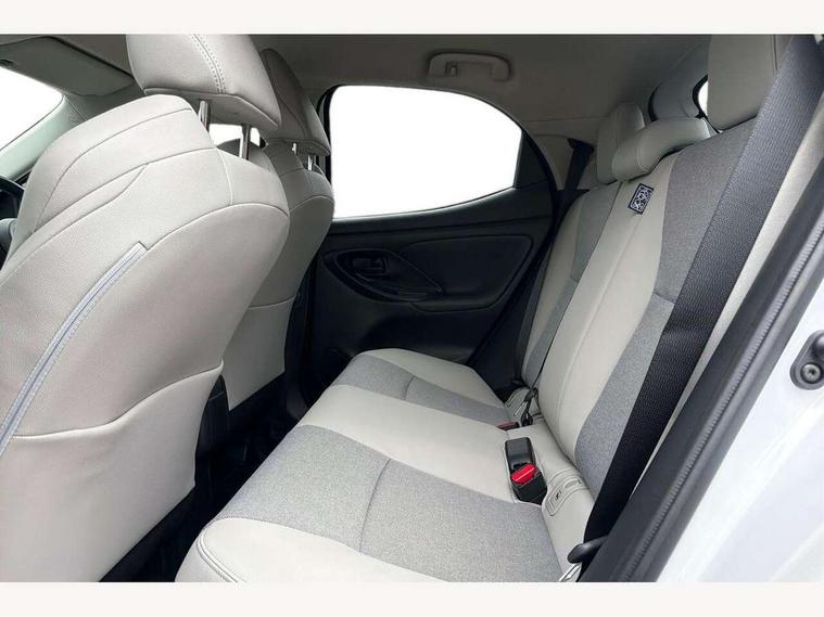 Adaptive cruise control, Adjustable speed limit with speed warning, Blind spot monitoring, Bluetooth connectivity, Colour binocular inspired displays with digital speedometer, E-call, Electric power steering, Hybrid energy display, Multi information display switches on steering wheel, Reversing camera, Smartphone integration with Apple CarPlay and Android auto, Tailgate, Touch 2 navigation system, Voice recognition, Vehicle Stability Control (VSC), 6 speakers, 9" HD multimedia display touch screen with Toyota smart connect, USB connection, Acoustic windscreen glass, Auto windscreen wipers, Automatic headlights, Automatically retractable door mirrors, Body coloured door mirrors, Electric adjustable heated door mirrors, Follow me home headlights, Front auto power windows with anti jam protection, Full LED rear lights, LED daytime running lights, LED front fog lights, LED front light guide, LED Headlights, LED High mounted stop lamp, LED Indicators, LED rear light guide, Manual headlight levelling, Painted chequered front grille, Rain sensor, Rear auto power windows with anti jam protection, Rear privacy glass, Rear side wing doors, Rear spoiler, Rear wiper, Satin lower front grille, Shark fin antenna, Turning signal integrated indicators in door mirrors, Variable front intermittent wipers, 3 adjustable rear headrests, 3 seat bench in 2nd row, 3 spoke leather steering wheel, 60/40 split folding rear seat, Active headrests, Adjustable boot height, Coat hooks in rear grab handles, Cup holders (2 front & door), Data Communication Module (DCM) connected services, Dual zone automatic air conditioning, Fabric seat with partial synthetic leather upholstery, Front armrest, Front sport seats, Glovebox, Grey roof lining, Height adjustable driver's seat, Height adjustable passenger seat, Isofix seat fixing, Leather gearshift, Map pockets on the backs of the front seats, Pollen filter, Shopping bag hooks, Single front passenger seat, Tilt/telescopic steering column, Parking pack - Yaris, 3 point seatbelts on all rear seats, ABS+EBD+Brake assist, Electronic parking brake, Emergency brake light system (EBS), Front passenger airbag on/off switch, Front seatbelt reminder, Hill start assist control (HAC), Rear child proof door locks, Rear seat belt reminder, Supplemental Restraint System (SRS) 8 airbags: Driver & passenger's airbags, dual side curtain airbags, side impact airbags, front centre airbag, Toyota Safety Sense 2, Precollison + Night time Pedestrian & Cyclist Detection, Lane Trace Assist, Auto High Beam, Intelligent ACC & Road Sign Assist, Tyre pressure warning system, 2x Master key, Alarm/immobiliser, Keyless smart entry with push button start, Remote AC via MyT, Remote locking via MyT, Remote powered central double locking doors, Satin chrome interior styling, Soft touch instrument panel, Space saver spare wheel,