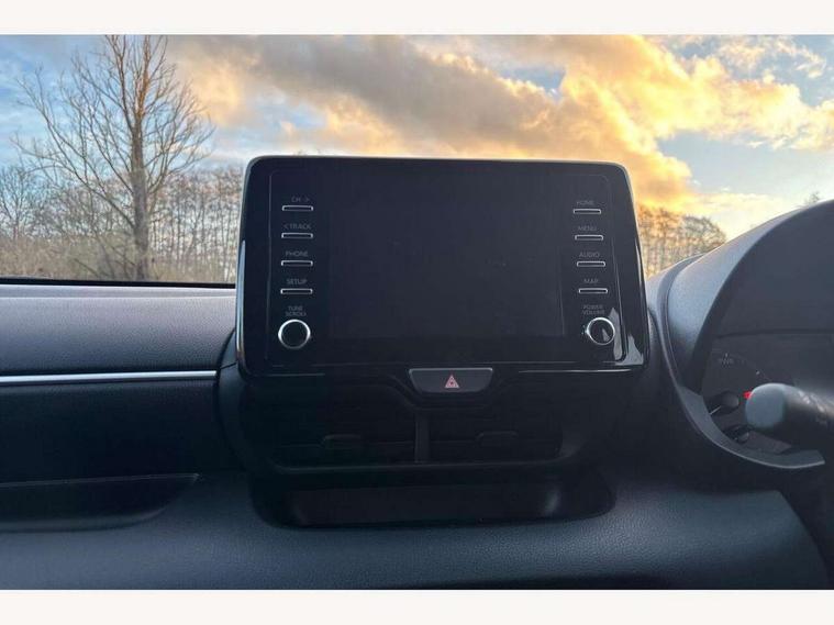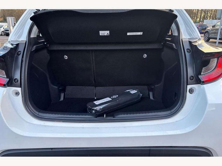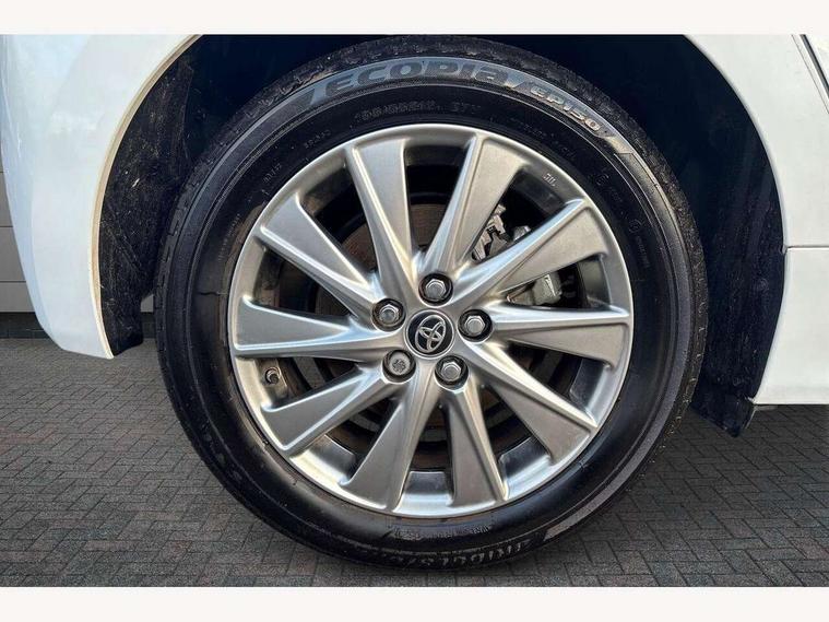 4.2" coloured TFT multi information display with analogue speedometer, Adaptive cruise control, Adjustable speed limit with speed warning, Bluetooth connectivity, E-call, Electric power steering, Hybrid energy display, Multi information display switches on steering wheel, Reversing camera, Smartphone integration with Apple CarPlay and Android auto, Tailgate, Voice recognition, Vehicle Stability Control (VSC), 4 speakers, 7" Multimedia display touch screen, Toyota Touch 2 with DAB, USB connection, Acoustic windscreen glass, Auto windscreen wipers, Automatic headlights, Body coloured door mirrors, Bulb indicators, Chequered front grille, Daytime running lights, Electric adjustable heated door mirrors, Follow me home headlights, Front auto power windows with anti jam protection, Halogen projector headlights, LED High mounted stop lamp, Manual headlight levelling, Rain sensor, Rear side wing doors, Rear spoiler, Rear wiper, Shark fin antenna, Turning signal integrated indicators in door mirrors, Variable front intermittent wipers, 3 adjustable rear headrests, 3 seat bench in 2nd row, 3 spoke leather steering wheel, 60/40 split folding rear seat, Active headrests, Adjustable boot height, Auto air conditioning, Coat hooks in rear grab handles, Cup holders (2 front & door), Data Communication Module (DCM) connected services, Fabric upholstery, Front armrest, Glovebox, Grey roof lining, Height adjustable driver's seat, Isofix seat fixing, Leather gearshift, Pollen filter, Shopping bag hooks, Single front passenger seat, Tilt/telescopic steering column, 3 point seatbelts on all rear seats, ABS+EBD+Brake assist, Electronic parking brake, Emergency brake light system (EBS), Front passenger airbag on/off switch, Front seatbelt reminder, Hill start assist control (HAC), Rear child proof door locks, Rear seat belt reminder, Supplemental Restraint System (SRS) 8 airbags: Driver & passenger's airbags, dual side curtain airbags, side impact airbags, front centre airbag, Toyota Safety Sense 2, Precollison + Night time Pedestrian & Cyclist Detection, Lane Trace Assist, Auto High Beam, Intelligent ACC & Road Sign Assist, Tyre pressure warning system, 2x Master key, Alarm/immobiliser, Remote powered central double locking doors, Soft touch instrument panel, Space saver spare wheel,