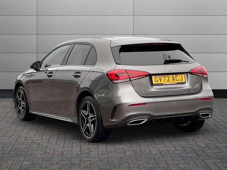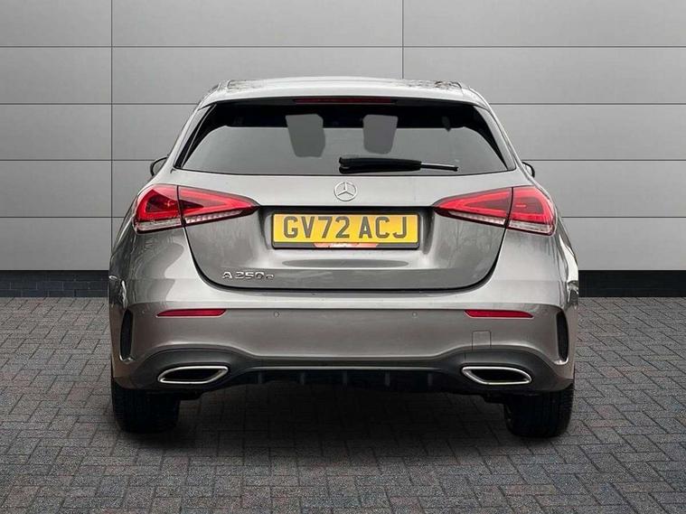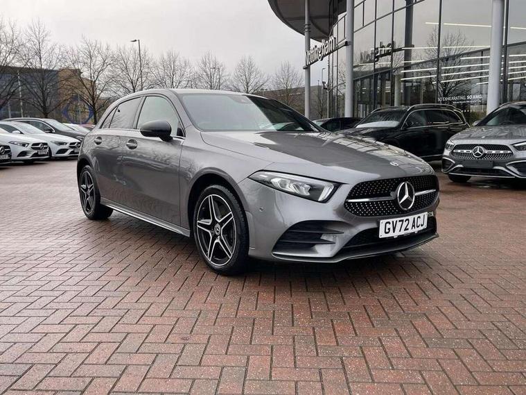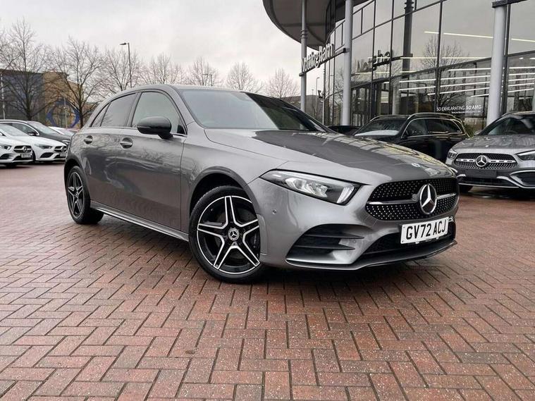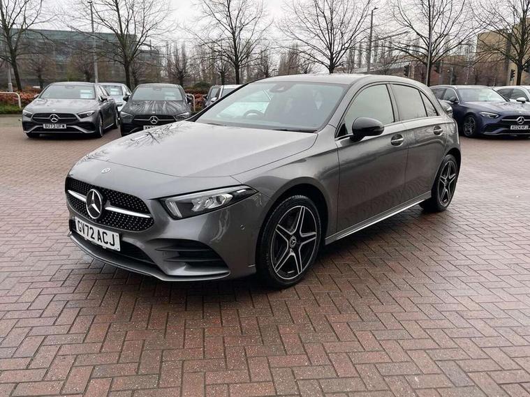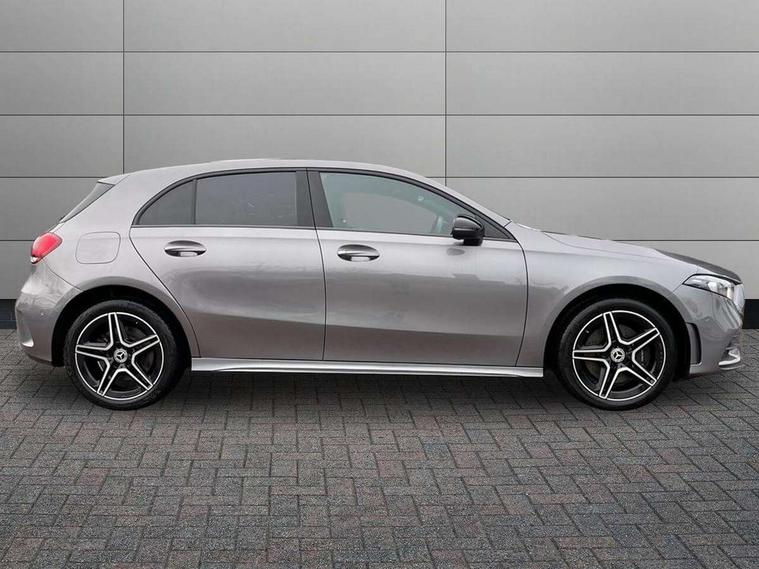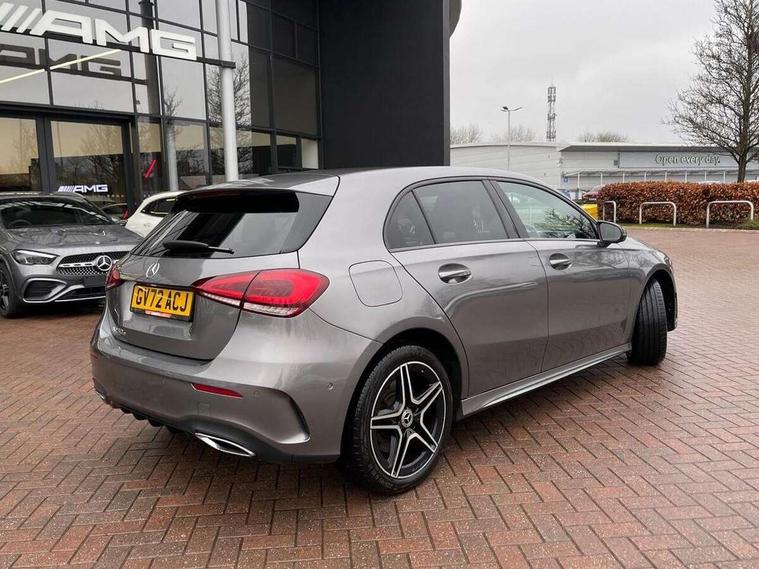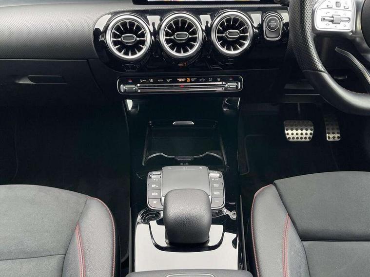 10.25" Digital instrument cluster display screen, 10.25" media display, 180 degree rear view camera with parking guidelines, Acoustic ambient protection, Active parking assist with visual and audible warning of detected obstacles, Attention assist, Brake pad wear indicator warning light, Car wash mode, Cruise control + speed limiter, Direct steering, Dual bluetooth interfaces, DYNAMIC SELECT with a choice of driving modes (ECO, Comfort, Sport and Individual), ECO start/stop function, Fluid level warning indicator for fuel, oil, coolant and washer fluid, Hard-disk navigation, Hey Mercedes Voice activation, Lamp failure indicator, Lane keeping system, Mercedes me connect including emergency call system, accident recovery, breakdown and maintenance management, Mercedes me remote services, Outside temperature gauge, Owners manual in English, Pre-installation for private car sharing, Preinstallation for Mercedes Benz link, Remote and charging services plus, Service indicator (ASSYST), Smartphone integration with Apple CarPlay and Android auto, Speed limit assist, Speed sensitive power steering, Trip computer, Ultrasonic sensors positioned in the front and rear bumpers, 7.4 kW monophase on board charger, Comfort suspension, Mode 2 charging cable and 5m upto 2.3kW, Mode 3 charging cable 22 kW, Rear axle multi-link, 2 USB ports (type C) in rear stowage compartment and one in front of center console, 6 speakers, DAB Digital radio, MBUX multimedia system with DAB digital radio and touchpad including satellite navigation, Mercedes-Benz sound system - 100W, 4 Electric Front and Rear windows, Adaptive brake lights, AMG bodystyling - Front apron with splitter in chrome, rear apron with chrome trim and chrome visible trim elements in tailpipe, Automatic headlights, Black weather strip, Body colour bumpers, Body colour door handles with chrome inserts, Body colour side skirt, Electric adjustable and heated door mirrors with integrated LED side indicators, Exclusive diamond radiator grille, Exhaust system - Twin visible tailpipes in polished stainless steel, Headlamp assist automatic headlamp activation, Heated glass rear windscreen + timer control, LED High level third brake light, LED high performance headlamps with integrated LED daytime running lights, LED tail lamp, Privacy glass, Radio aerial, Rain sensing windscreen wipers with two sensitivity settings, Rear fog lights, Rear side wing doors, Rear wiper, 3 seat bench in 2nd row, 3 Spoke flat bottom leather multi function steering wheel with perforated leather in grip area, 40:20:40 split folding rear seats, Artico man-made leather/Microfibre Dinamica upholstery with red contrast stitching, Auto Mercedes-Benz child seat recognition sensor, Black air vents with surround in silver chrome, Black roof lining, Brushed stainless steel sports pedals with rubber studs, Charging socket, Controller on centre console with chrome surround, Floor mats with AMG lettering, Front centre armrest with storage compartment, Front seat backs luggage nets, Galvanished gear shift paddles on steering wheel, Heated front seats, Height/reach adjustable steering column, Illuminated Mercedes Benz lettering front door sills with changeable cover, Interior lighting - 64 colour Ambient lighting, Interior mirror with reading lamps in black and frameless, Manual height adjustable front seats, Pre-entry climate control, Rear head restraints, Seat occupancy sensor for front passenger seat, Single front passenger seat, Sports seats with integrated headrests, Stowage compartment in centre console with retractable cover, Sunvisors with illuminated vanity mirrors, Touchpad on center console, Twin front cupholders, Two zone thermotronic luxury automatic climate control, Light and sight pack - A Class, Mirror package - A Class, Night pack - A Class Saloon/Hatchback, Seat comfort pack - A Class, 3 rear 3 point seatbelts, ABS with Brake Assist, Active bonnet, Active brake assist includes forward collision warning system with autonomous braking, Adaptive brake assist with hold function and hill start assist, Black seatbelts, Childproof locks manually operated for rear doors and electrically operated for rear power windows, Crash responsive emergency lighting, Driver and passenger head and side airbags, Drivers knee airbag, Dual stage driver/passenger airbags, Electronic parking brake, ESP curve dynamic assist, ESP with ASR, Front and rear seatbelt reminder, Front brake callipers with Mercedes Benz lettering, ISOFIX and top tether child seat fixing points in two outer rear seats, Perforated front brake discs, Radar based regeneration, Tyre pressure monitoring system, Warning triangle and first aid kit, Window airbags, Alarm system/interior protection/immobiliser, Keyless Go, Remote central locking and crash sensor with emergency opening function, Urban guard vehicle protection system with immobiliser and interior protection, Matrix look light longitudinal grain aluminium trim element, 18" AMG 5 twin spoke light alloy wheels aerodynamically optimised painted in black with highsheen finish, Summer tyres, Tirefit sealant kit,
