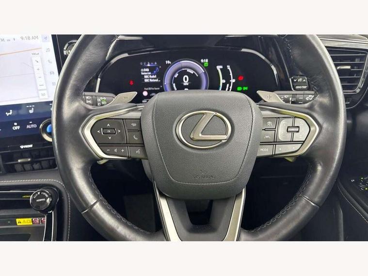 4 driving modes EV/Eco/Normal/Sport, 7" display in instrument binnacle, Blind spot monitoring with rear cross traffic alert, Bluetooth telephone connectivity, eCall emergency system, Electric speed sensitive power steering, Intelligent parking sensors - 4 front and 4 rear, Lane change flasher function, Lexus link connect - Cloud based navigation, cloud based voice assistant, always online and 9.8" VGA touchscreen, Push button starter, Reversing camera with back guidelines, Service interval indicator, Wireless Apple CarPlay and wired Android Auto, Wireless Smartphone charger, 6.6 kW onboard charger, All Wheel Drive (AWD), Hybrid automatic transmission, Vehicle Dynamics Integrated Management (VDIM), Vehicle Stability Control (VSC), 10 speakers, 4 USB ports - 2 front, one USB C, 2 rear USB C, DAB Digital radio, Auto dimming interior rear view mirror, Automatic headlights, Bi LED headlights, Double hidden exhaust pipes, Front and rear one touch power windows, with anti-jam protection, Heated, auto-folding, auto-dimming outside mirrors with reverse tilt function and turn indicators, Illuminated door handles with puddle light, LED brake lights and rear lights with emergency brake signal, LED daytime running lights, LED front fog lights, LED Indicators, Power back door with kick sensor, Privacy glass, rear doors and tailgate, Rain sensor windscreen wipers, Rear side wing doors, Rear wiper, Roof rails, 12V accessory port centre console and luggage compartment, 2 cupholders in front centre console, 2 way electrical lumbar adjustment for driver, 2 x fixed shopping bag hooks in boot, 2 x sun visors with vanity mirror and lamp, 3 seat bench in 2nd row, 4 x tie down hooks in the boot, 6 way manually adjustable front seats, 60/40 split folding rear seat, Adjustable rear seat backrest, Card holder installed in driver and passengers sun visors, Centre armrest with storage box, Dual climate control air conditioning system, Front and rear head restraints, Front and rear textile carpet mats, Front passenger seat, Heated front seats, Heated steering wheel, Leather gear lever, LED interior illumination, Power adjustable leather steering wheel with paddle shifts, Rear centre armrest with 2 cupholders, Tahara leather upholstery, Whiplash Injury Lessening (WIL) feature (active headrest) for seats, 2 x Isofix child rear seat restraints, 3 point ELR front seatbelts with pretensioners, 3x3 point rear seat belts, ABS, Adjustable seat belt anchor points, Driver and front passenger 2 stage airbag, Driver/front passenger side airbags, Drivers knee airbag, E-Latch with safe exit assist, EBD + Brake Assist, ECB (Electronically Controlled Brake System), Electronic parking brake, Front and rear curtain shield airbags, Front center airbag, Front passenger seat cushion airbag, Hill assist control, Lexus safety system - dynamic radar cruise control, pre collision system day and night, lane tracing assist, road sign, automatic high beam, OTA, Manual rear child locks, Passenger airbag cut-off device, Traction control, Tyre pressure warning, 2 x remote key fobs, Anti-theft system with alarm, intrusion sensor, glass breakage sensor, tilt sensor and engine immobiliser, Locking wheel nuts, Smart keyless entry, Speed sensitive auto door locking, Two motion door lock with double lock, VIN Window etching, 3D prism black Inlay, Tyre repair kit,