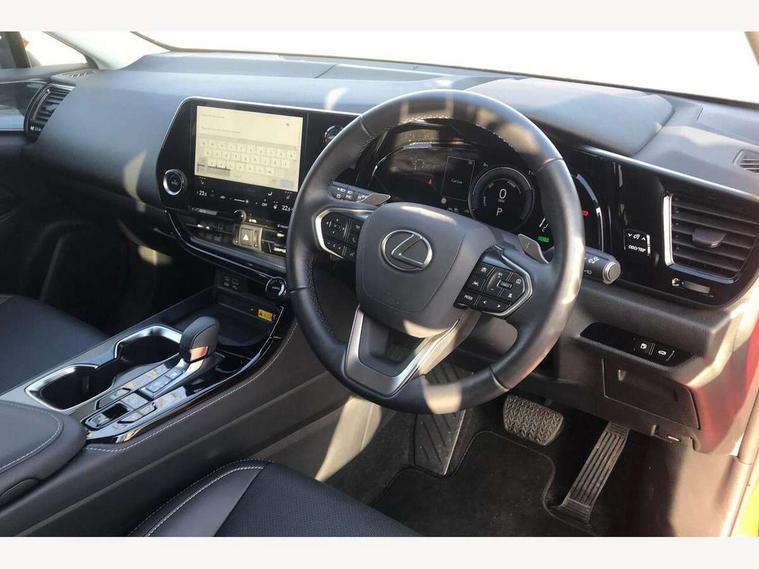 4 driving modes EV/Eco/Normal/Sport, 7" display in instrument binnacle, Bluetooth telephone connectivity, eCall emergency system, Electric speed sensitive power steering, Intelligent parking sensors - 4 front and 4 rear, Lane change flasher function, Lexus link connect - Cloud based navigation, cloud based voice assistant, always online and 9.8" VGA touchscreen, Push button starter, Reversing camera with back guidelines, Service interval indicator, Tailgate, Wireless Apple CarPlay and wired Android Auto, All Wheel Drive (AWD), Hybrid automatic transmission, Vehicle Dynamics Integrated Management (VDIM), Vehicle Stability Control (VSC), 10 speakers, 4 USB ports - 2 front, one USB C, 2 rear USB C, DAB Digital radio, Auto dimming interior rear view mirror, Automatic headlights, Bi LED headlights, Double hidden exhaust pipes, Front and rear one touch power windows, with anti-jam protection, Heated, auto-folding, auto-dimming outside mirrors with reverse tilt function and turn indicators, LED brake lights and rear lights with emergency brake signal, LED daytime running lights, LED Indicators, Light green UV acoustic rear doors & rear glass, Power back door system, Rain sensor windscreen wipers, Rear side wing doors, Rear wiper, Roof rails, 12V accessory port centre console and luggage compartment, 2 cupholders in front centre console, 2 x fixed shopping bag hooks in boot, 2 x sun visors with vanity mirror and lamp, 3 seat bench in 2nd row, 4 x tie down hooks in the boot, 6 tie down hooks in boot, 6 way manually adjustable front seats, 60/40 split folding rear seat, Adjustable rear seat backrest, Card holder installed in driver and passengers sun visors, Centre armrest with storage box, Dual climate control air conditioning system, Front and rear head restraints, Front and rear textile carpet mats, Front passenger seat, Heated front seats, Leather gear lever, LED interior illumination, Power adjustable leather steering wheel with paddle shifts, Rear centre armrest with 2 cupholders, Tahara leather upholstery, Whiplash Injury Lessening (WIL) feature (active headrest) for seats, 2 x Isofix child rear seat restraints, 3 point ELR front seatbelts with pretensioners, 3x3 point rear seat belts, ABS, Adjustable seat belt anchor points, Driver and front passenger 2 stage airbag, Driver/front passenger side airbags, Drivers knee airbag, E-Latch electric door release, EBD + Brake Assist, ECB (Electronically Controlled Brake System), Electronic parking brake, Front and rear curtain shield airbags, Front center airbag, Front passenger seat cushion airbag, Hill assist control, Lexus safety system - dynamic radar cruise control, pre collision system day and night, lane tracing assist, road sign, automatic high beam, OTA, Manual rear child locks, Passenger airbag cut-off device, Traction control, Tyre pressure warning, Anti-theft system with alarm, intrusion sensor, glass breakage sensor, tilt sensor and engine immobiliser, Locking wheel nuts, Speed sensitive auto door locking, Ultra Wide Band (UWB) Anti-theft system, VIN Window etching, Black microdot inlay, Tyre repair kit,