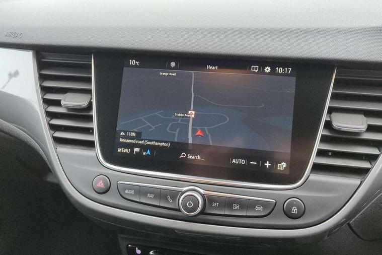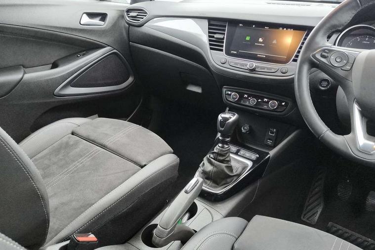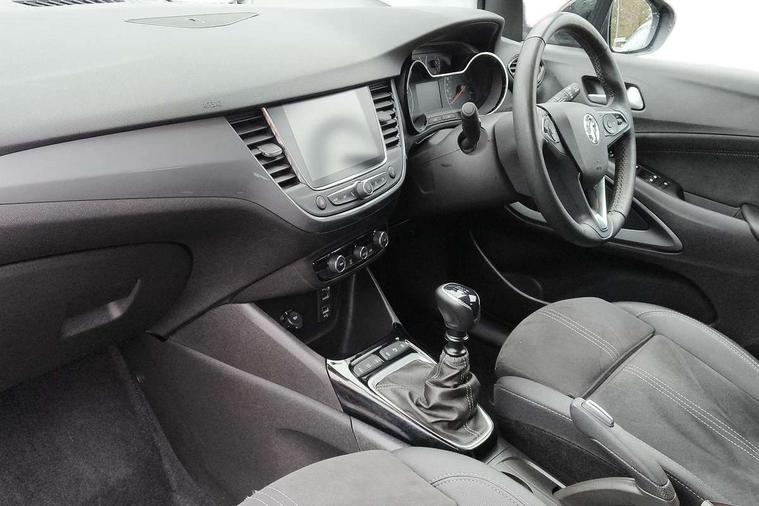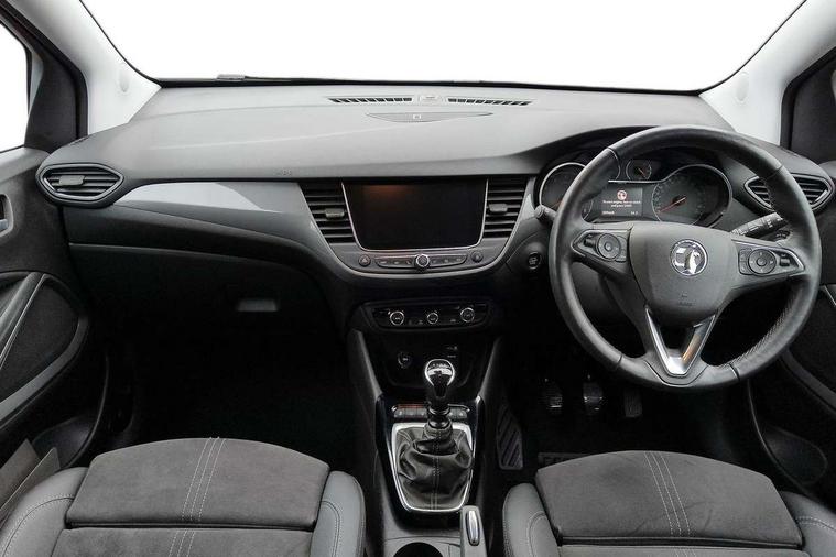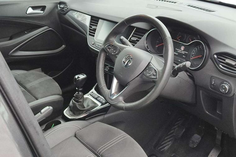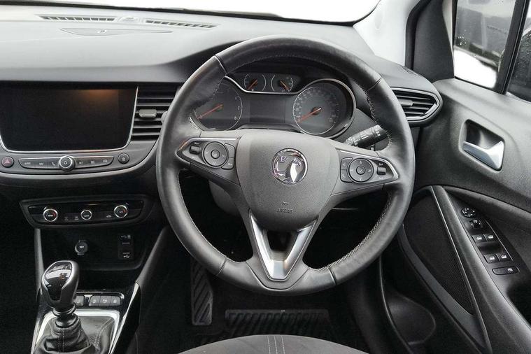 3.5" colour instrument display, Advanced Park Assist, Audible lights on warning, Cruise control + speed limiter, Digital clock with automatic RDS time adjustment, Driver drowsiness alert system, E-call, Forward collision warning, Front camera system, Instrumentation - Speedometer, rev counter, low fuel gauge warning light + water temperature gauge warning light, shift up/down indicate light, Lane departure warning with lane keep assist, Multi function trip computer, Multimedia sat nav pro with 8" colour touchscreen, AM/FM, Bluetooth streaming, Bluetooth mobile phone portal, apple CarPlay/Android Auto + 6 speakers, Outside temperature display with ice warning, Panoramic rear view camera, Refridgerant low indicator, Service interval indicator, Side blind spot alert, Smartphone projection, Speed sensitive power steering, Speed sign recognition, Start/stop system, Vauxhall connect, Vehicle microphone, Front wheel drive, 2 x USB connections, DAB Digital radio, Steering wheel mounted audio/phone/cruise controls, 2 speed wipers/wash wipe/intermittent wipe, Automatic anti dazzle rear view mirror, Automatic headlamp levelling system, Automatic high beam control with cornering light, Automatic lighting control, Black door mirror caps, Black griffin logo, vizor frame, rear lettering and skid plates, Body colour door handles, Body colour front and rear bumpers, Chrome effect upper window moulding, Collapsible windscreen wipers, Dark tinted rear side windows + tailgate window, Electrically adjustable, heated and power folding door mirrors, Electrically operated front and rear windows with safety auto reverse and one touch up/down facility, Flexible roof mounted aerial, Hazard warning lights, Headlamps for left side traffic, Heated rear window, Integrated tailgate spoiler, Intermittent rear wash/wipe, LED 3rd brake light, LED daytime running lights, LED front fog lights, LED Headlights, LED side repeat indicators, LED tail lights, Rain sensitive windscreen wipers, Rear fog lights, Rear side wing doors, Reversing light, Side window demist vents, Silver roof rails, Solar heat absorbing windscreen and windows, Upper and lower bumper design, Welcome lighting, Windscreen demist vents, 12v power outlet - front, 12V power outlets on rear seat, 3 seat bench in 2nd row, 3 spoke leather covered steering wheel, Air recirculation facility, Alcantara suede/vinyl upholstery, Ambient lighting, Anti submarining ramps in front seats, Cabin particulate filter - removes dust, airborne particles and pollen, Centre console storage box with sliding lid, Centre console with two cup holders and open storage box, Chrome effect digital instrument cluster surround, Driver's vanity mirror with flip up cover, Dual zone electronic climate control, Ergonomic active driver’s and front passenger’s seat with AGR approved 8 way adjustable, seat cushion extension, 4 way electrical lumbar adjustment, Fade up/fade down on interior lighting, Four adjustable facia vents, Front and rear central courtesy light, Front centre armrest for drivers seat, Front door pockets with 1.5 litre bottle holder, Front map reading lights, Fully carpeted luggage area, Glovebox with lid, Height adjustable front/rear head restraints, Illuminated load area, Isofix system on outer rear seats, Jet black fabric side bolsters, Luggage compartment cover, Multi-speed fan with Illuminated control, Passenger assist handles, Passenger's illuminated vanity mirror with flip up cover, Reach + rake adjustable steering column, Rear dome lamp, Rear door pockets with 0.5 litre bottle holder, Rear floor ventilation ducts, Satin chrome effect bezel on steering wheel, Single front passenger seat, Storage pockets on front seat backs, Versatility pack - Crossland, Winter pack - Crossland, 3x3 point rear seatbelts, ABS, Automatic emergency braking with pedestrian detection, Child locks on rear doors, CSC - Cornering stability control, Deactivate switch for side impact airbags, Deformation zones front and rear, Driver and front passenger airbags, Dual seatbelt pretensioners on front seats, EBD - Electronic brakeforce distribution, Energy absorbing steering column, Engine drag torque control, ESP + traction control, Front side impact airbag, Full size curtain airbags, Hill start assist, Hydraulic Brake Assist (HBA), Hydraulic brake boost, Inertia reel lap and diagonal seatbelts for all seats, Passenger airbag deactivate switch, Rear seat belt pretensioners, Reinforced passenger safety cell, Seatbelt load limiter, Side impact protection beams, Smart seatbelt reminder for front and rear seats, Tyre pressure monitoring system, 2 remote folding keys, Electronically protected audio equipment, Engine immobiliser, Keyless entry and start, Locking wheel bolts, Remote control central locking, Remote control security alarm system, Visible vehicle identification number, Black facia with dark grey trim inserts, Cluster black with chrome rings, Silver trim inserts on front doors, 17" Five twin spoke diamond cut bi colour alloy wheels,
